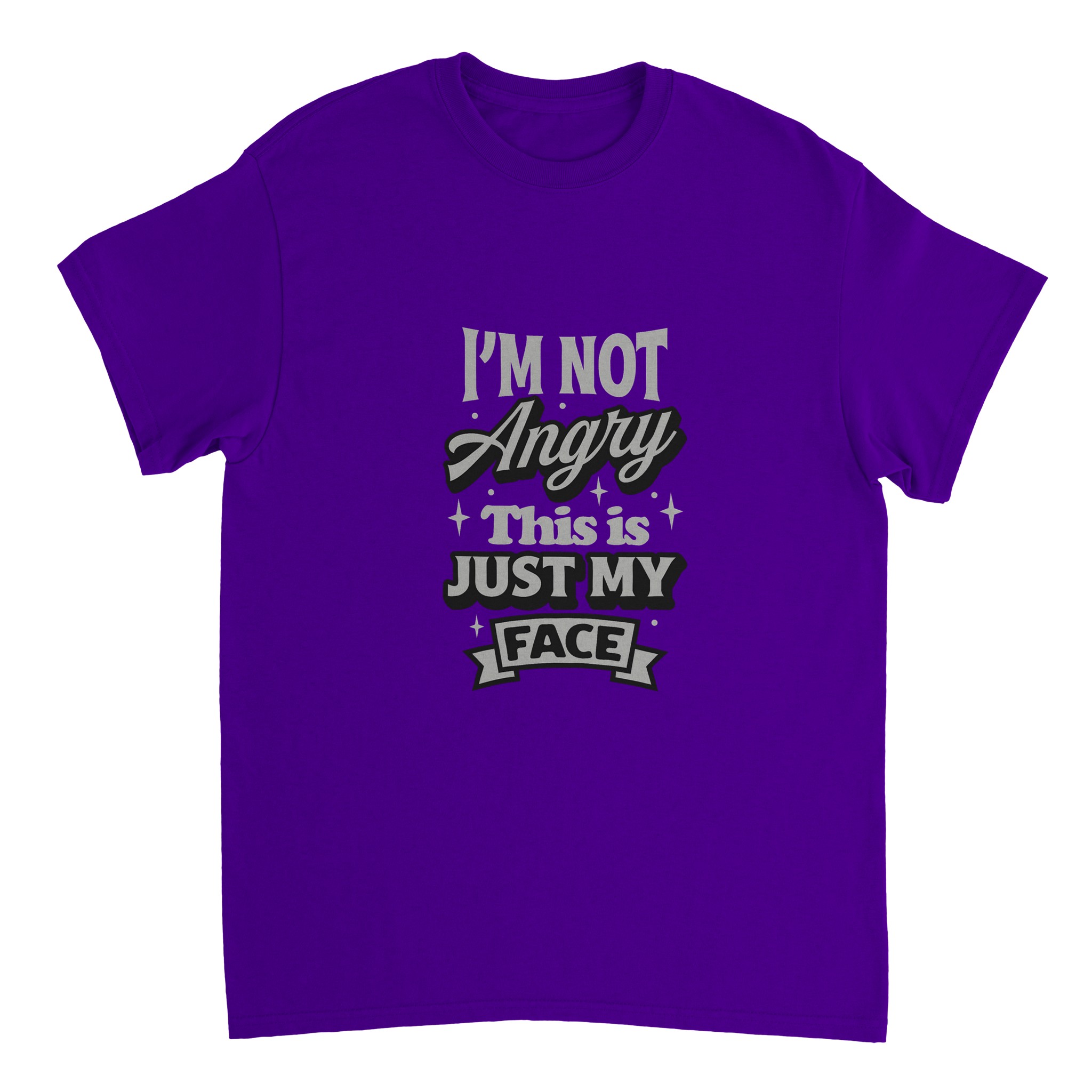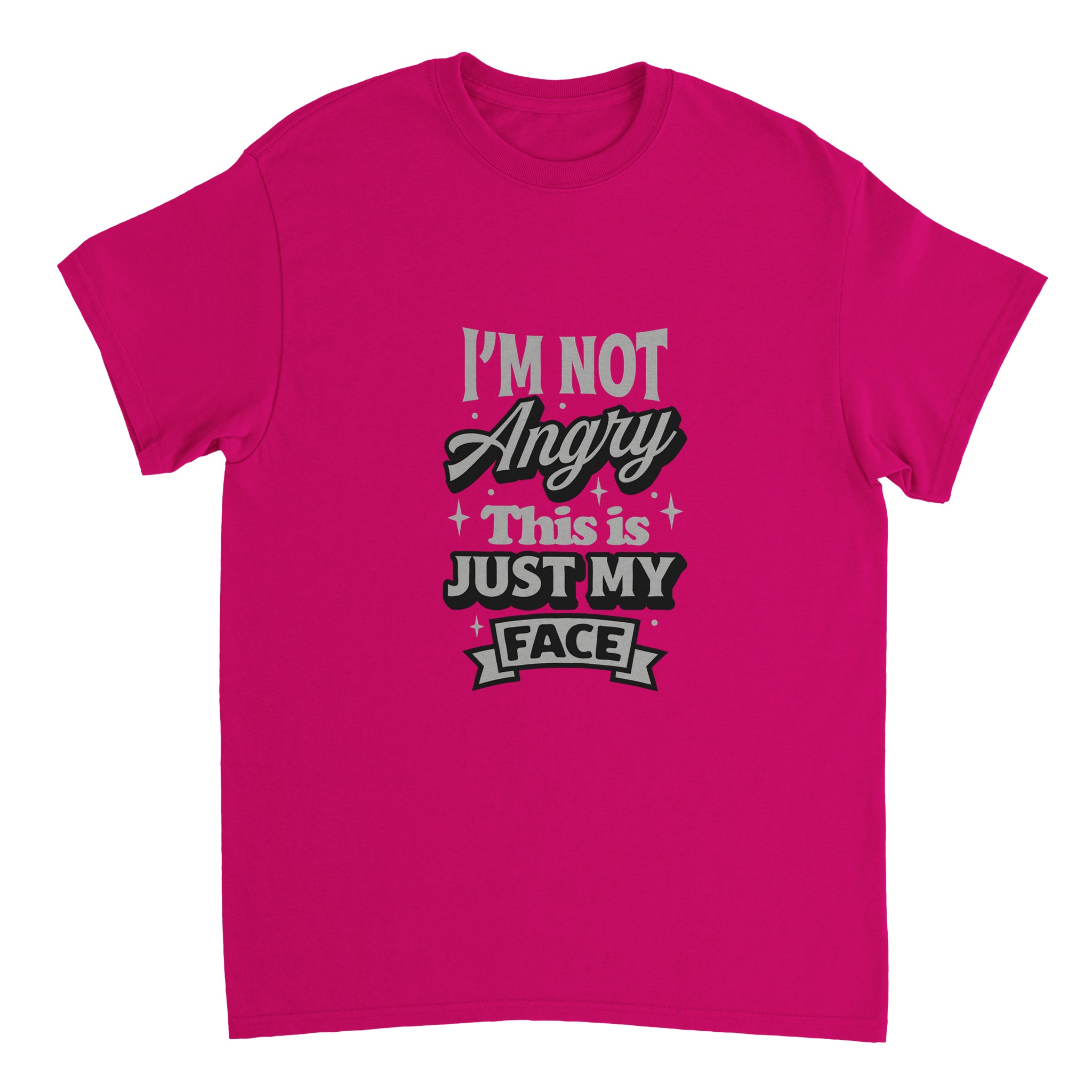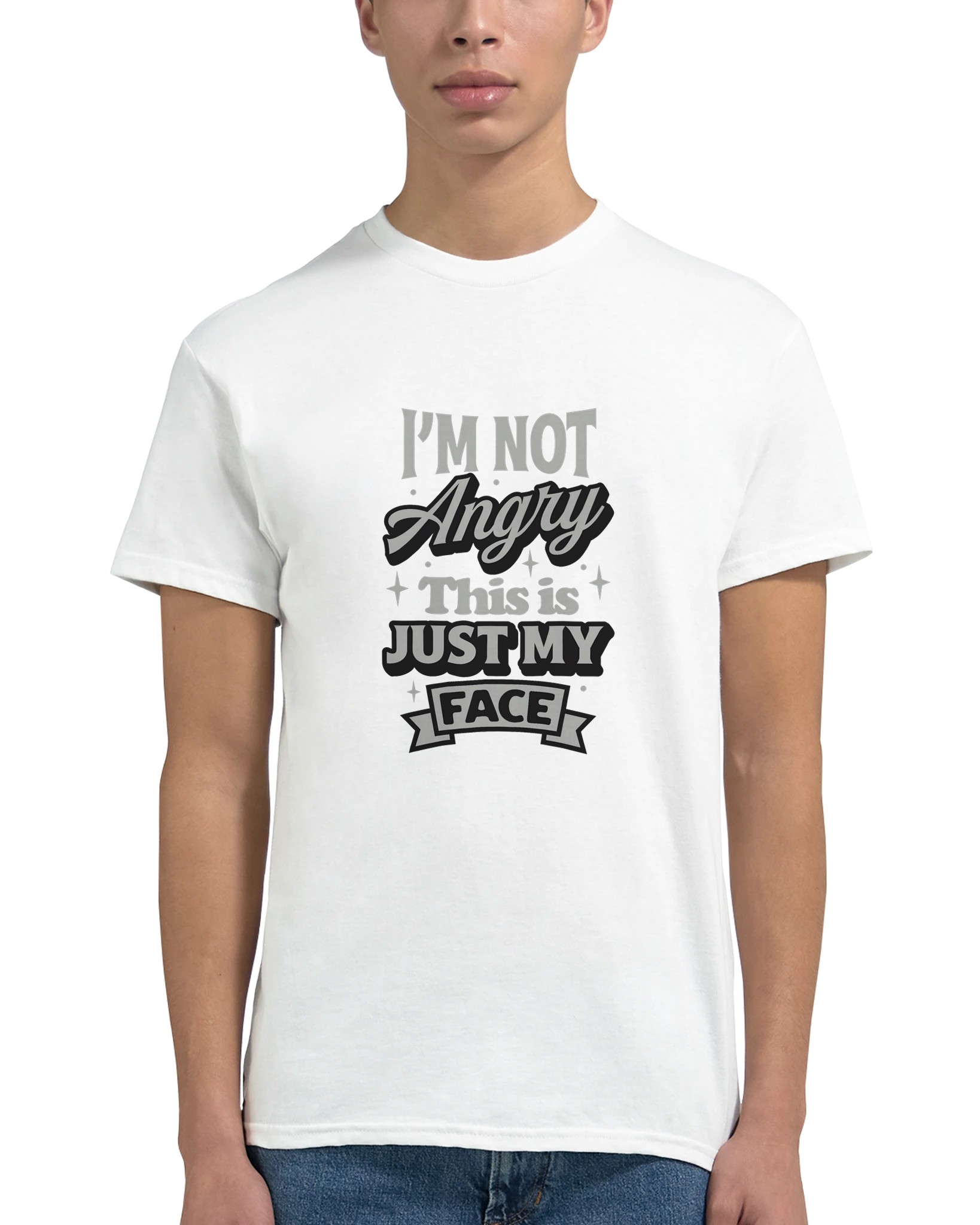 “I’m Not Angry” Bomulls-T-shirt – Uttryck Dig med Stil, Slitstark Design för Vardagsbruk & Personliga Tryck