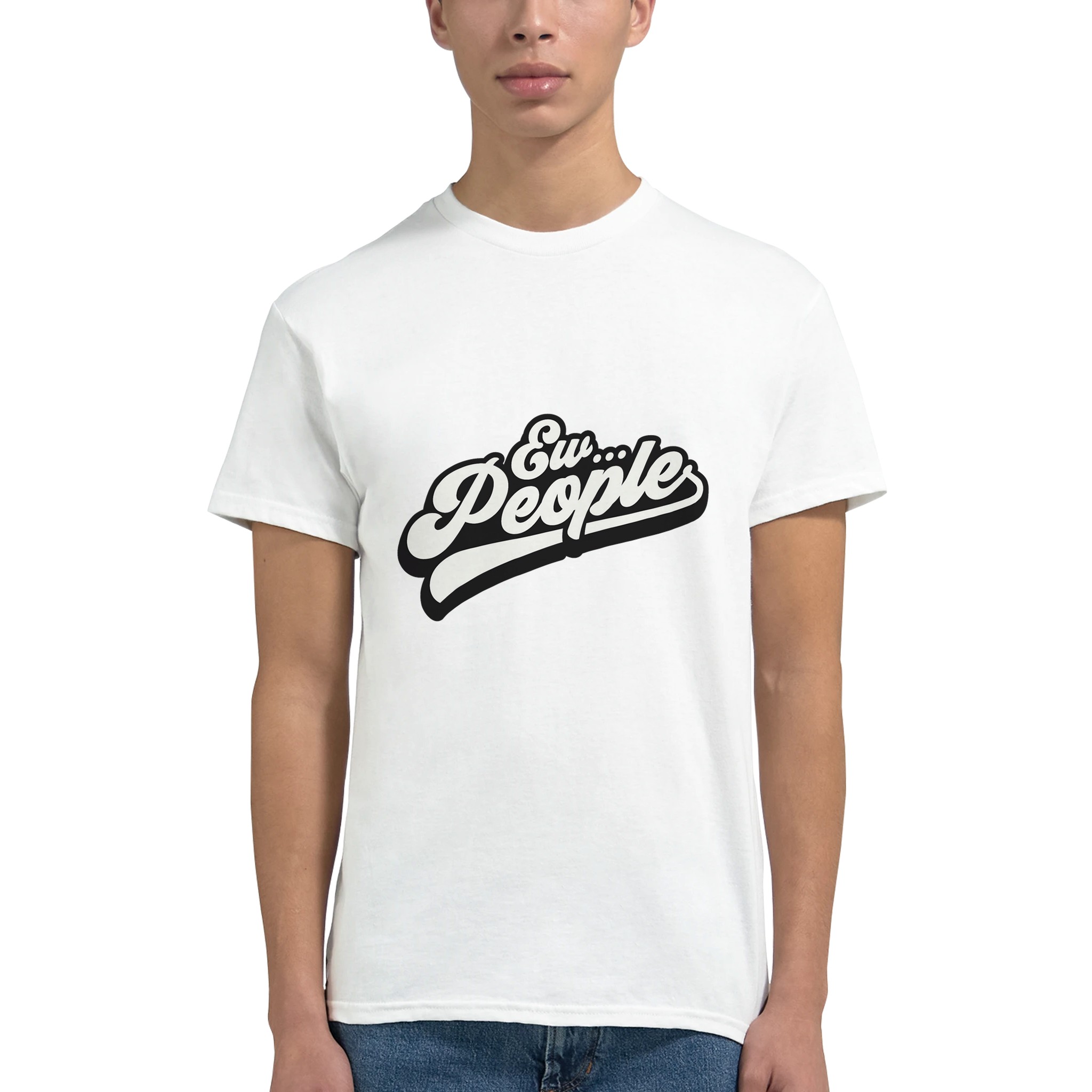 “Ew… People” Retro Script T-shirt – Skön Passform, Hållbar Kvalitet i Flera Färger