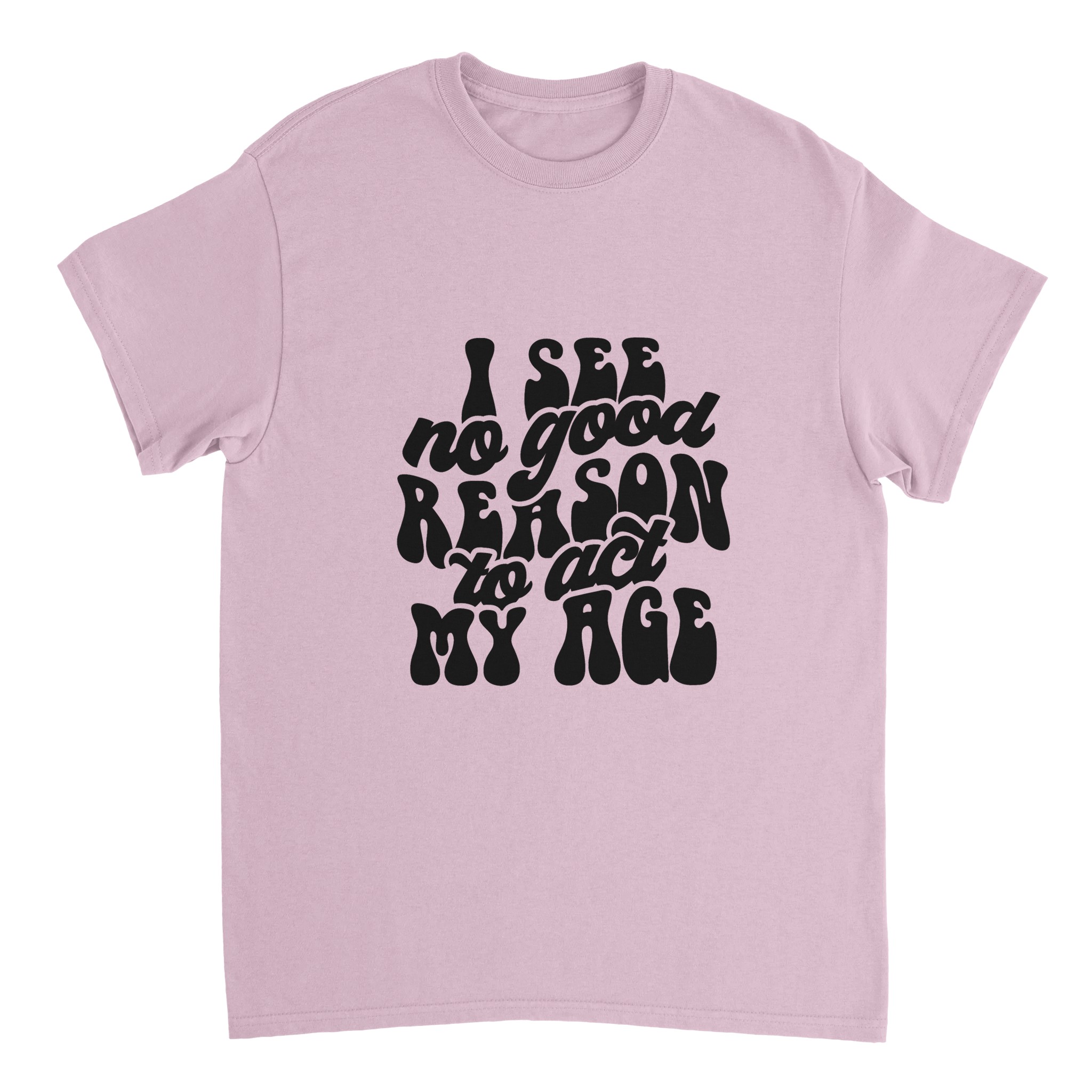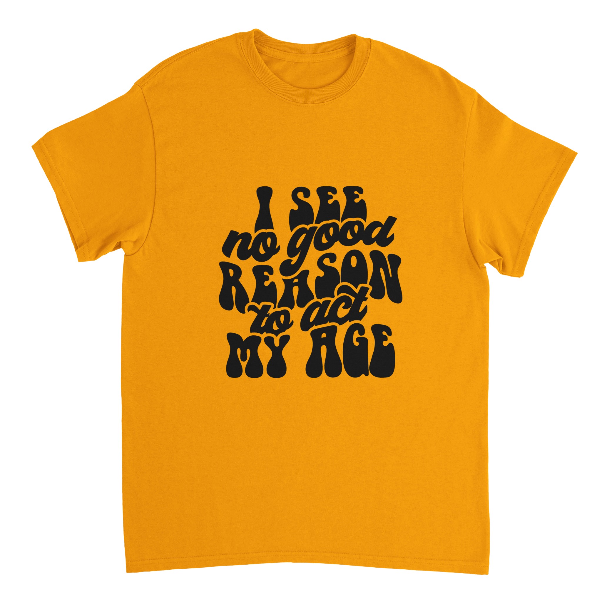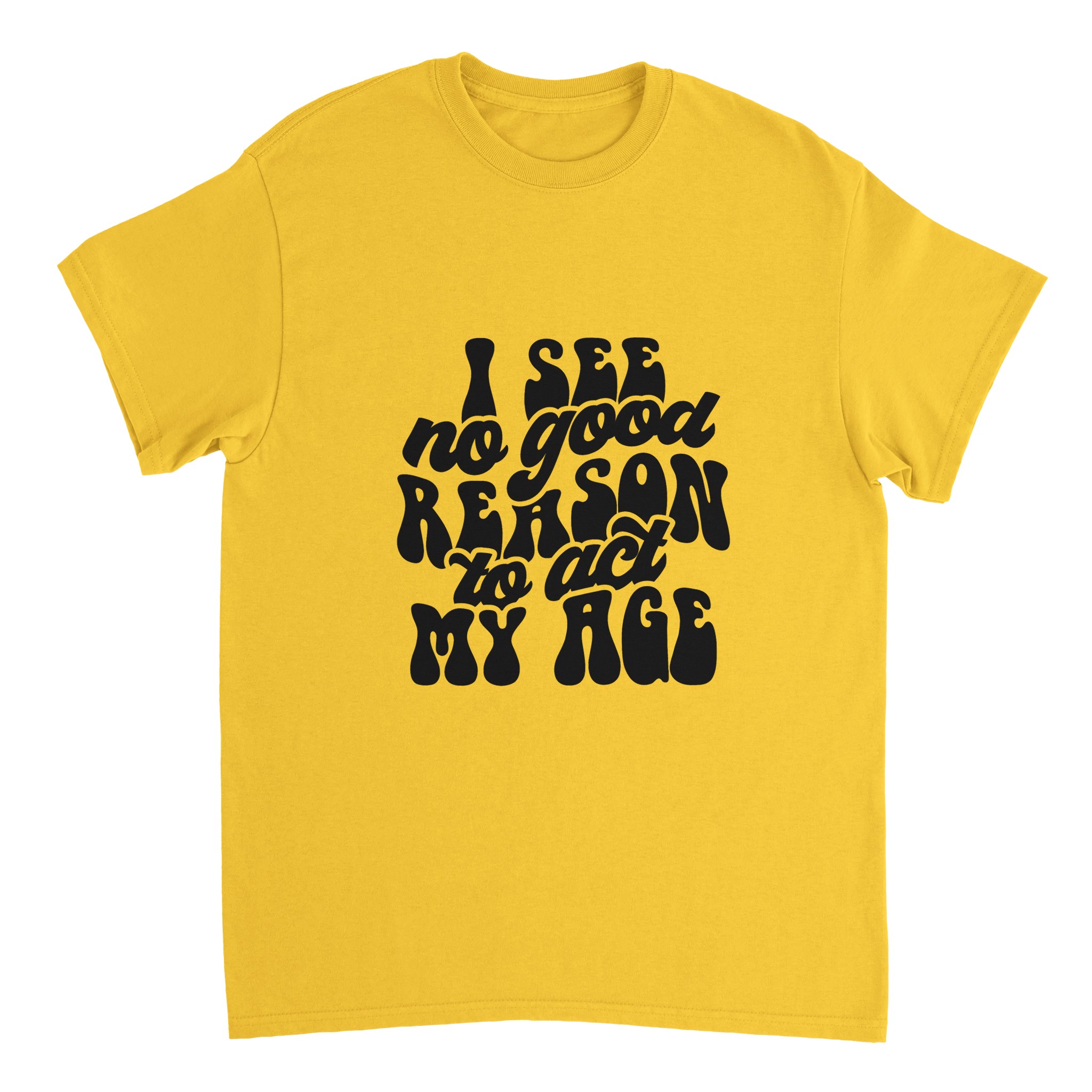 Retro Vibe T-shirt: “I See No Good Reason to Act My Age” – Unisex Bomulls-T-shirt med Uttrycksfullt Tryck