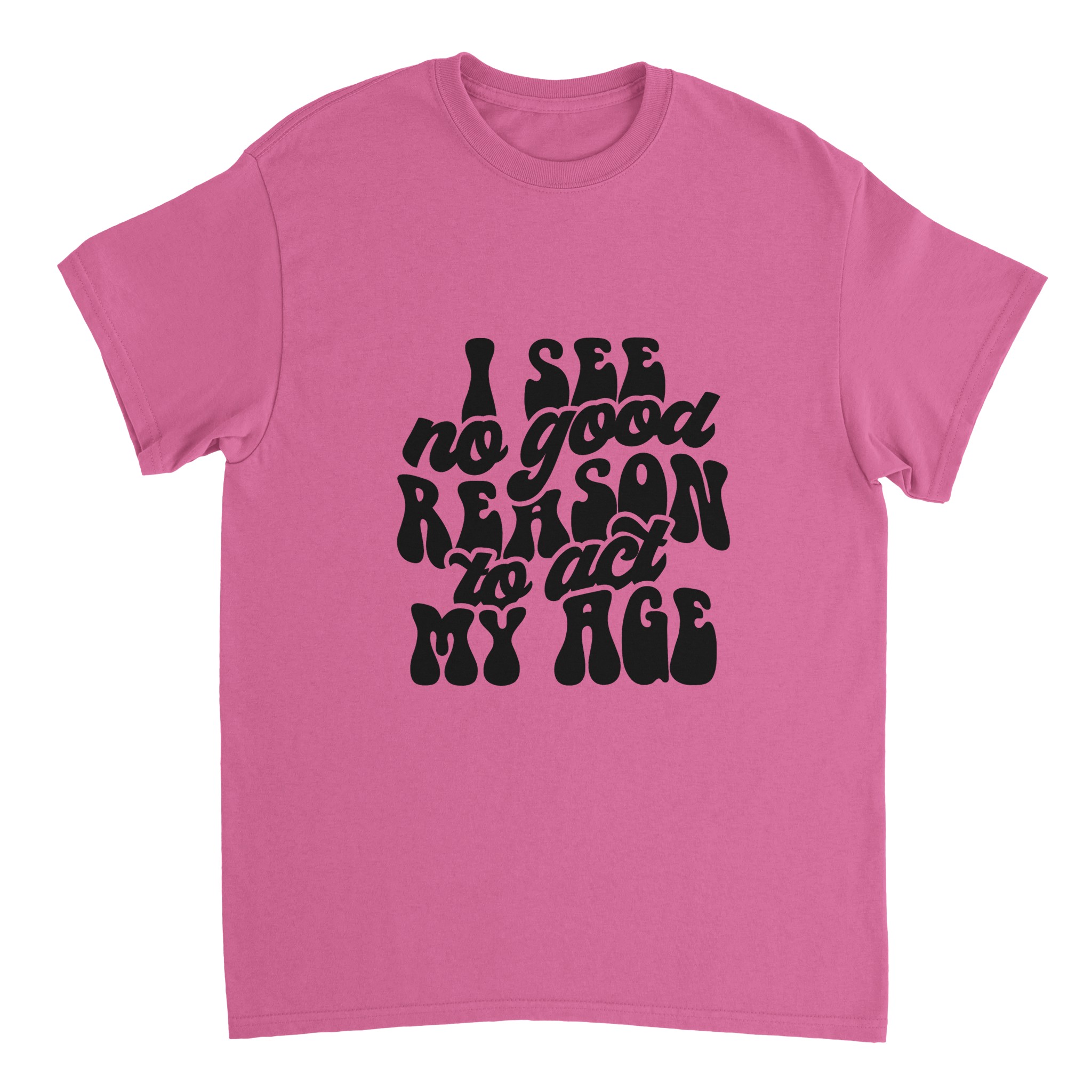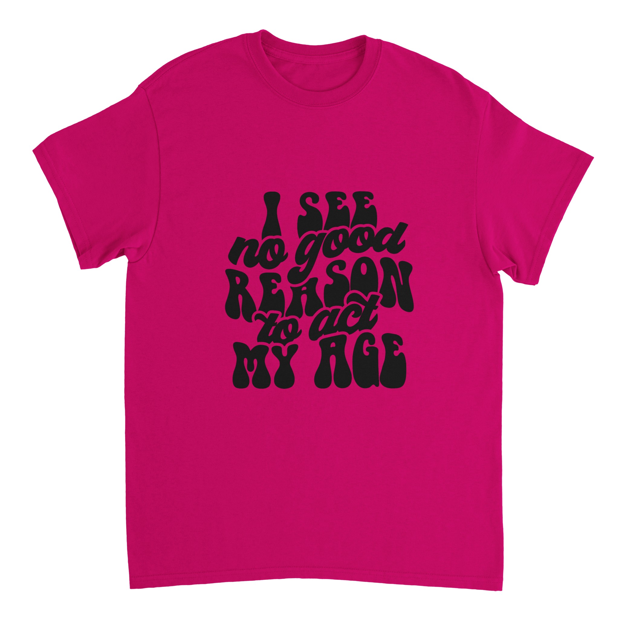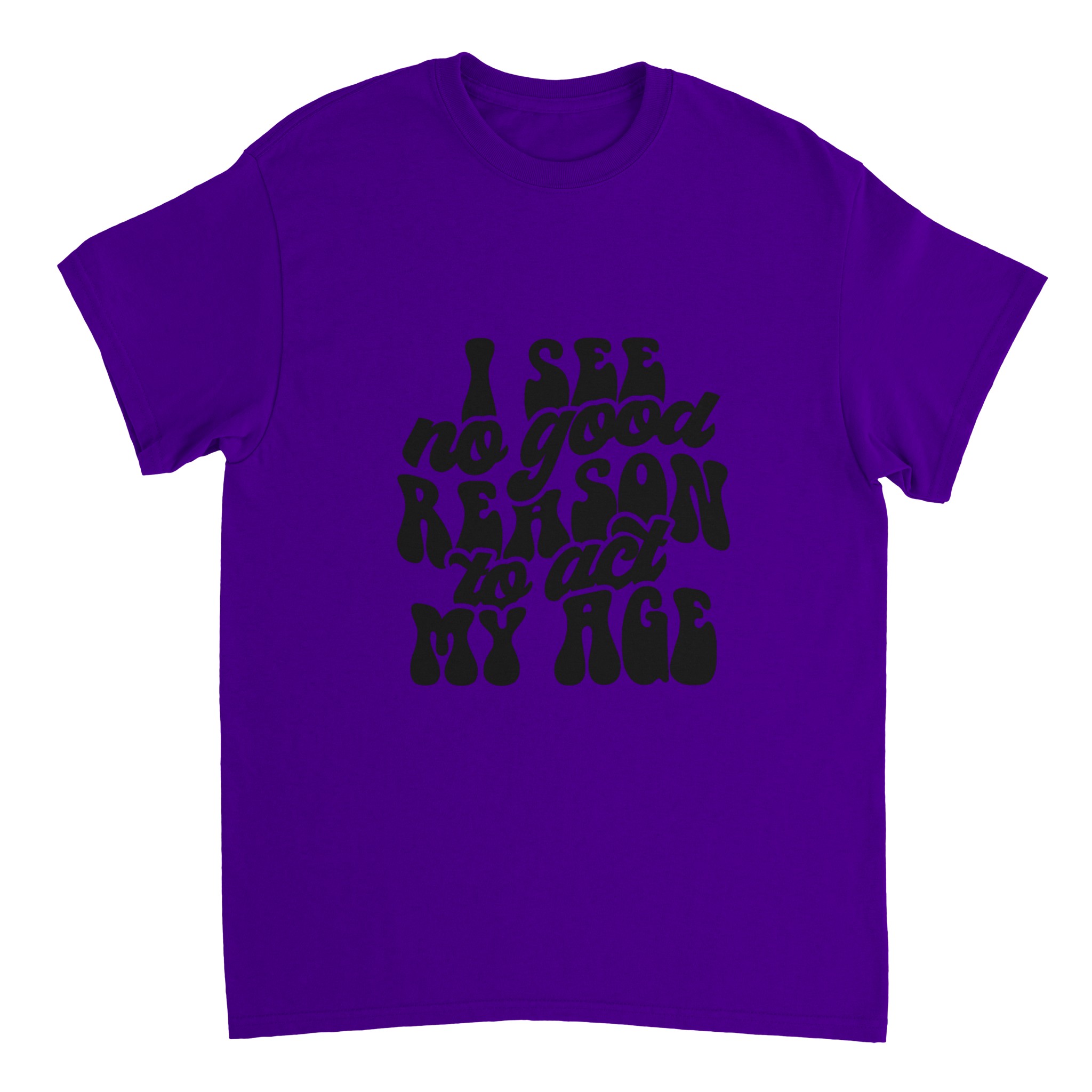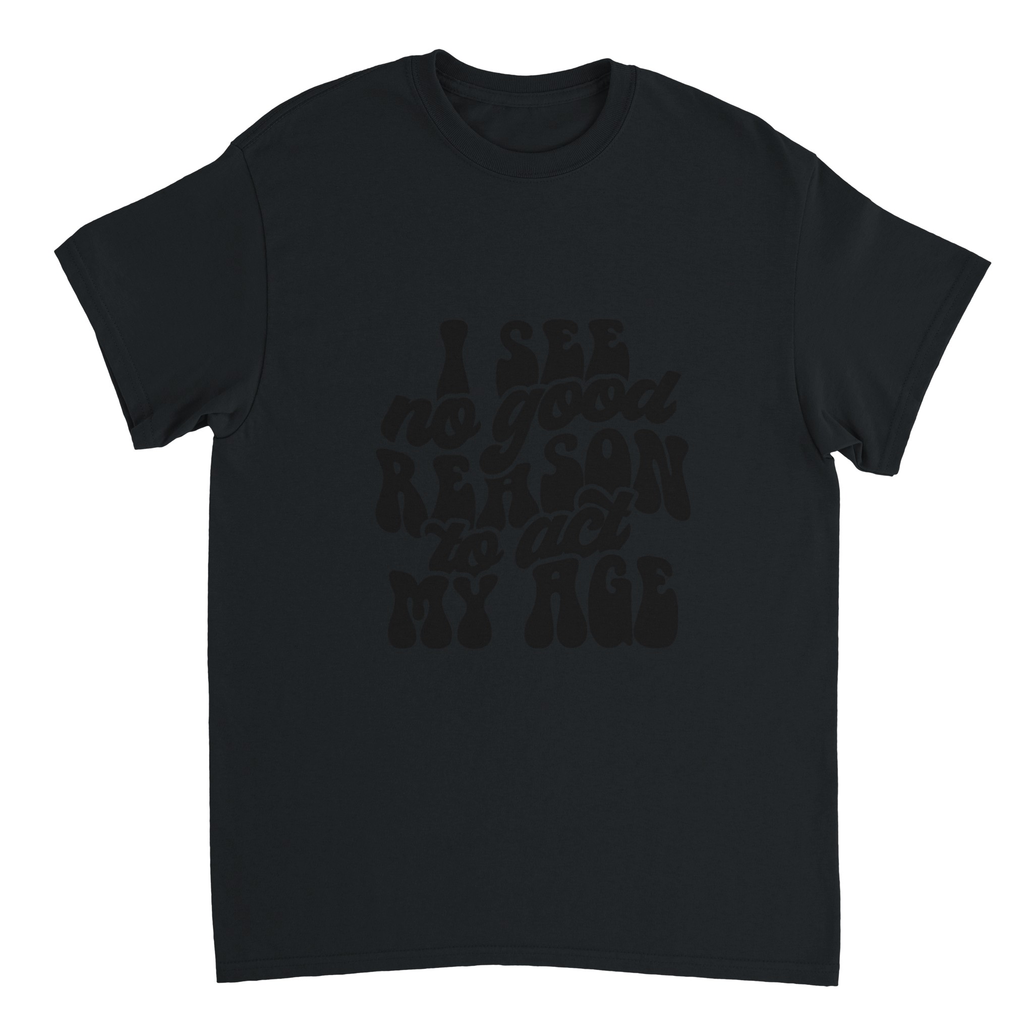 Retro Vibe T-shirt: “I See No Good Reason to Act My Age” – Unisex Bomulls-T-shirt med Uttrycksfullt Tryck