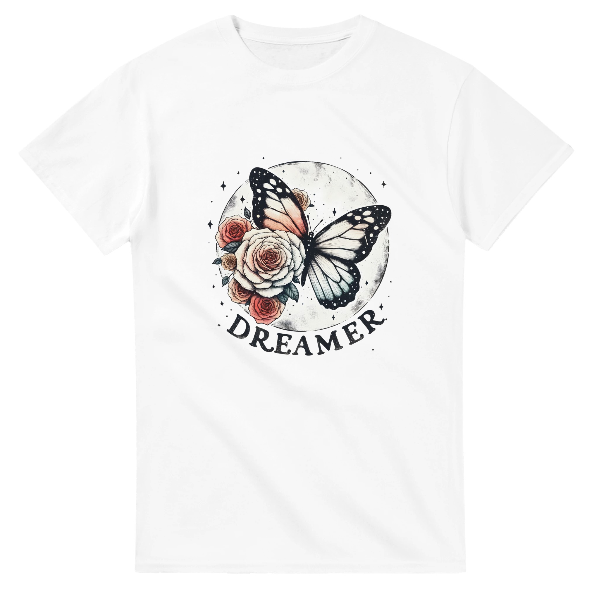 Drömmar och Rosor – Estetisk T-shirt med Fjäril & Blommor, Unisex för Vardagsmagi