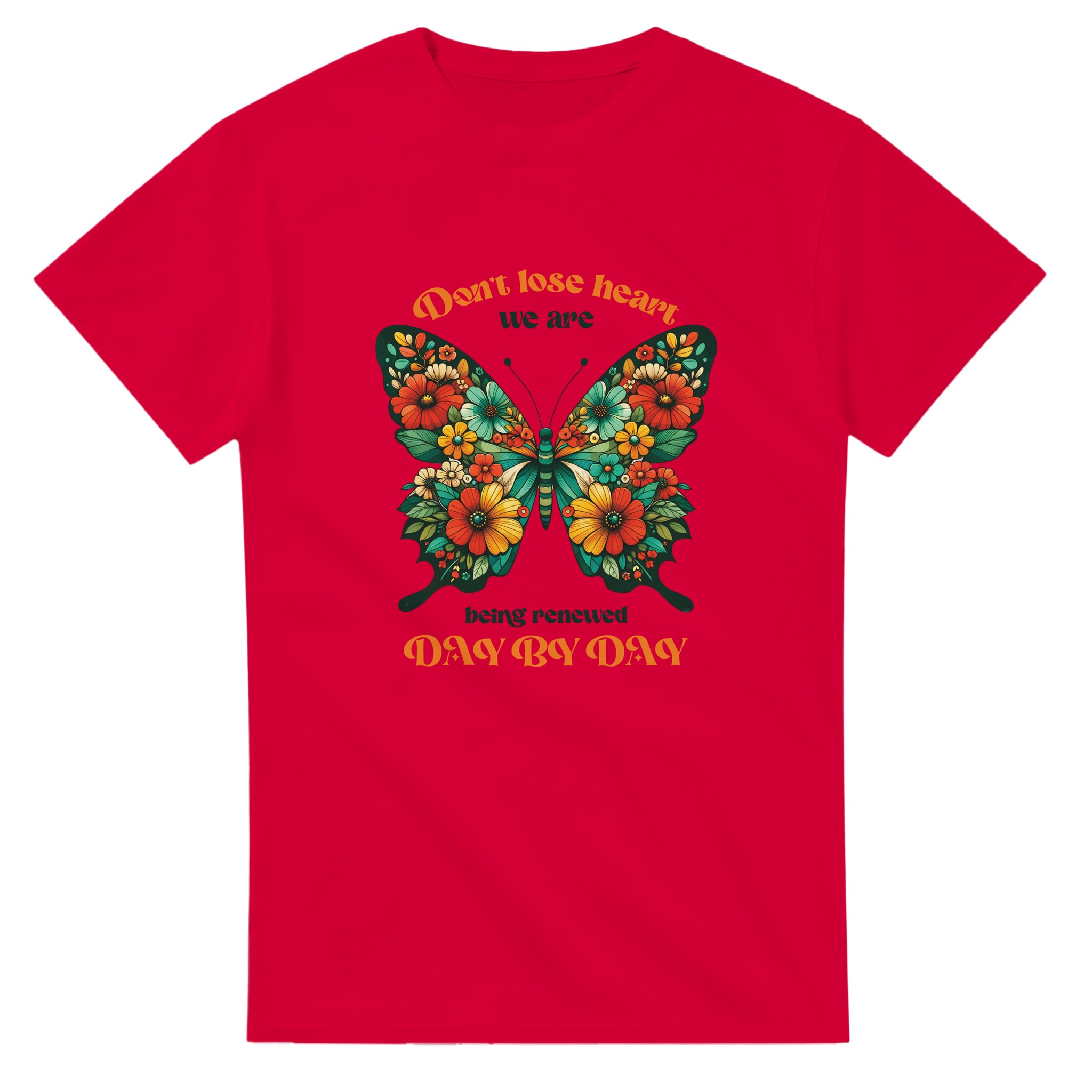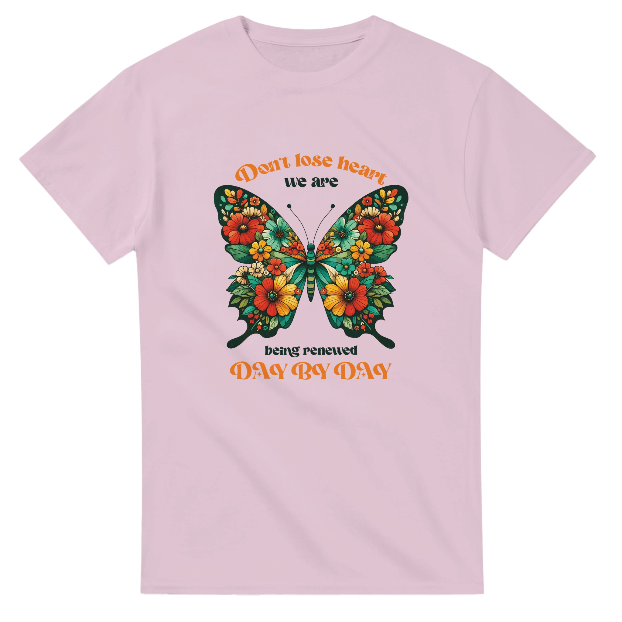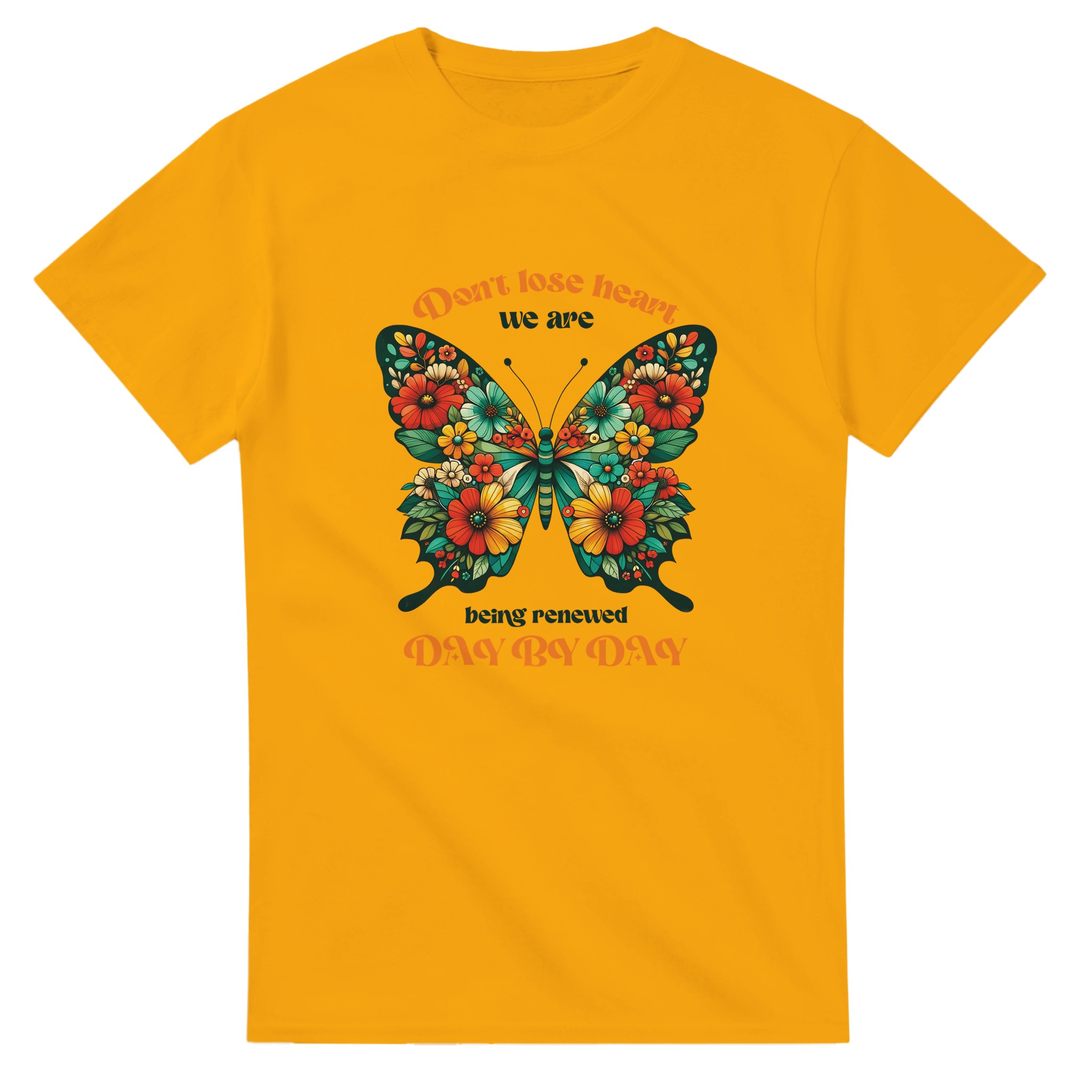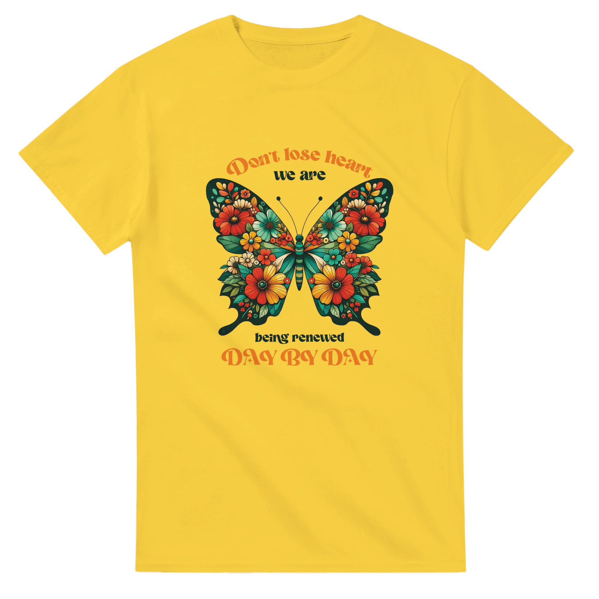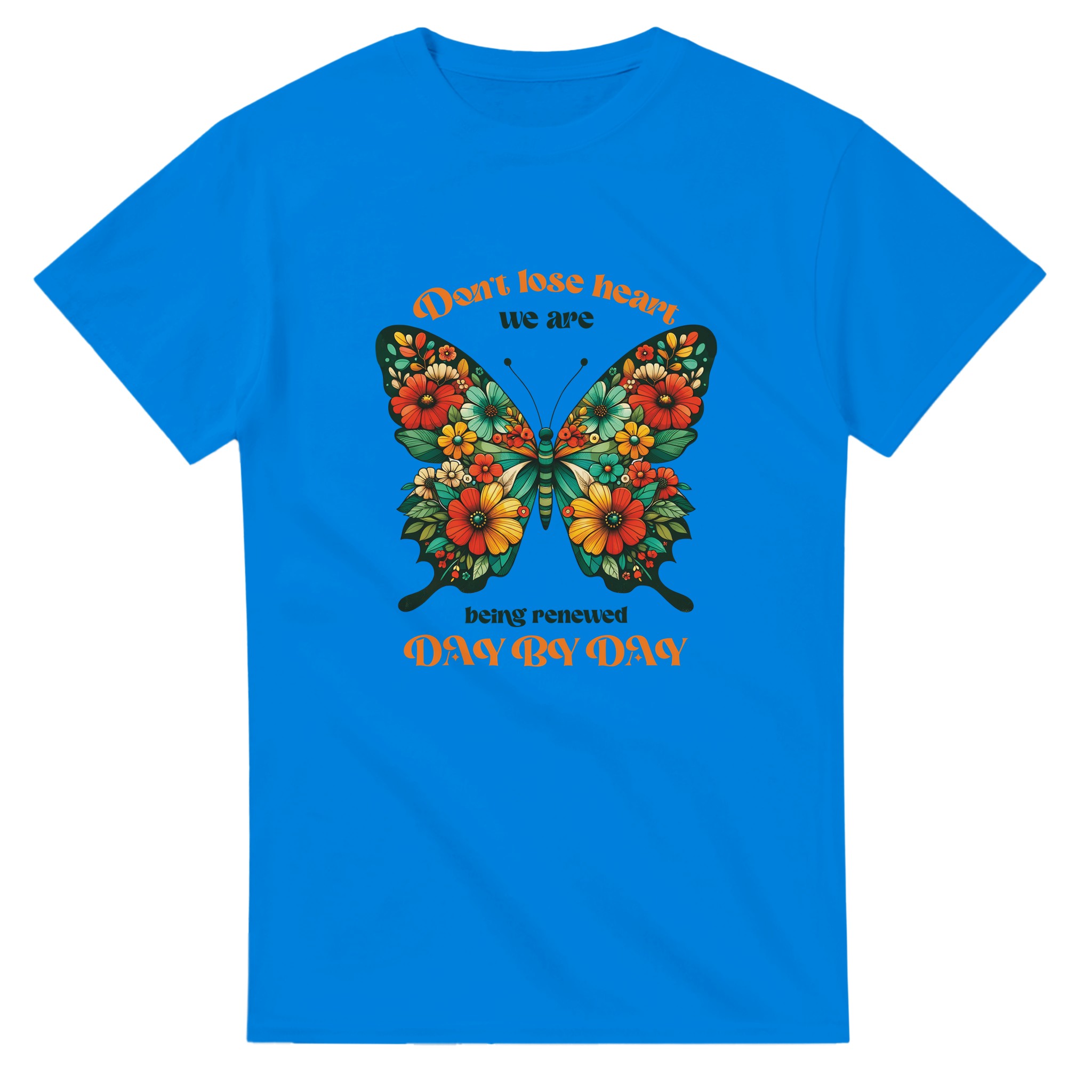 Fjäril ‘Don’t Lose Heart’ T-shirt – Vibrerande Blommig Design, Unisex Passform för Daglig Inspiration