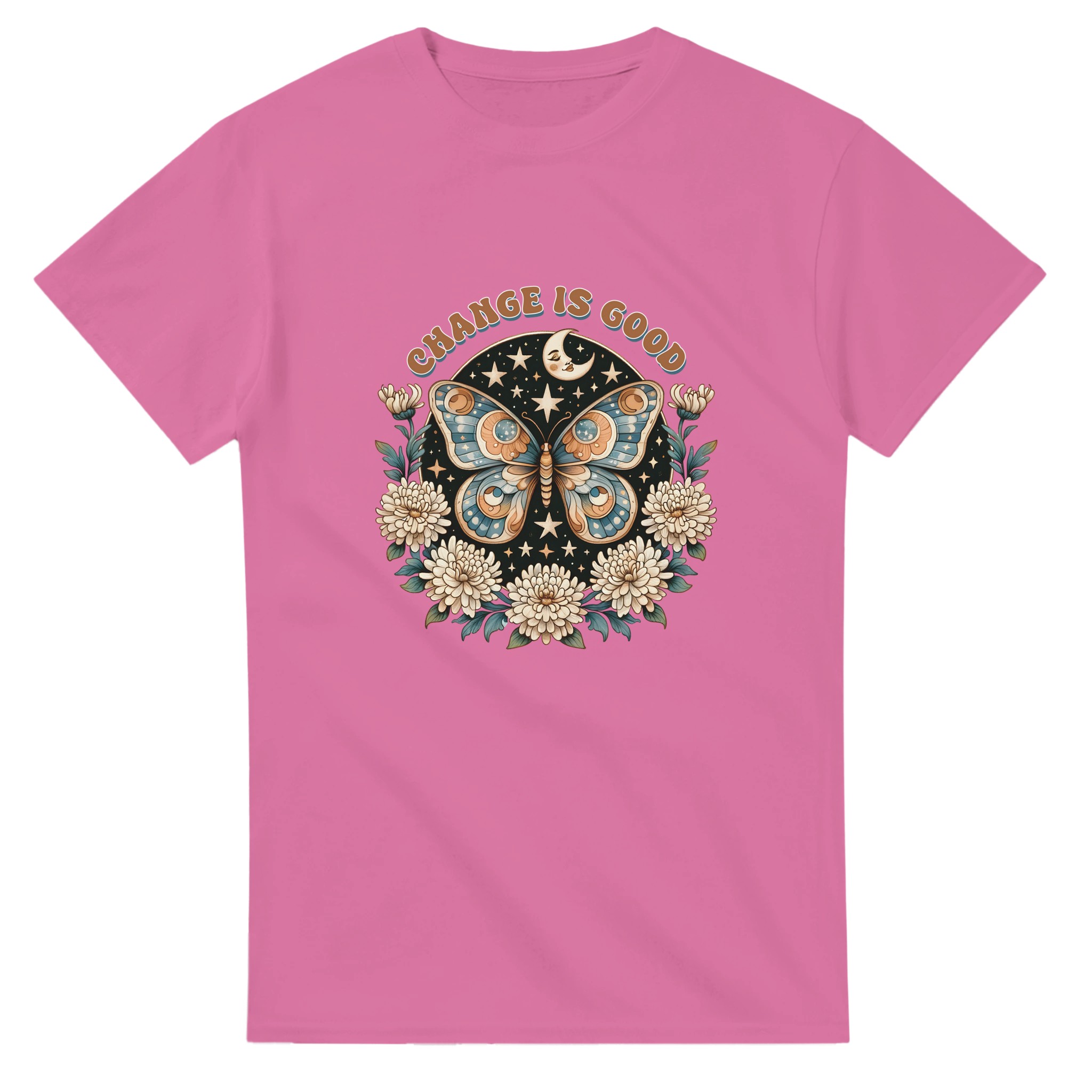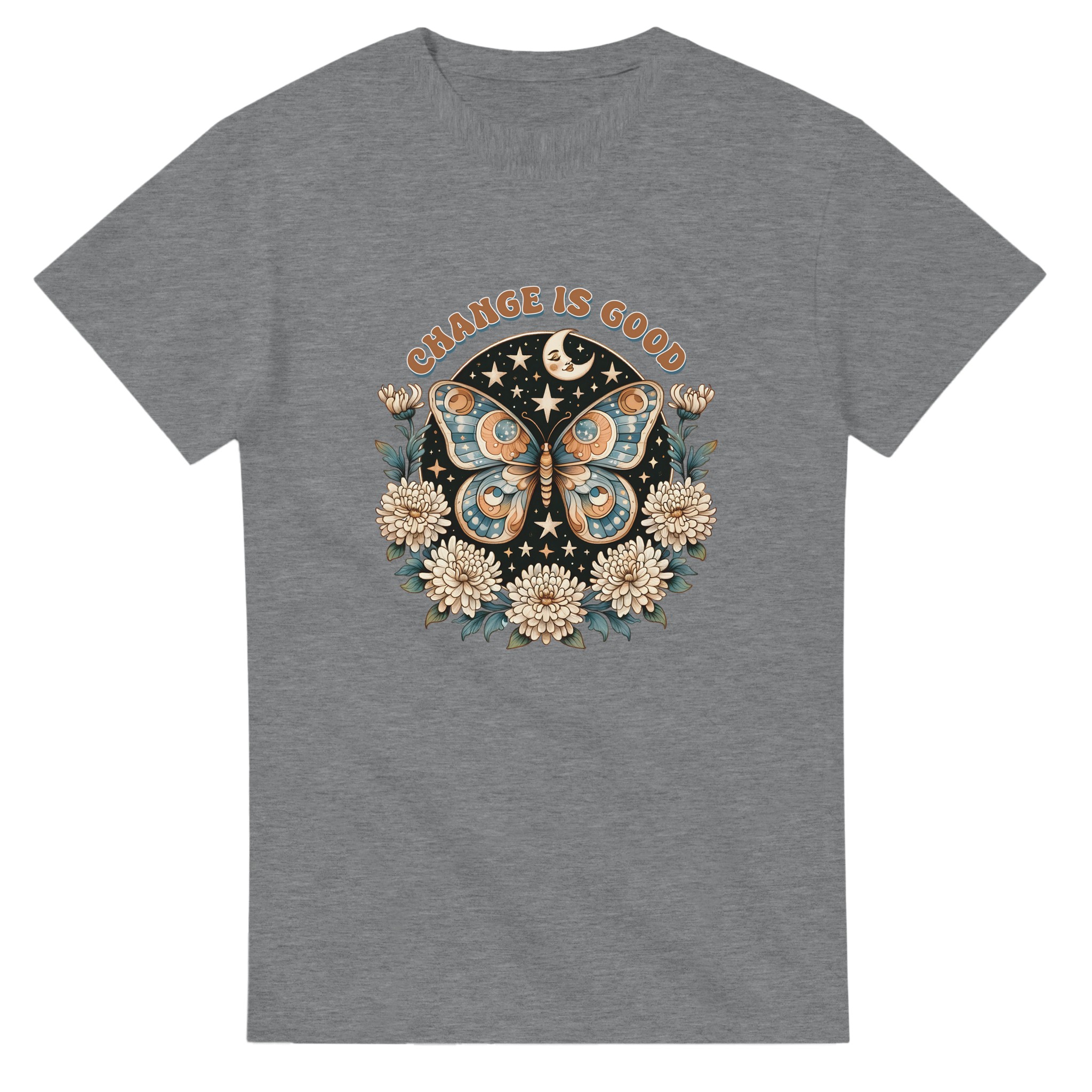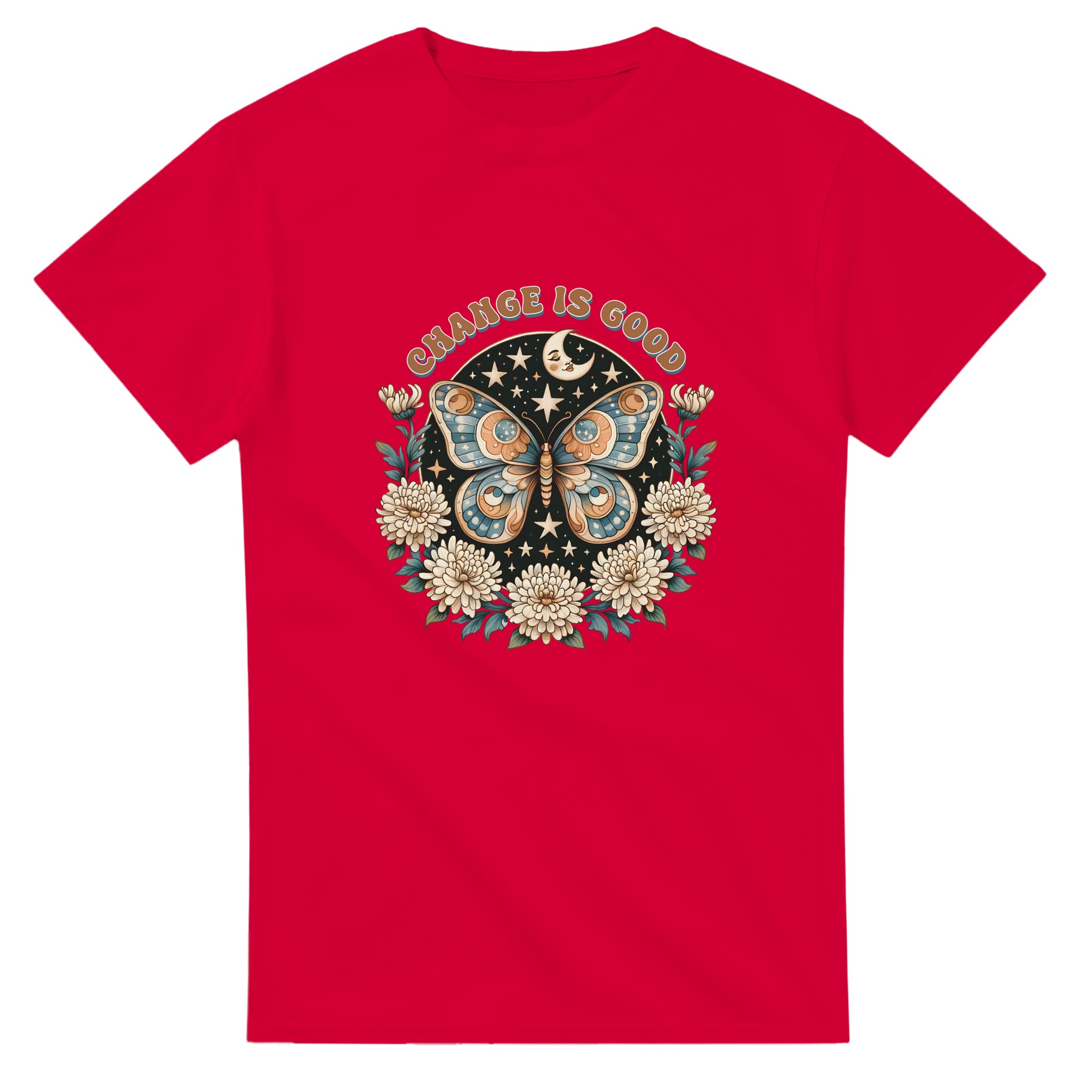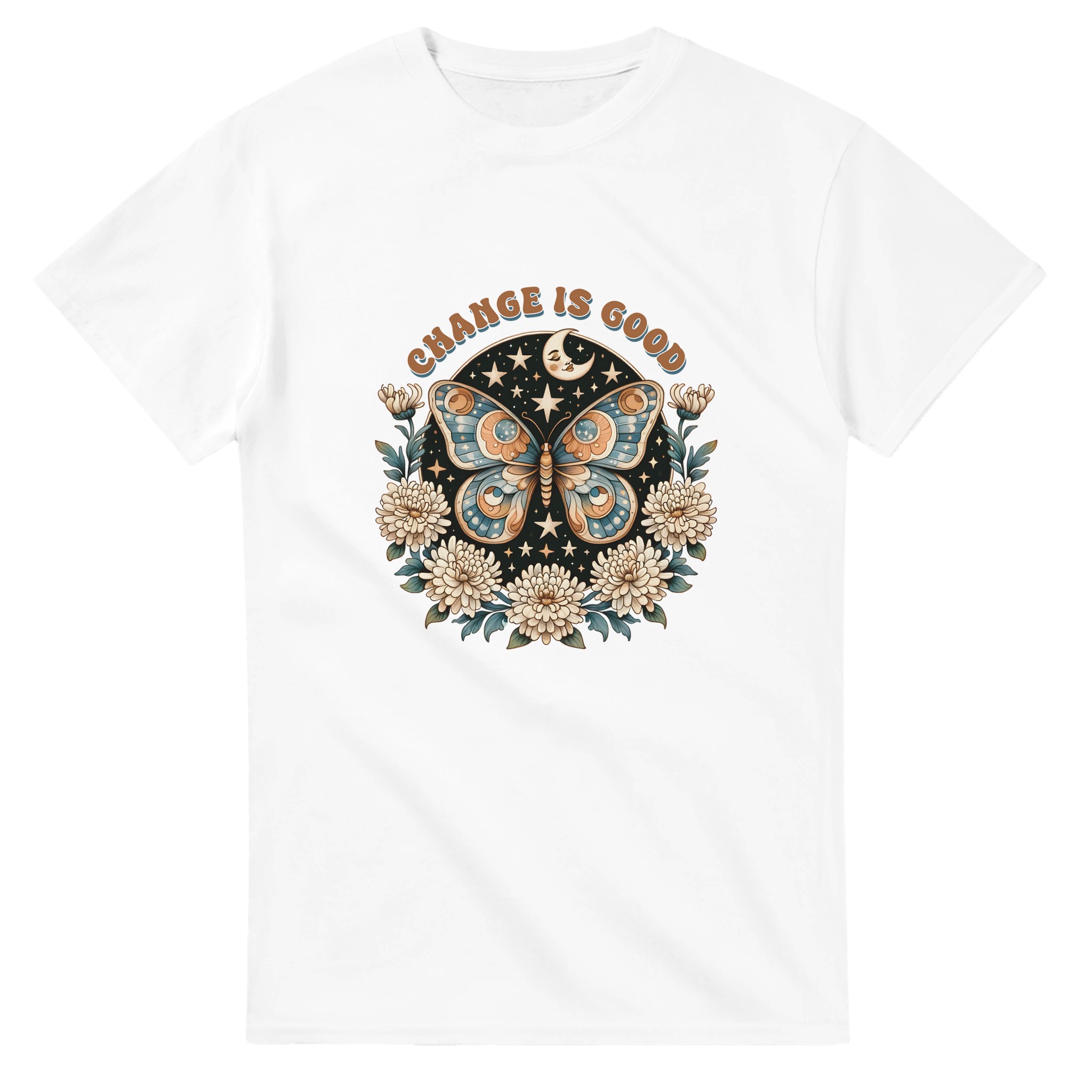 Change Is Good – Mystisk Fjäril & Blommor T-shirt – Klassisk, Unisex & Slitstark Design