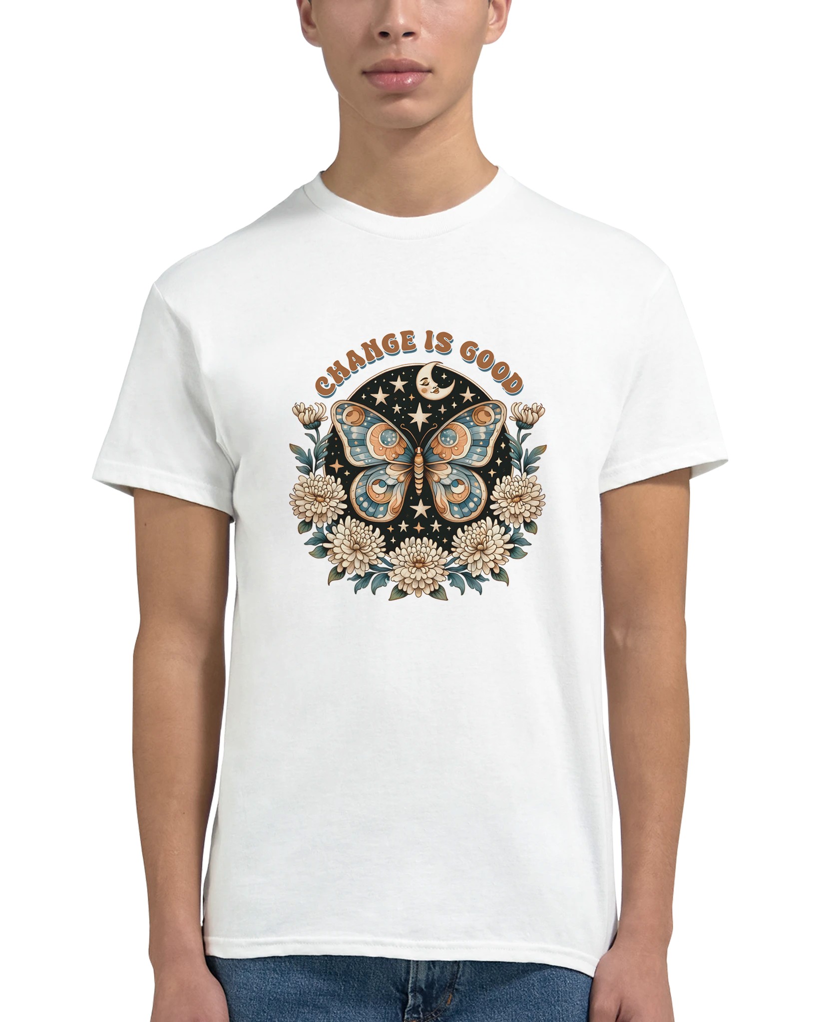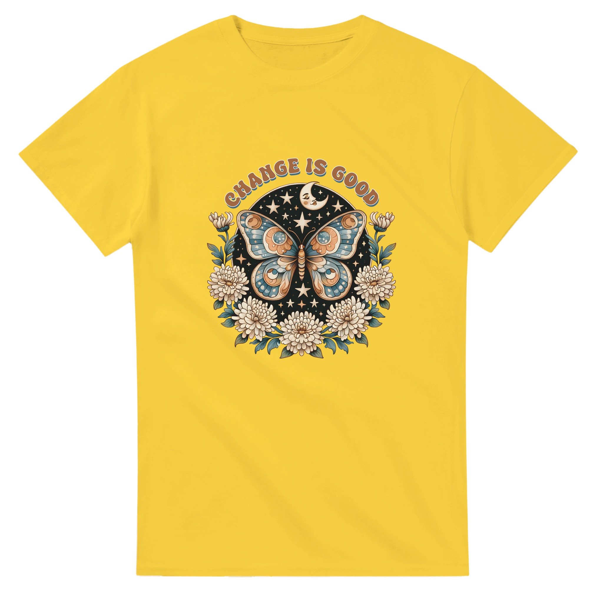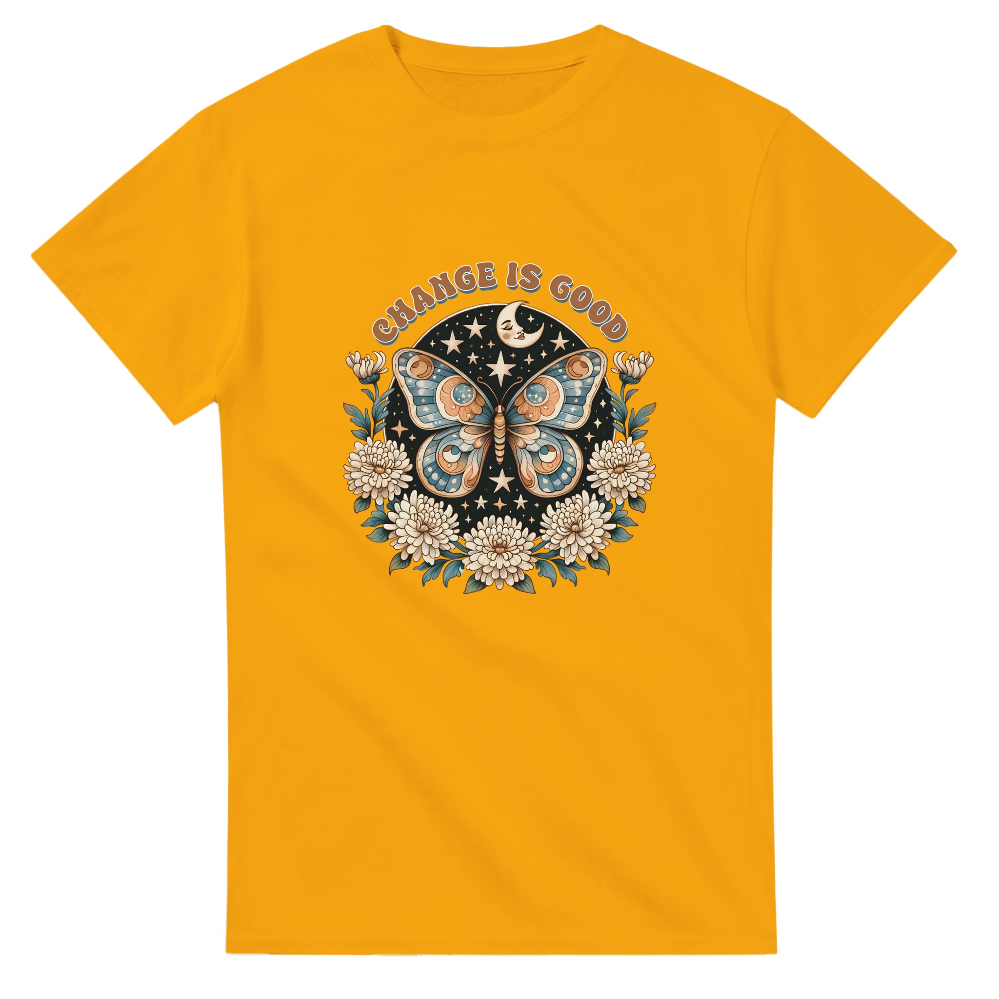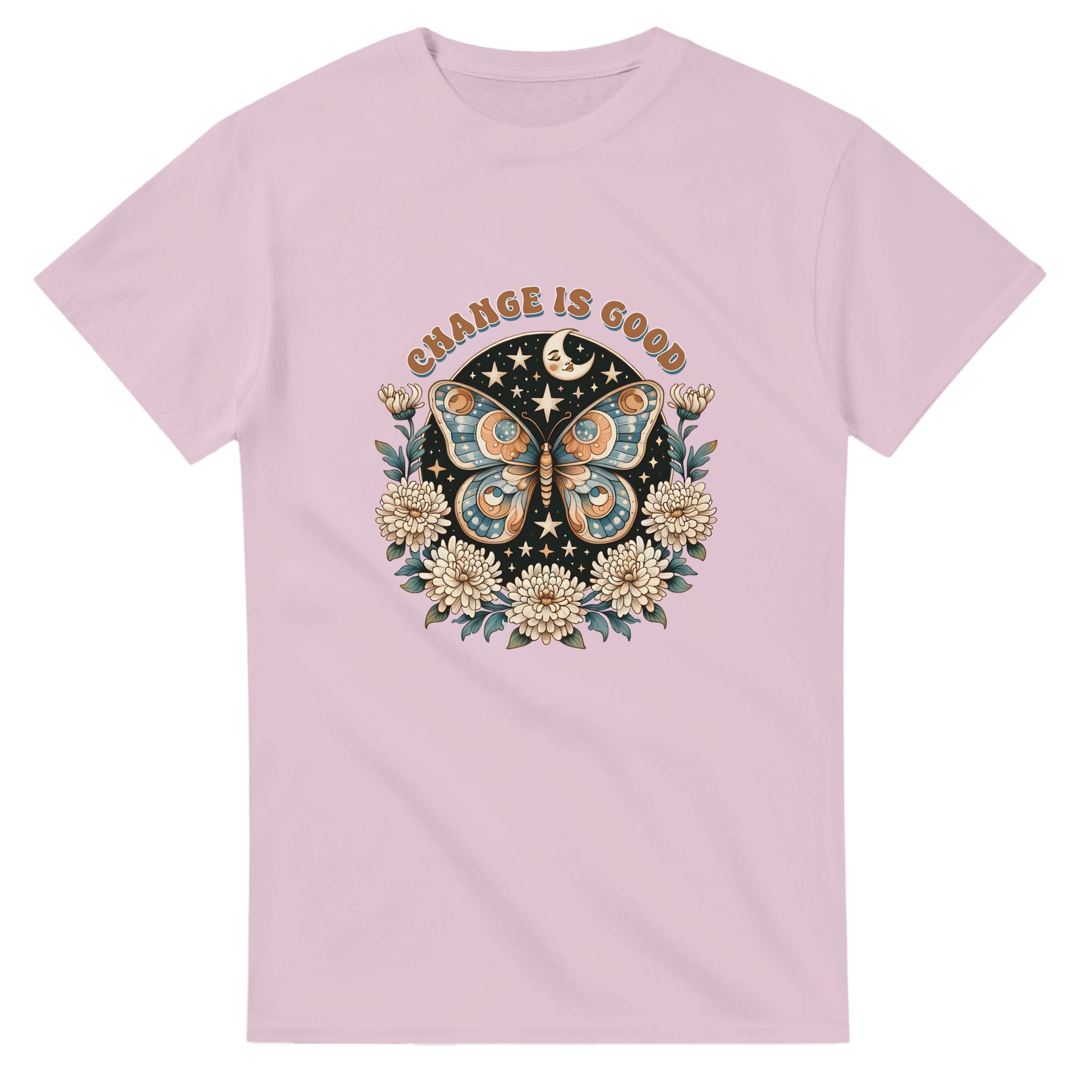 Change Is Good – Mystisk Fjäril & Blommor T-shirt – Klassisk, Unisex & Slitstark Design