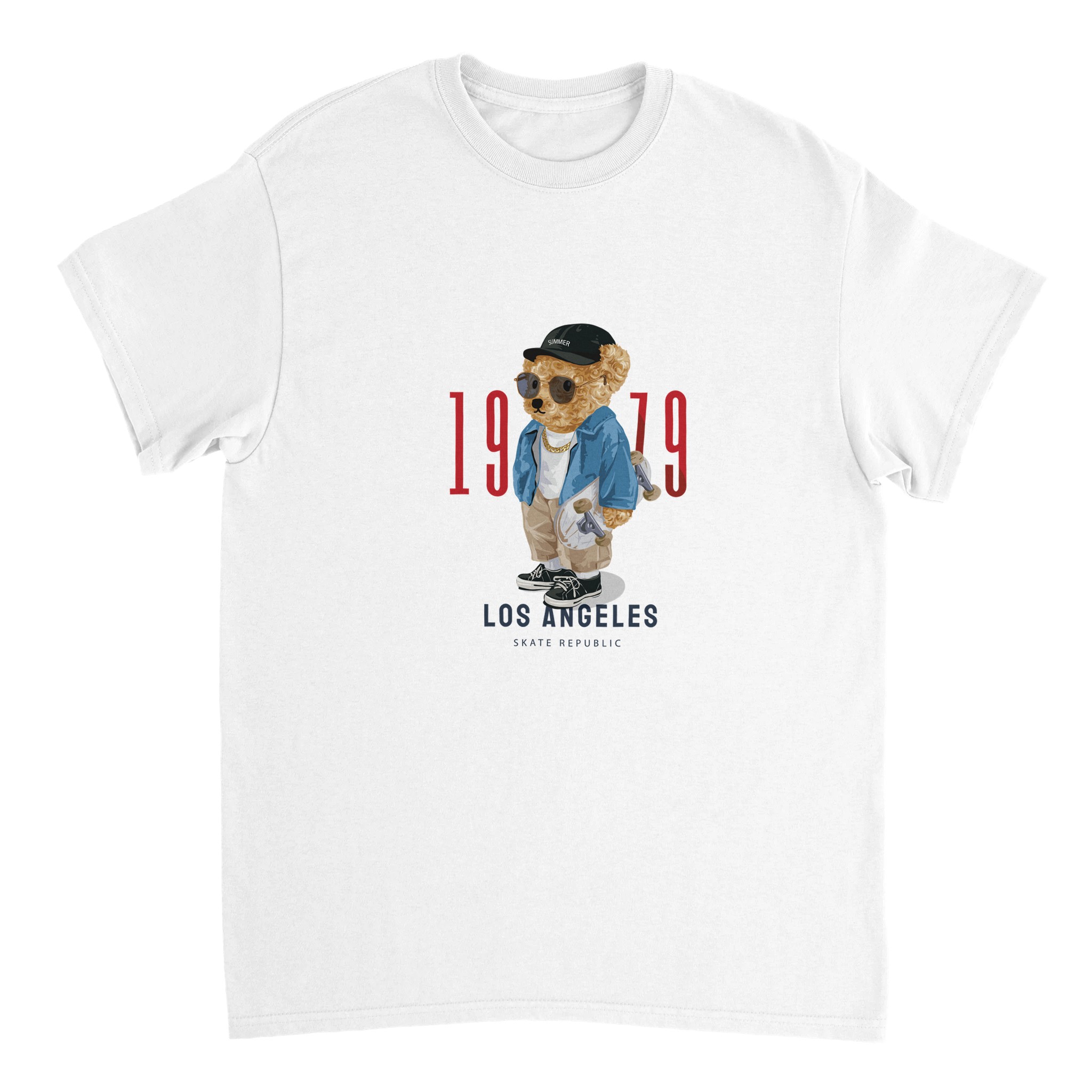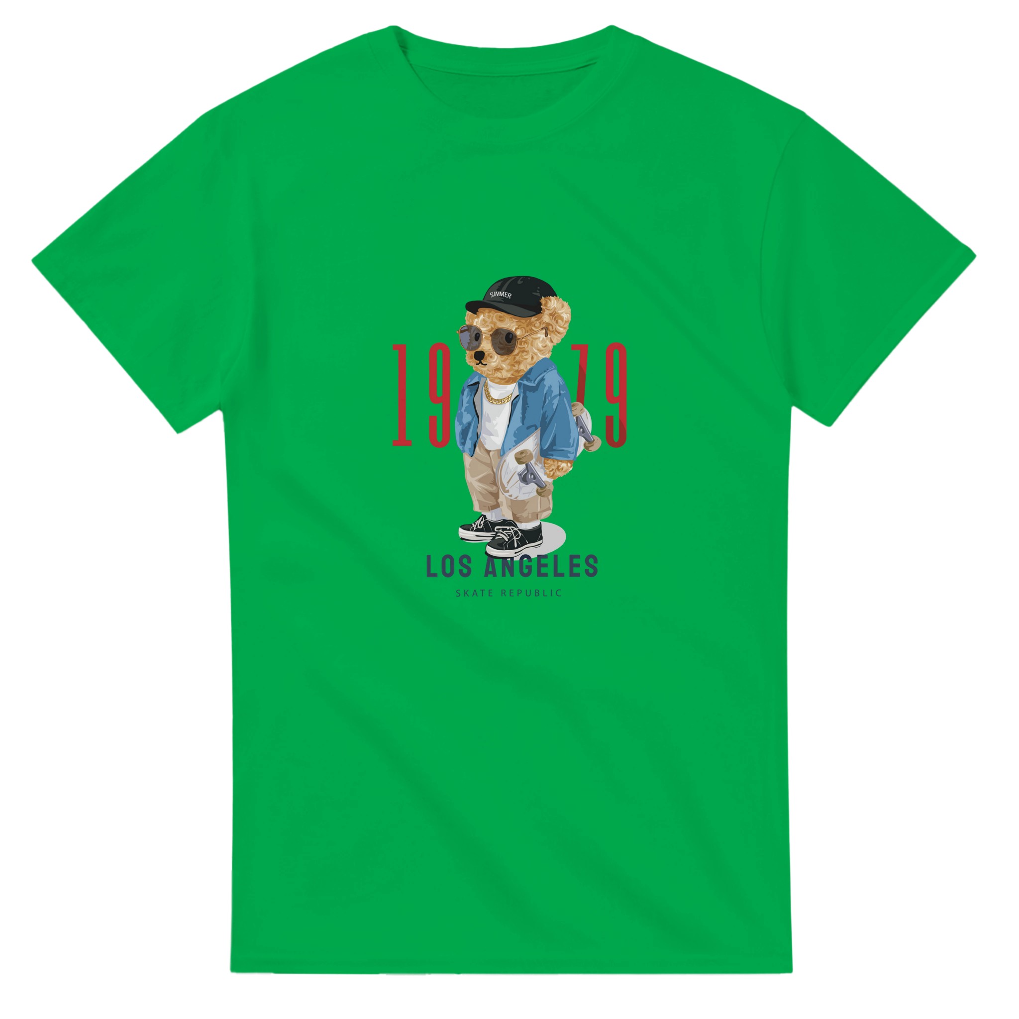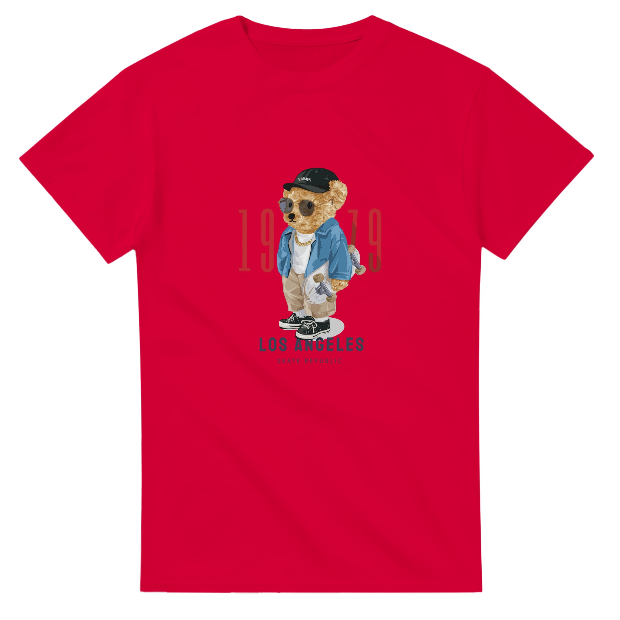 Retro Skater Teddy T-shirt – Klassisk Unisex Bomullströja med Cool Bear-design, Perfekt för Vardags och Tryck