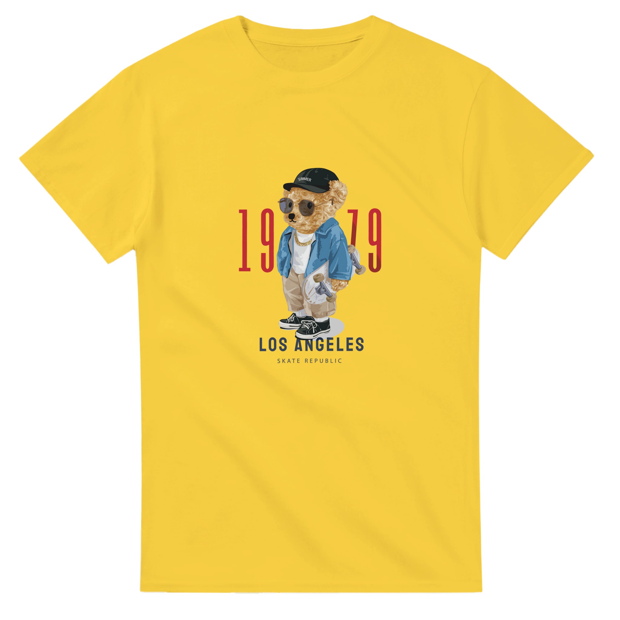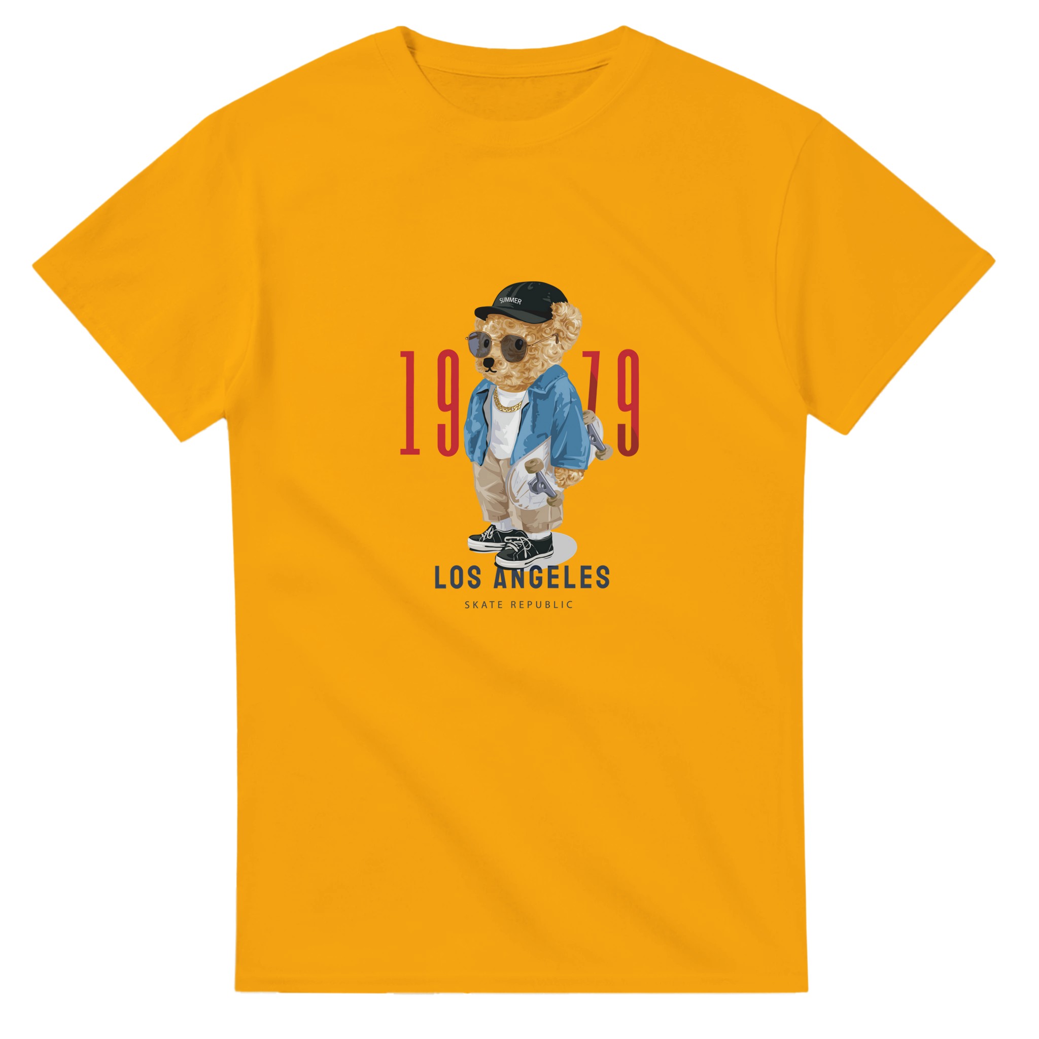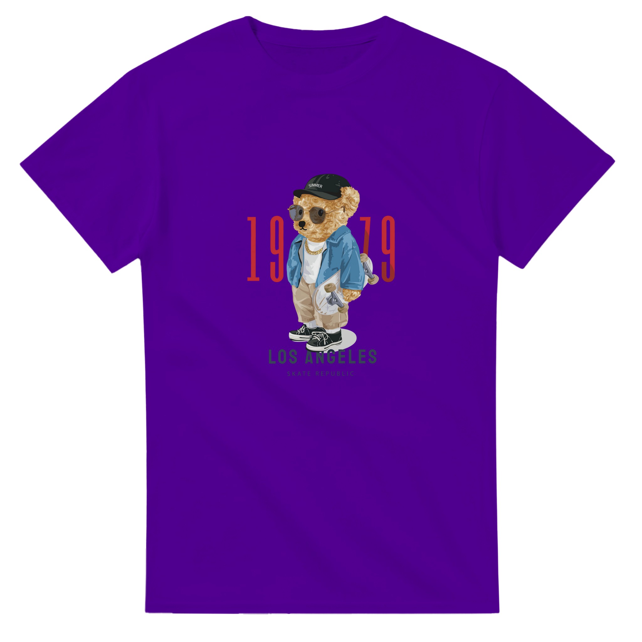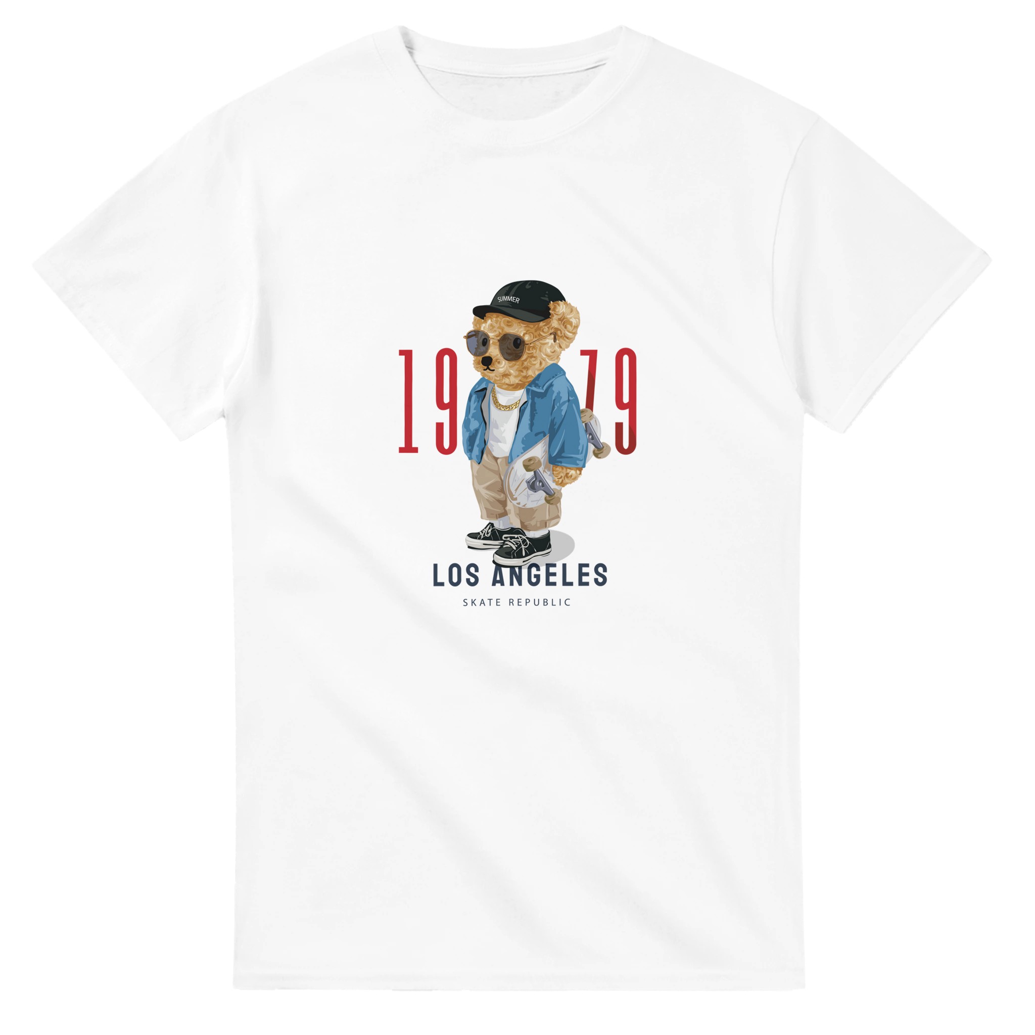Retro Skater Teddy T-shirt – Klassisk Unisex Bomullströja med Cool Bear-design, Perfekt för Vardags och Tryck