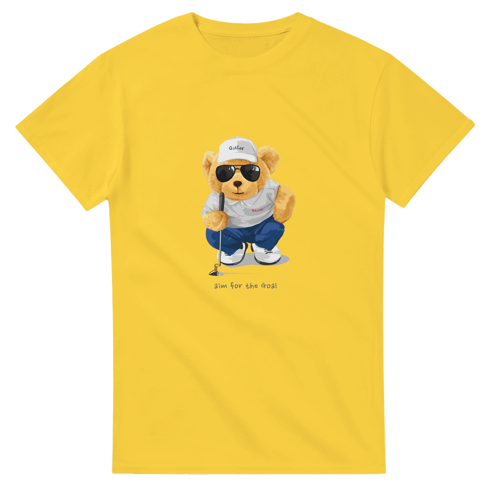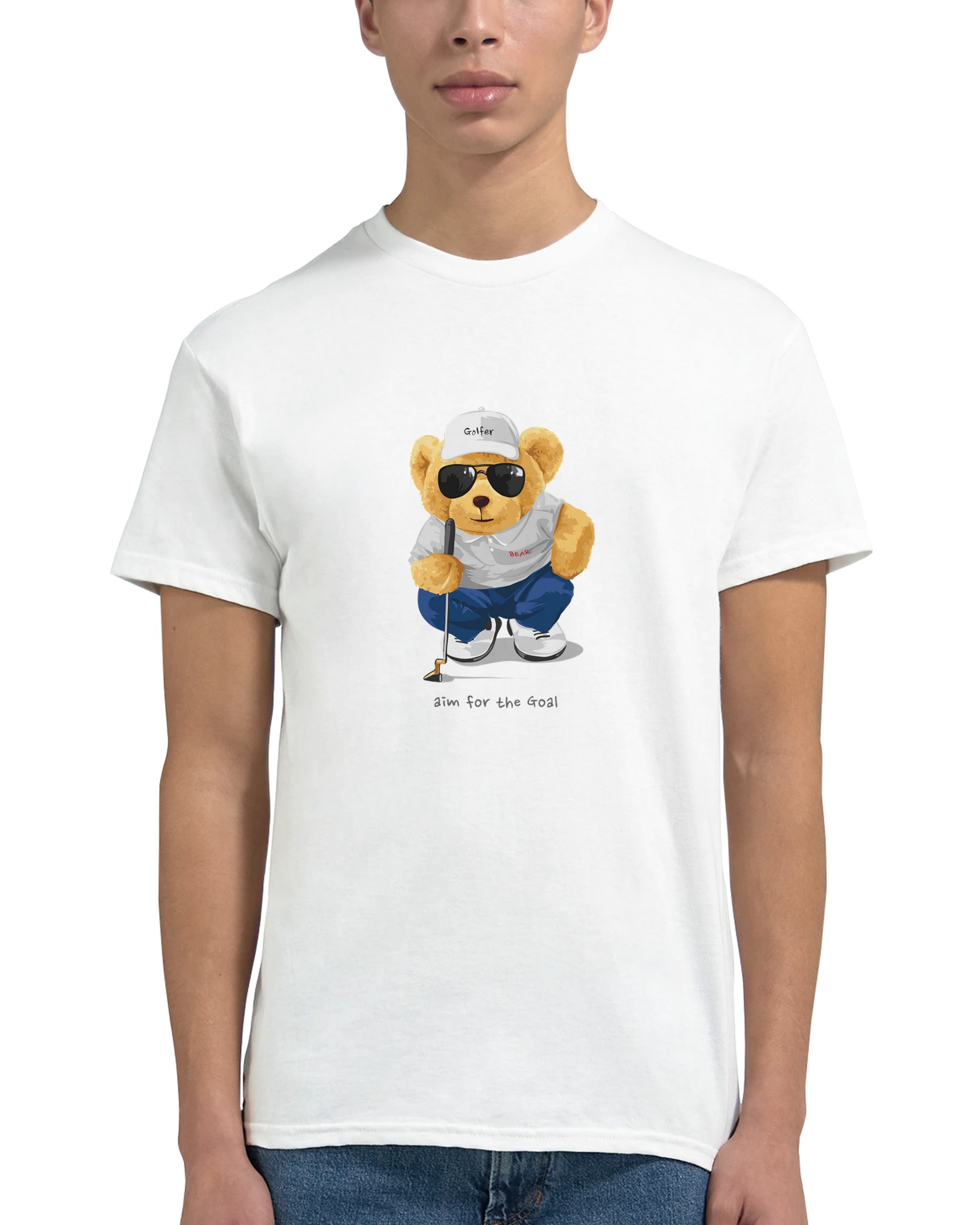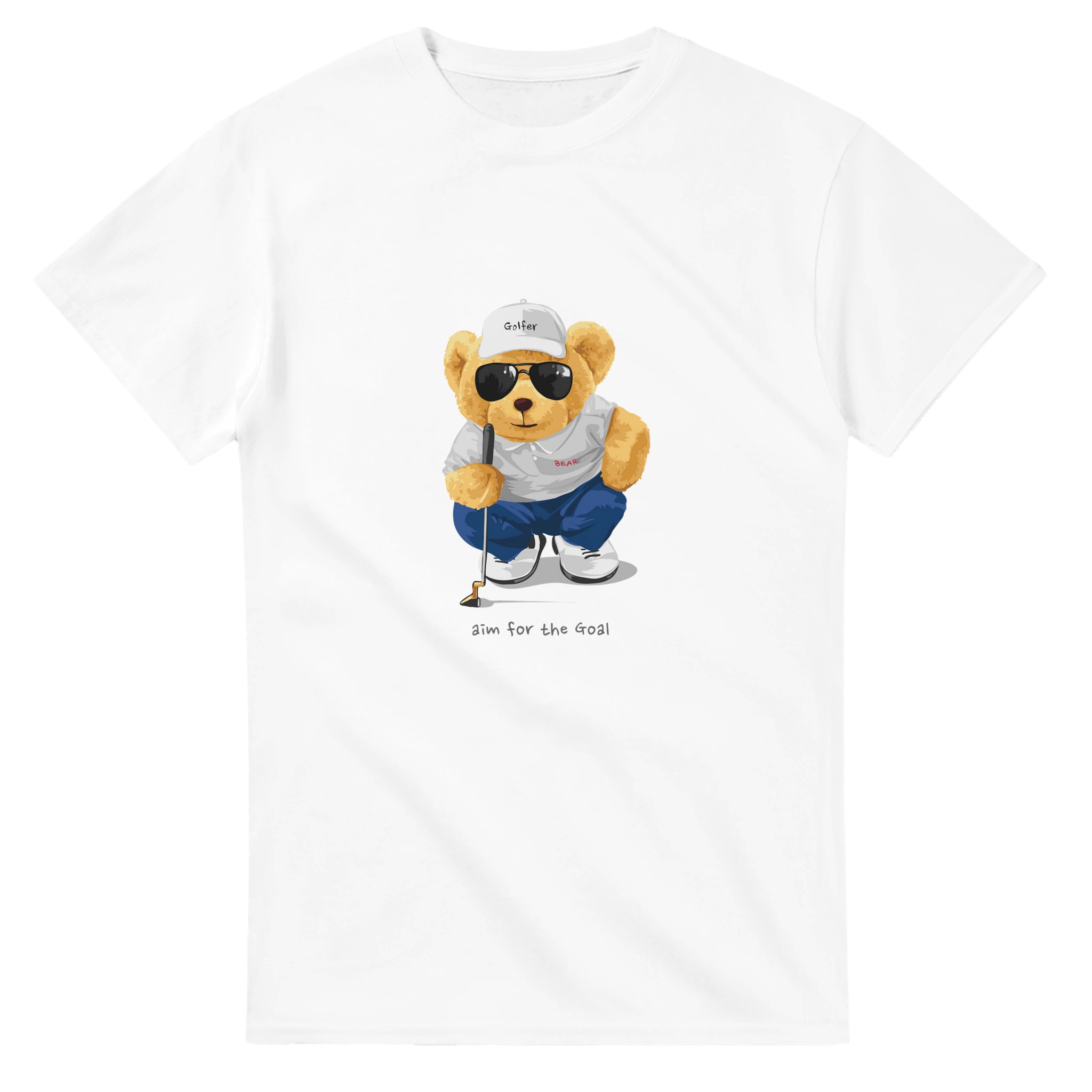 Klassisk T-shirt – Golfing Bear ‘Aim for the Goal’ Design för Vardags och Tryck – Välj din Färg och Storlek