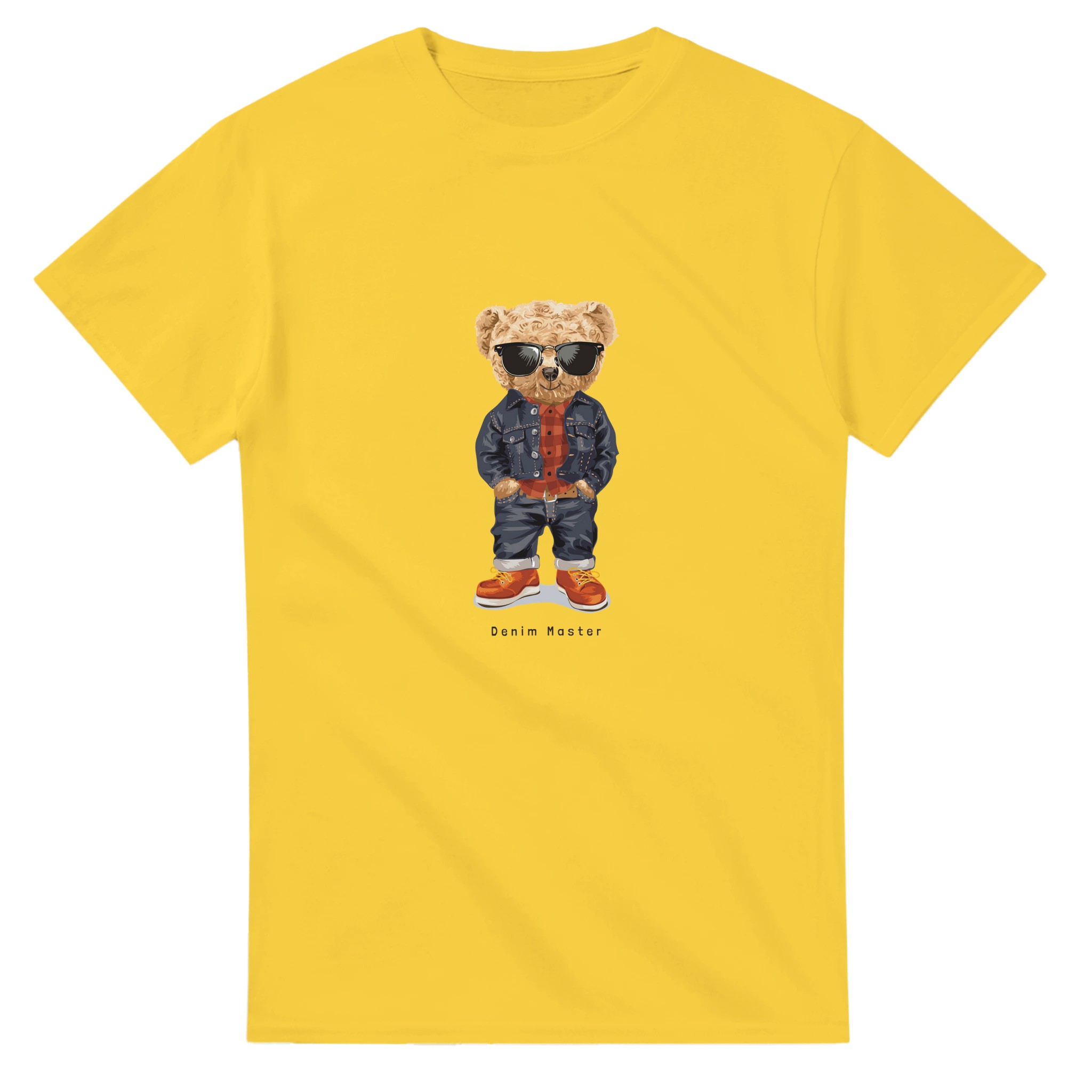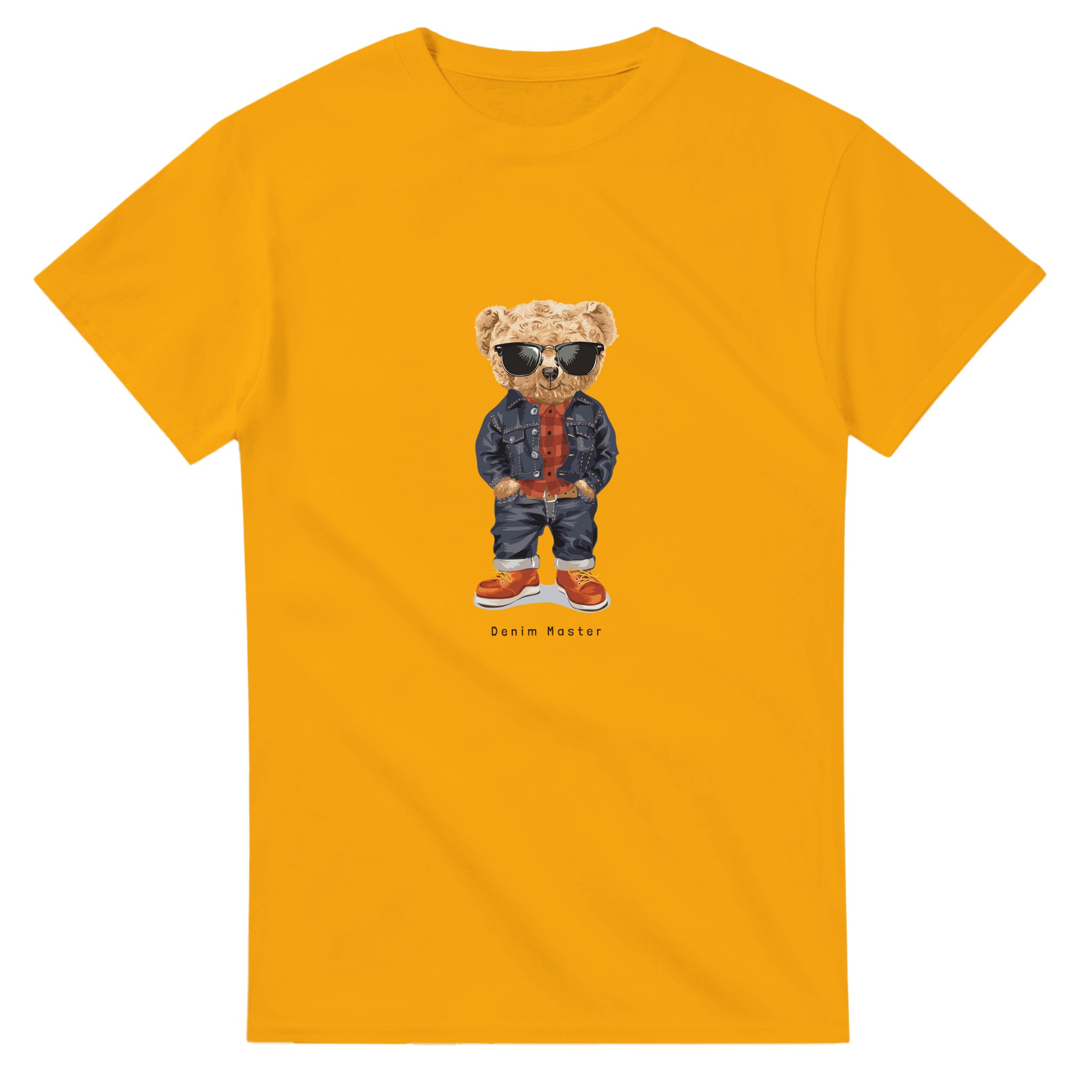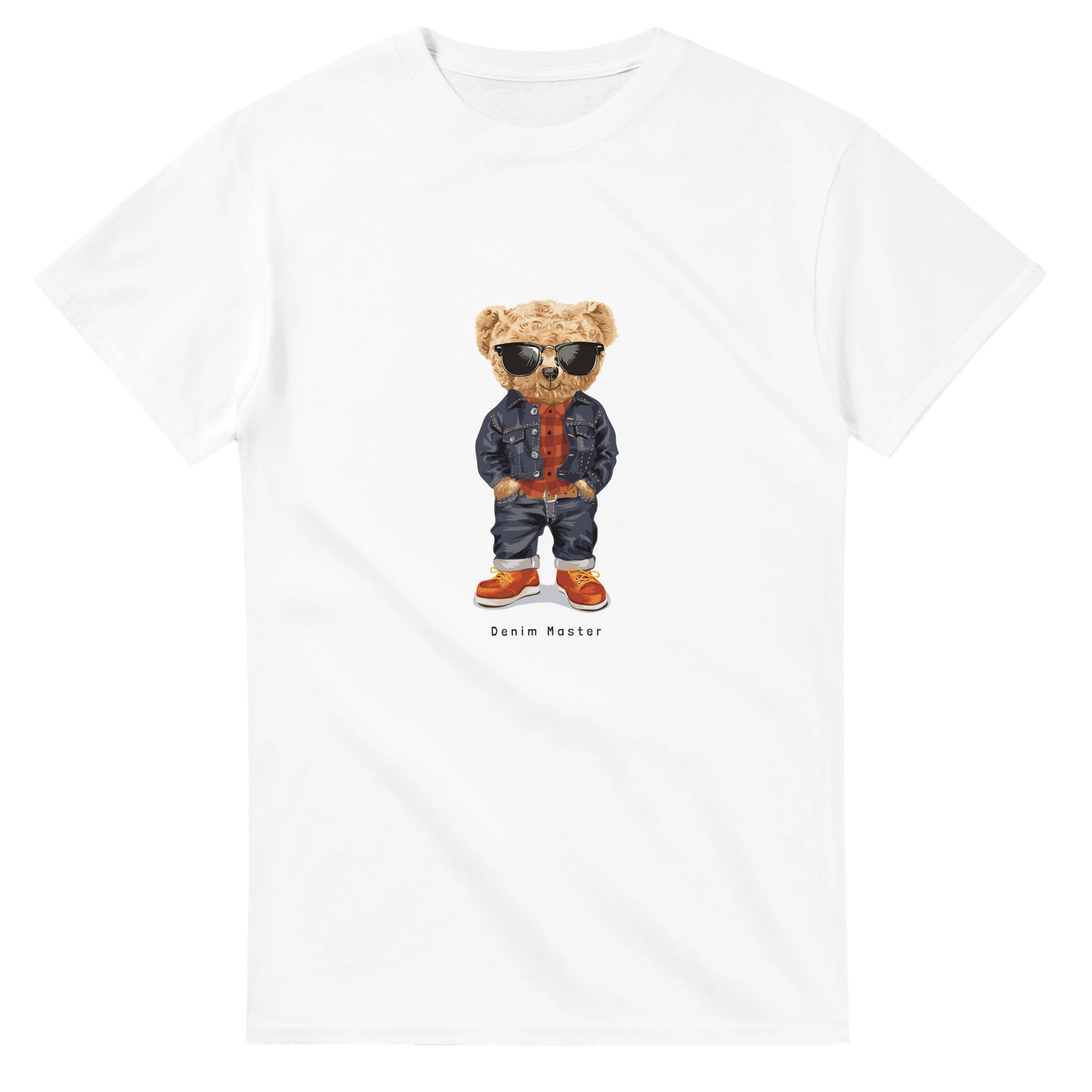 Klassisk T-shirt med Cool Teddybjörn i Jeans – Tålig, Unisex, Slitstark Design för Vardags och Tryck