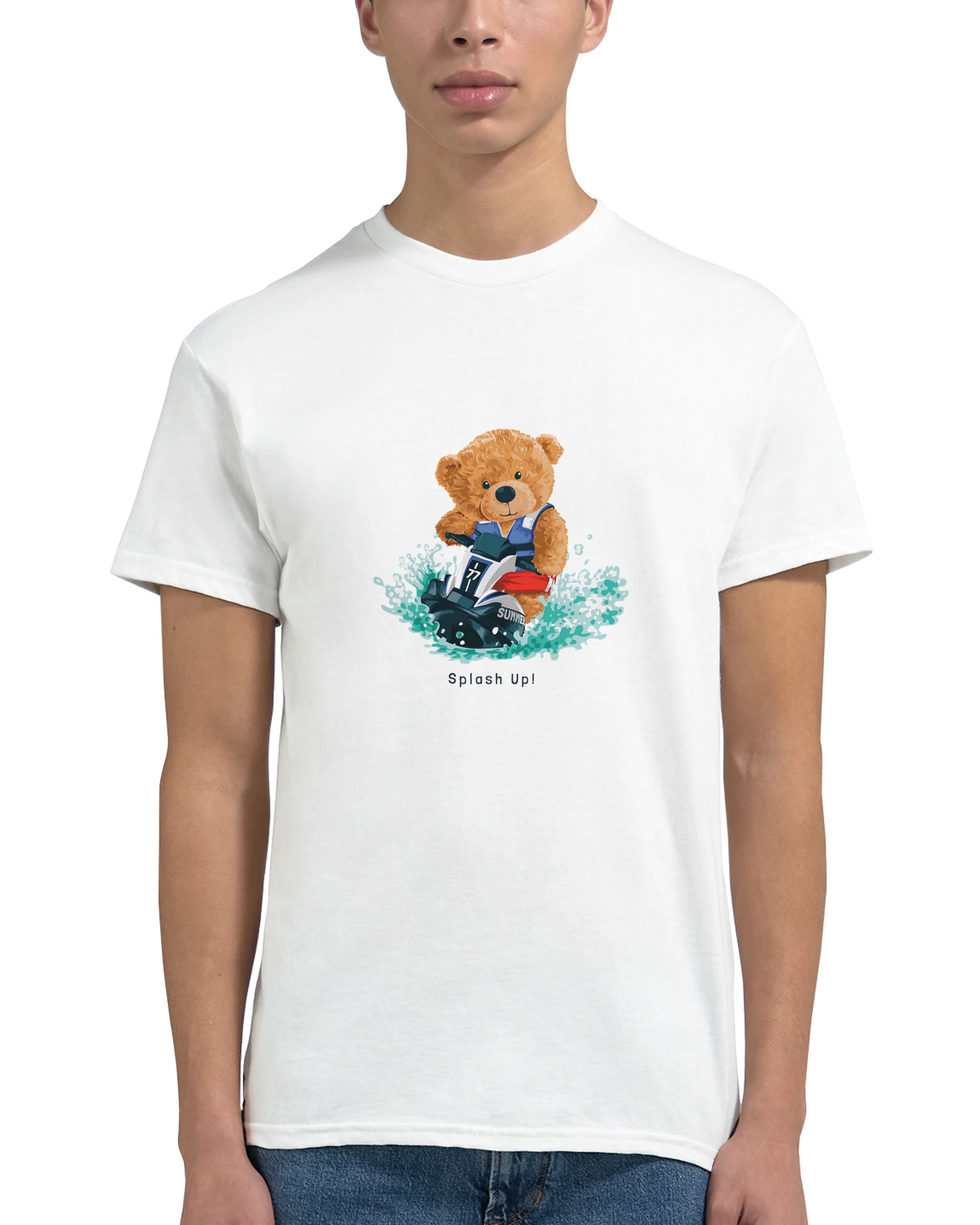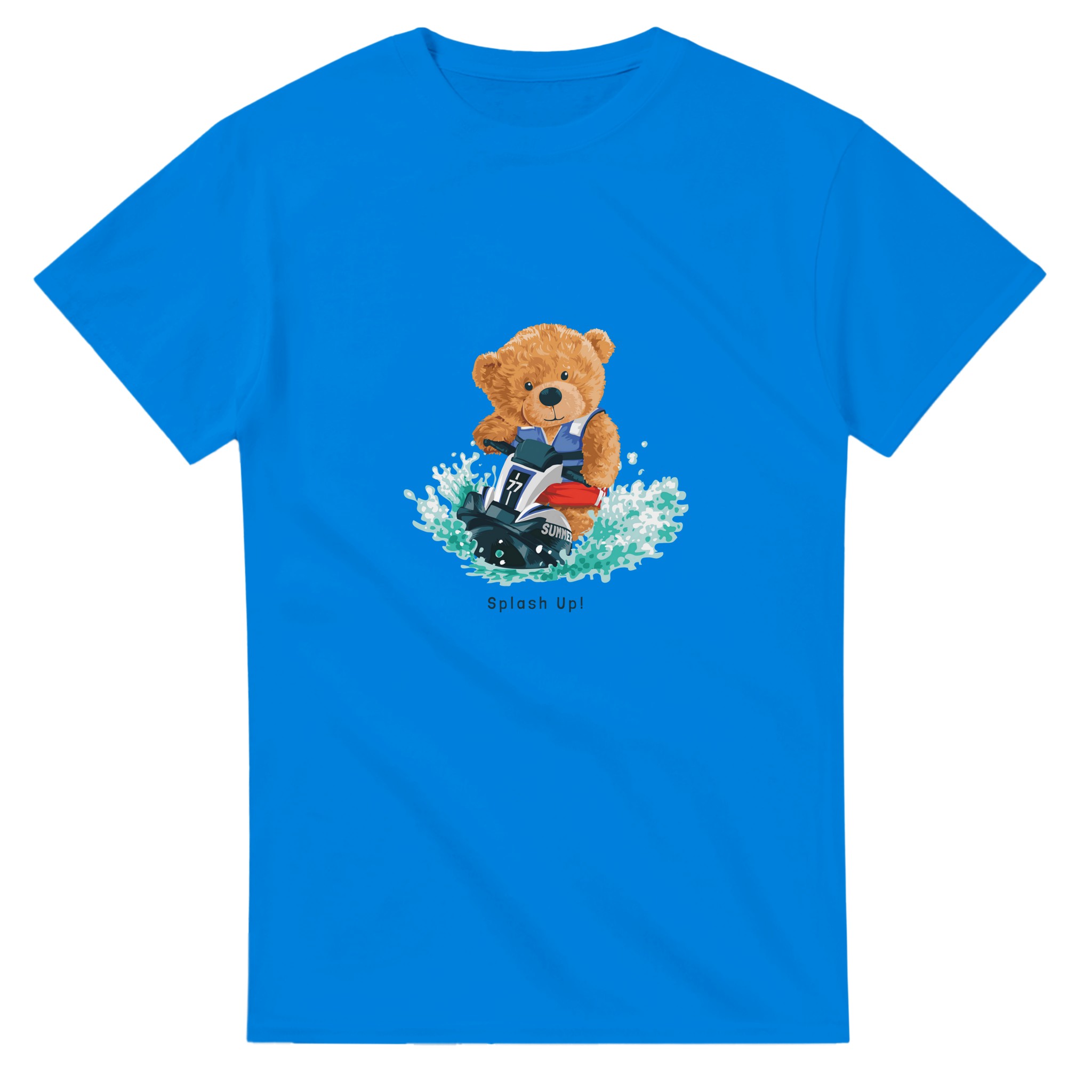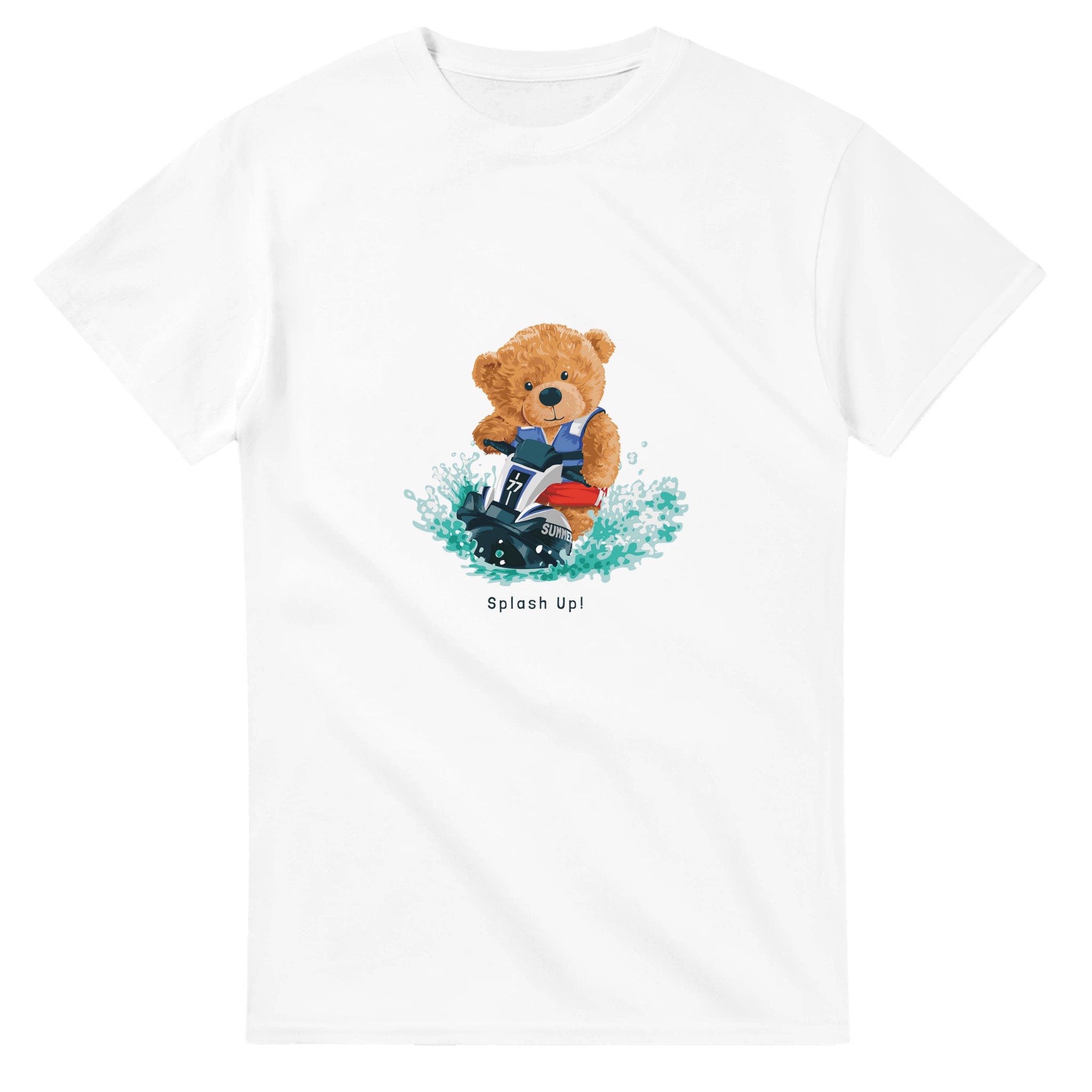 Klassisk Bomulls-T-shirt – Teddybjörn på Jetski “Splash Up!” Design för Sommar & Vardagsstil