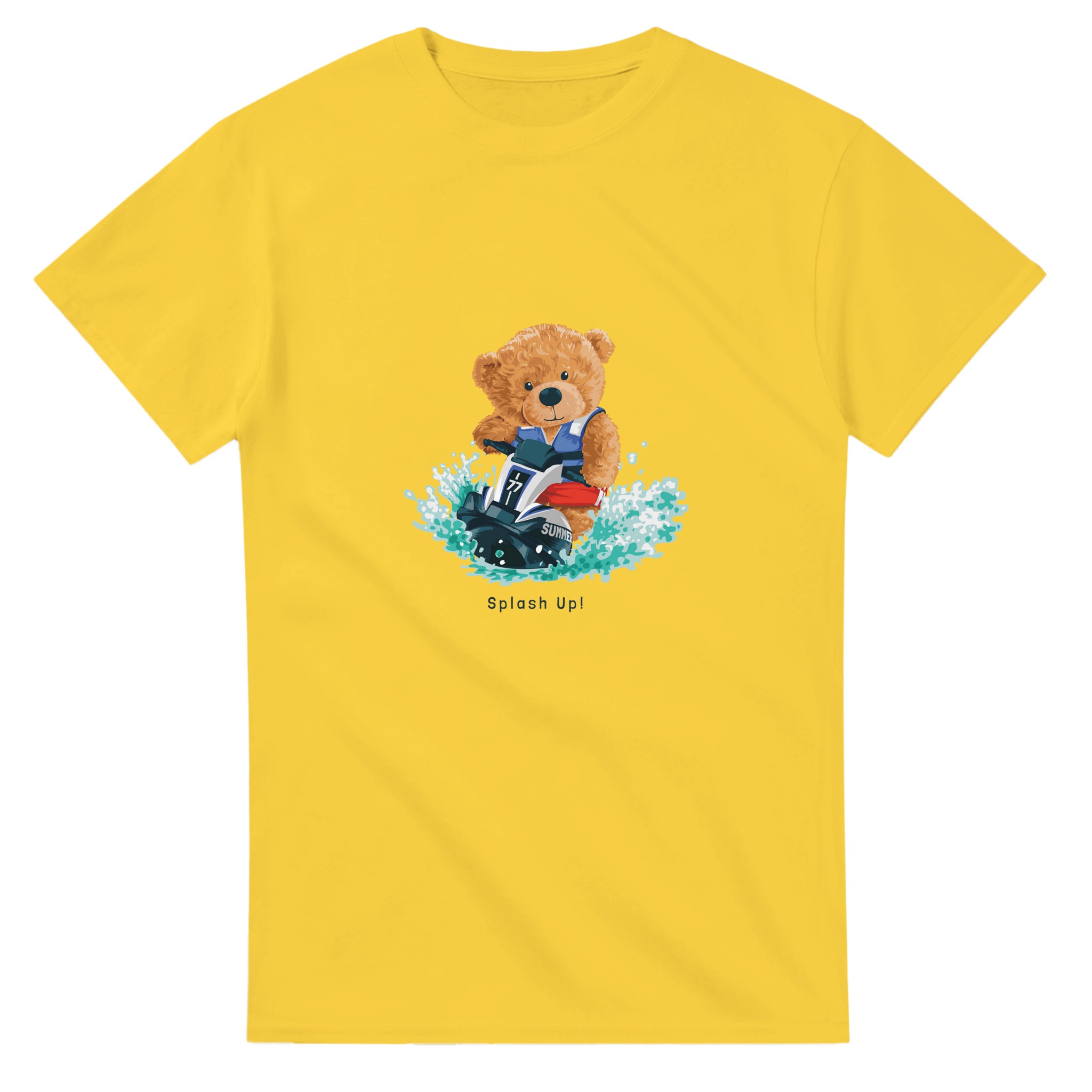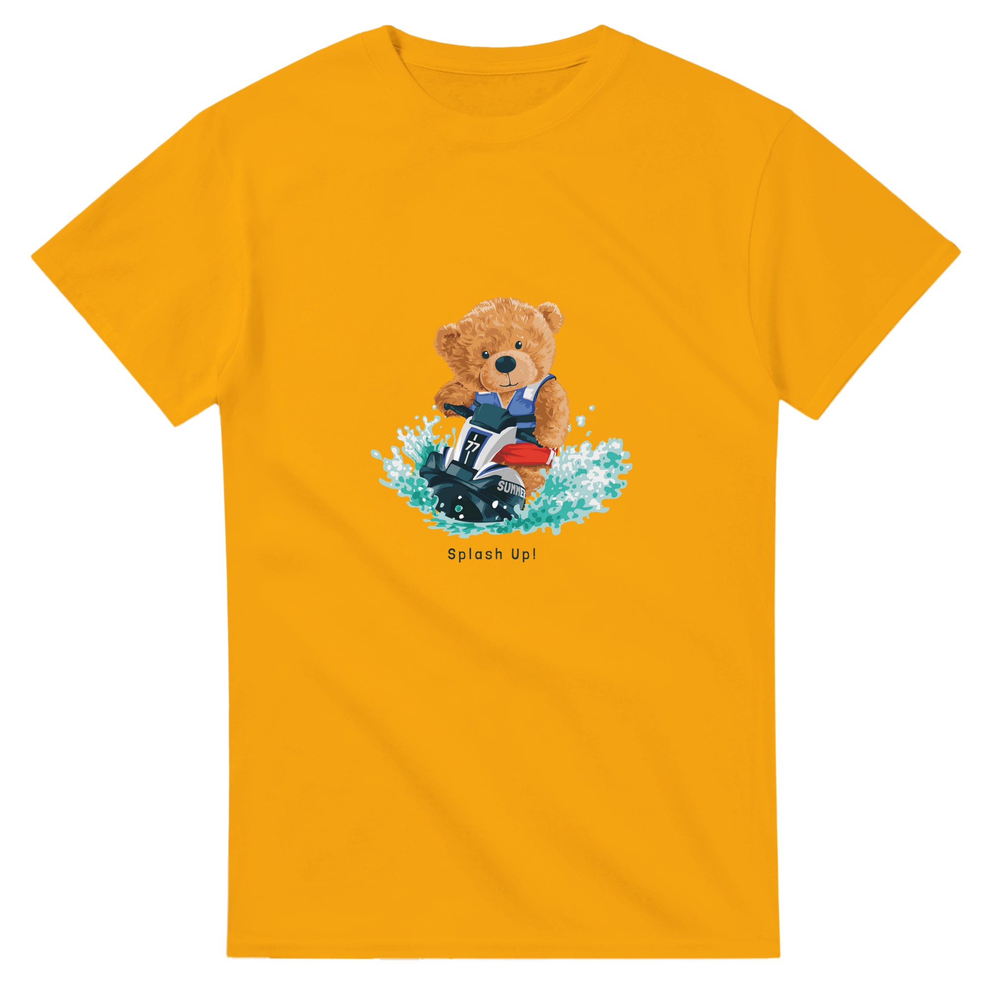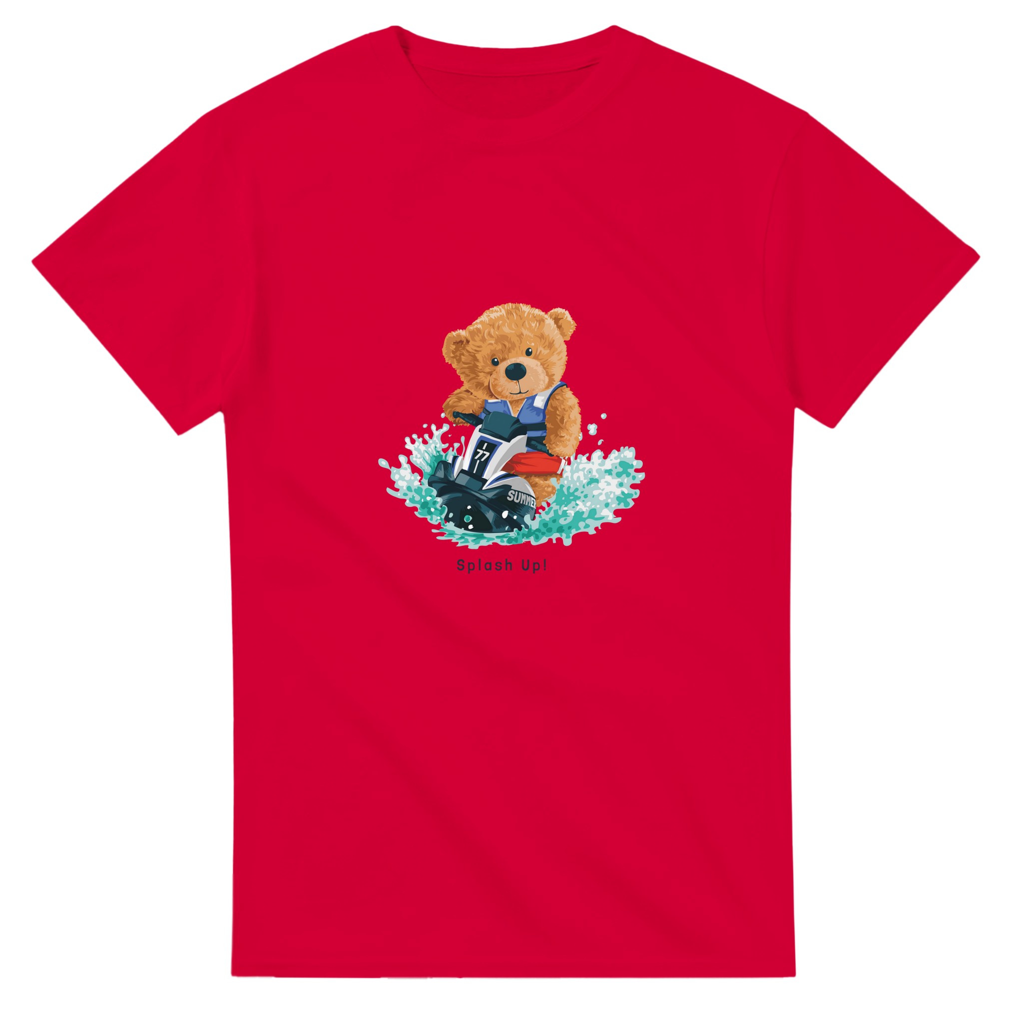 Klassisk Bomulls-T-shirt – Teddybjörn på Jetski “Splash Up!” Design för Sommar & Vardagsstil