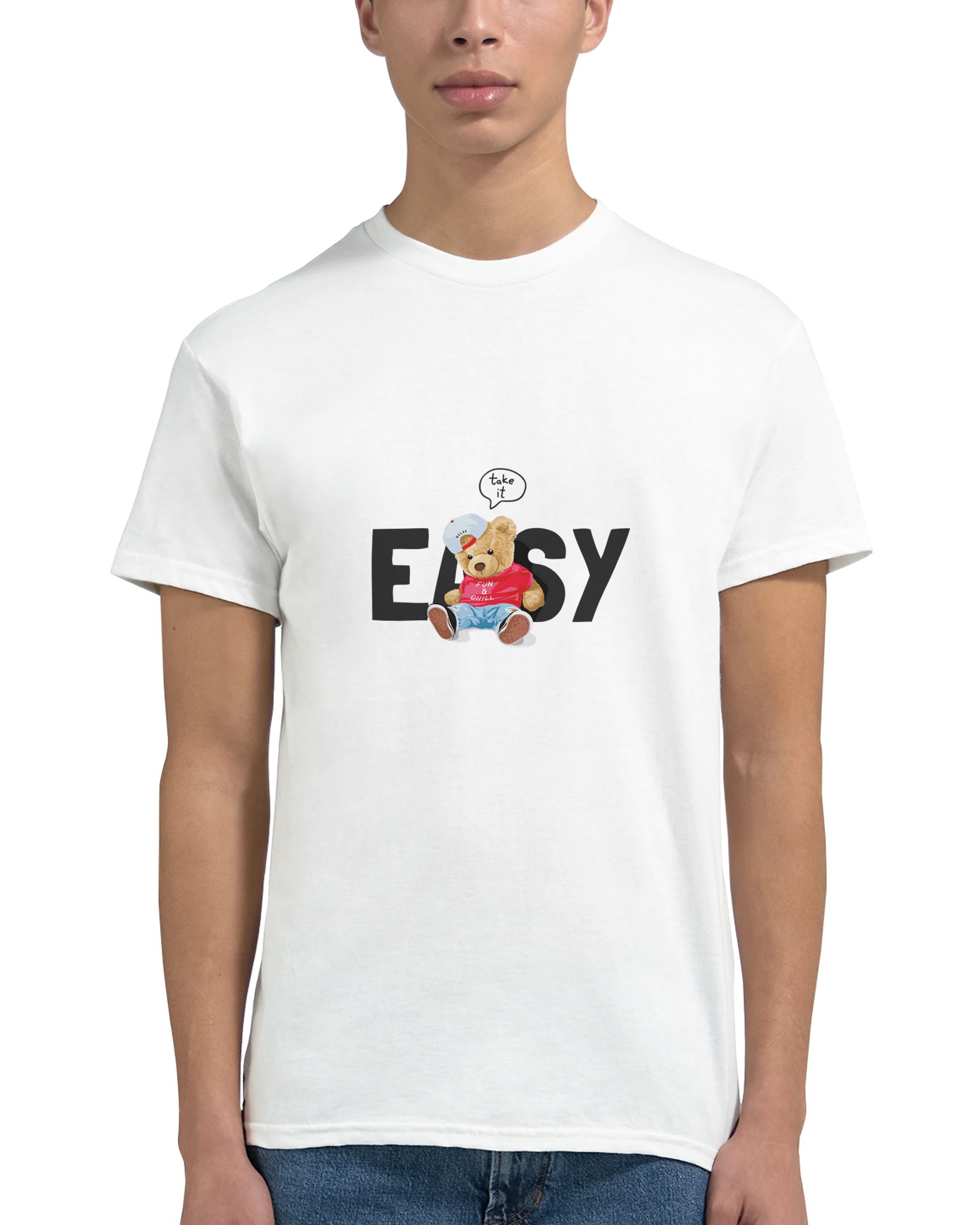 Chillin’ Bear – ‘Take It Easy’ Klassisk Bomulls-T-shirt för en Avslappnad Stil