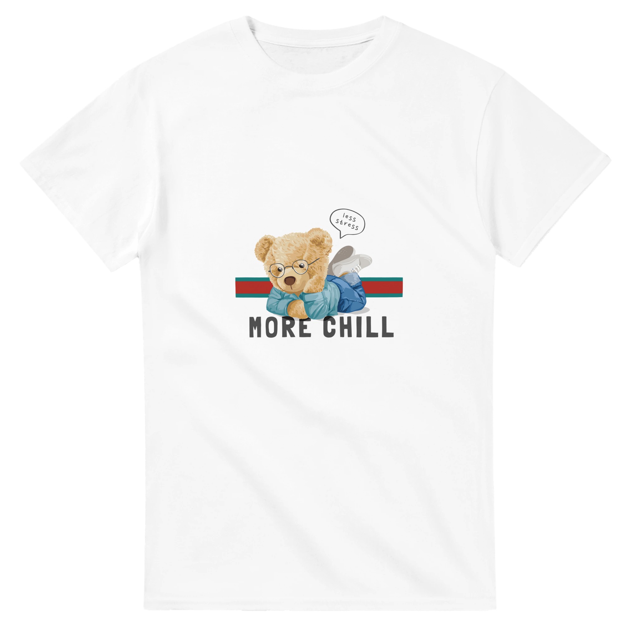 Chillin’ Teddy T-shirt – Less Stress, More Chill – Unisex bomulls t-shirt för alla avslappnade tillfällen