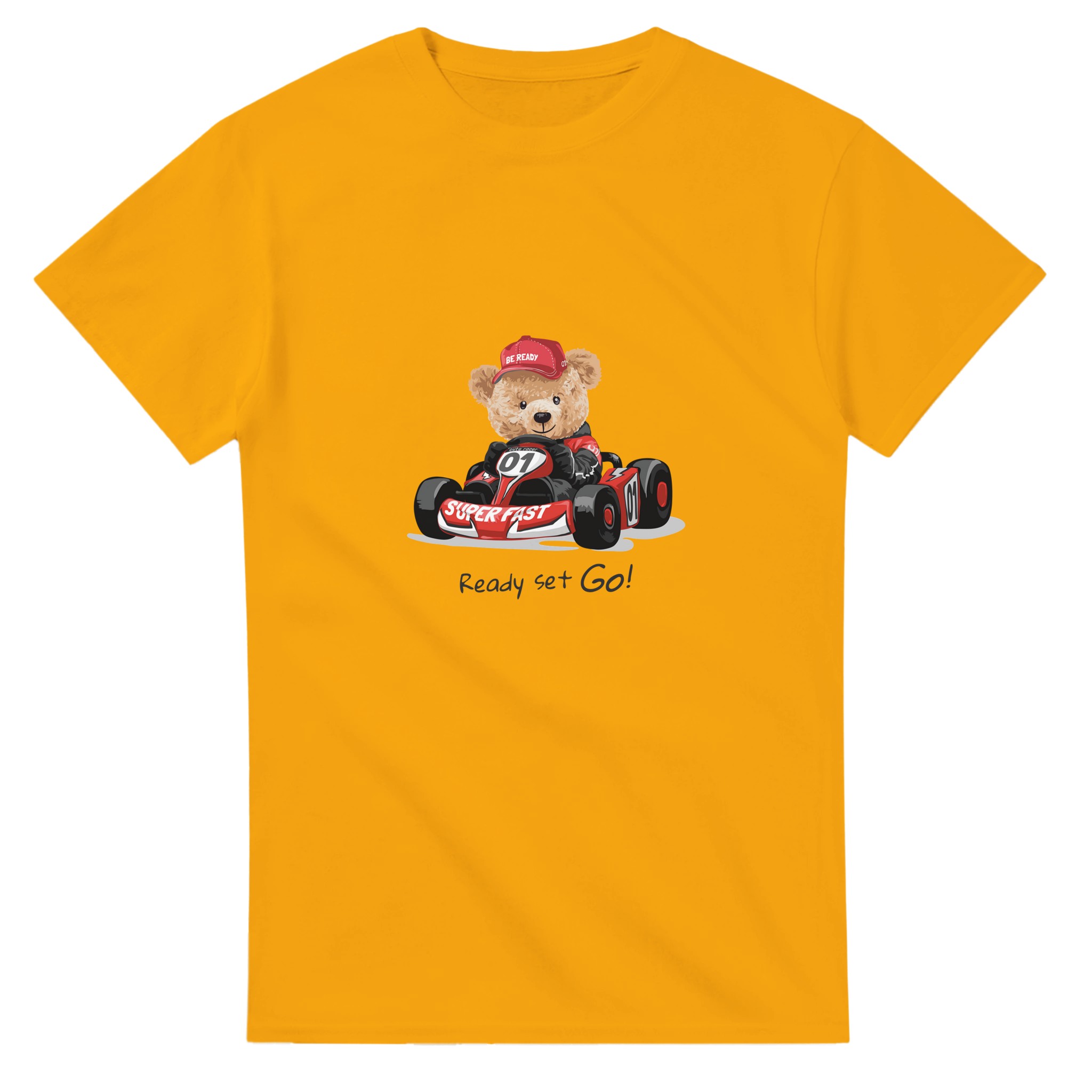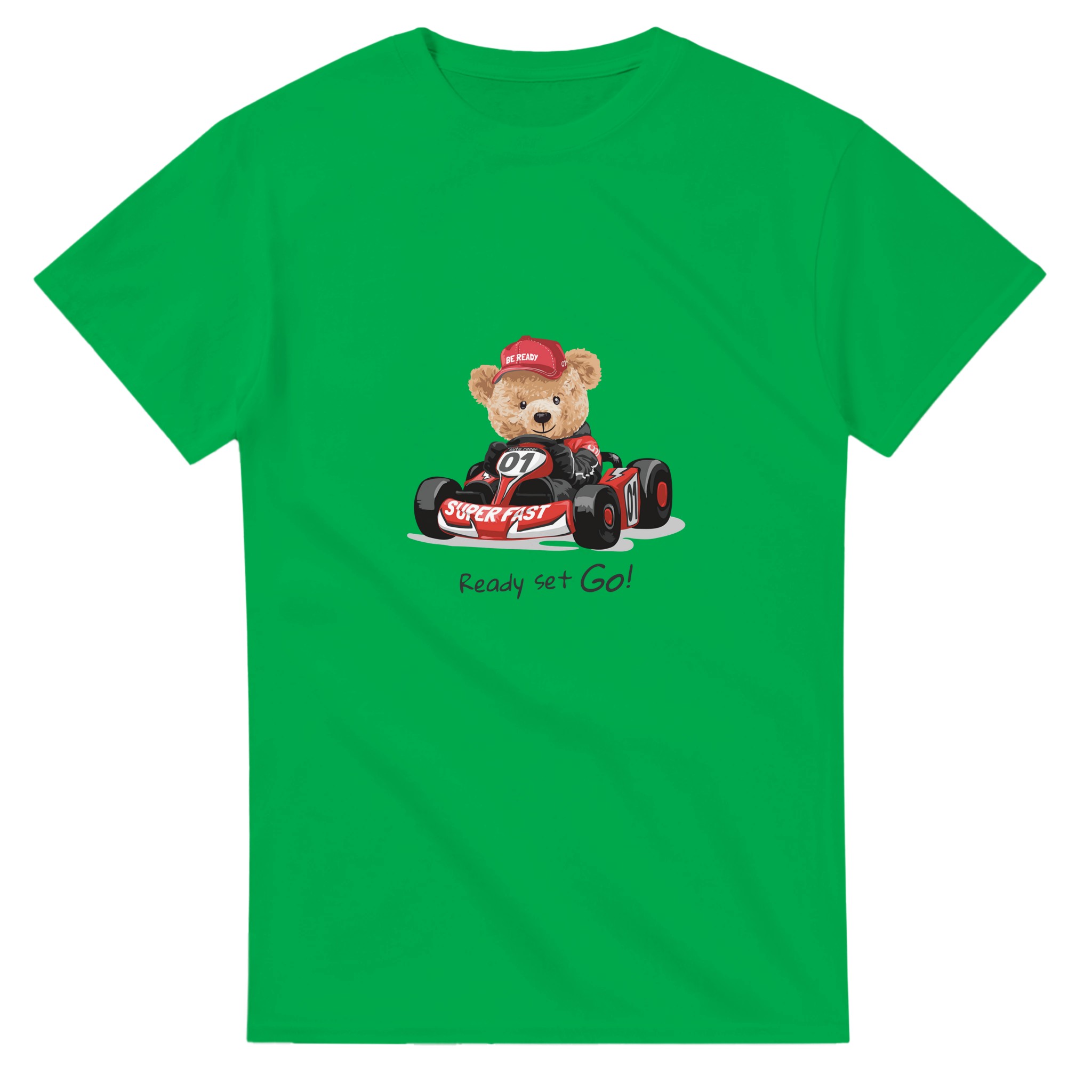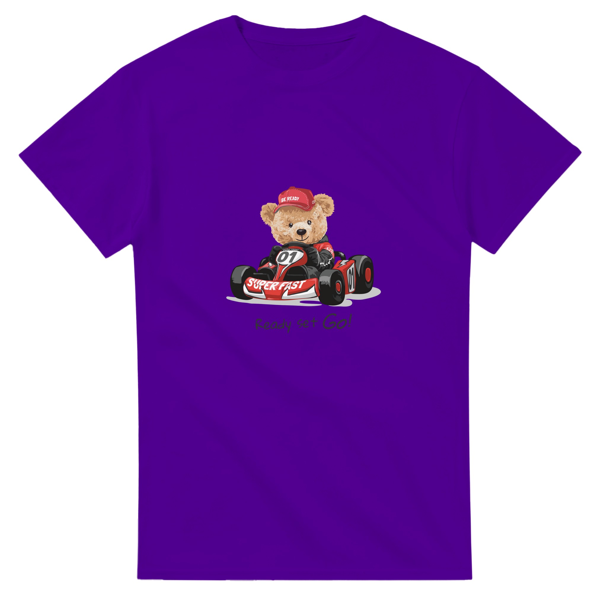 Super Fast Racer Teddy – Klassisk Bomulls-T-shirt för Barn & Vuxna i Valfri Färg och Storlek
