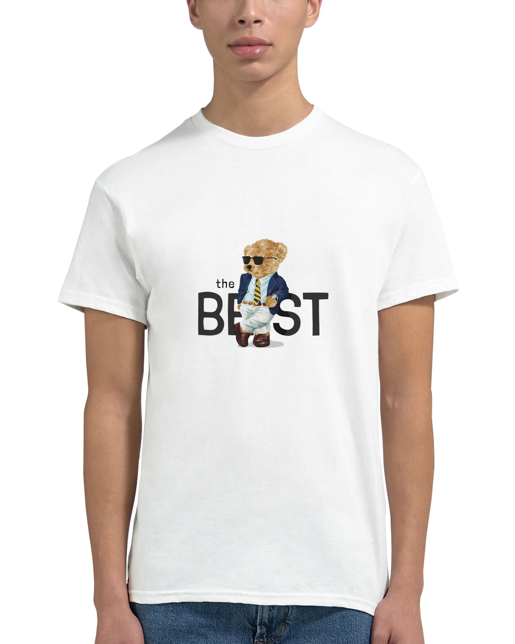 Klassisk Bomulls-T-shirt med Stilfull Teddybjörn – Tålig, Unisex Design för Vardags och Tryck