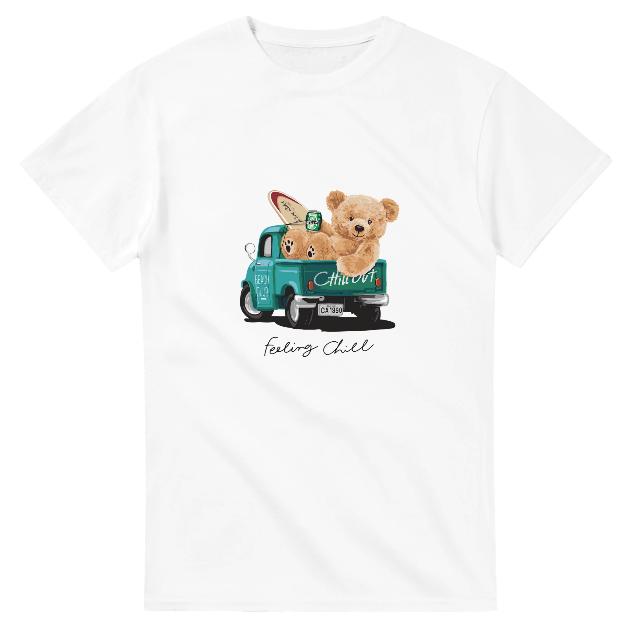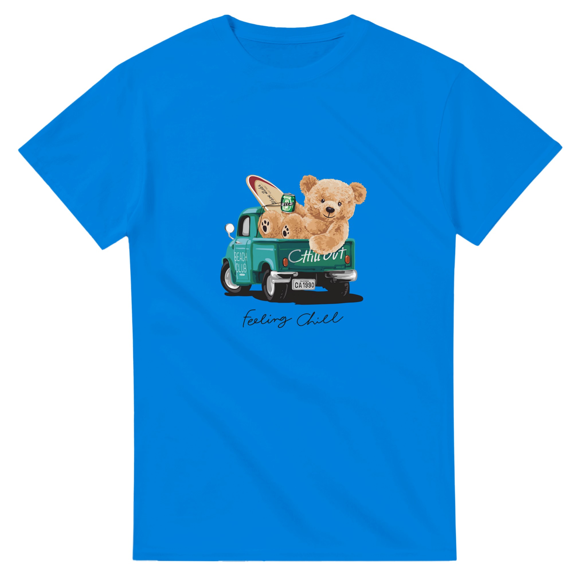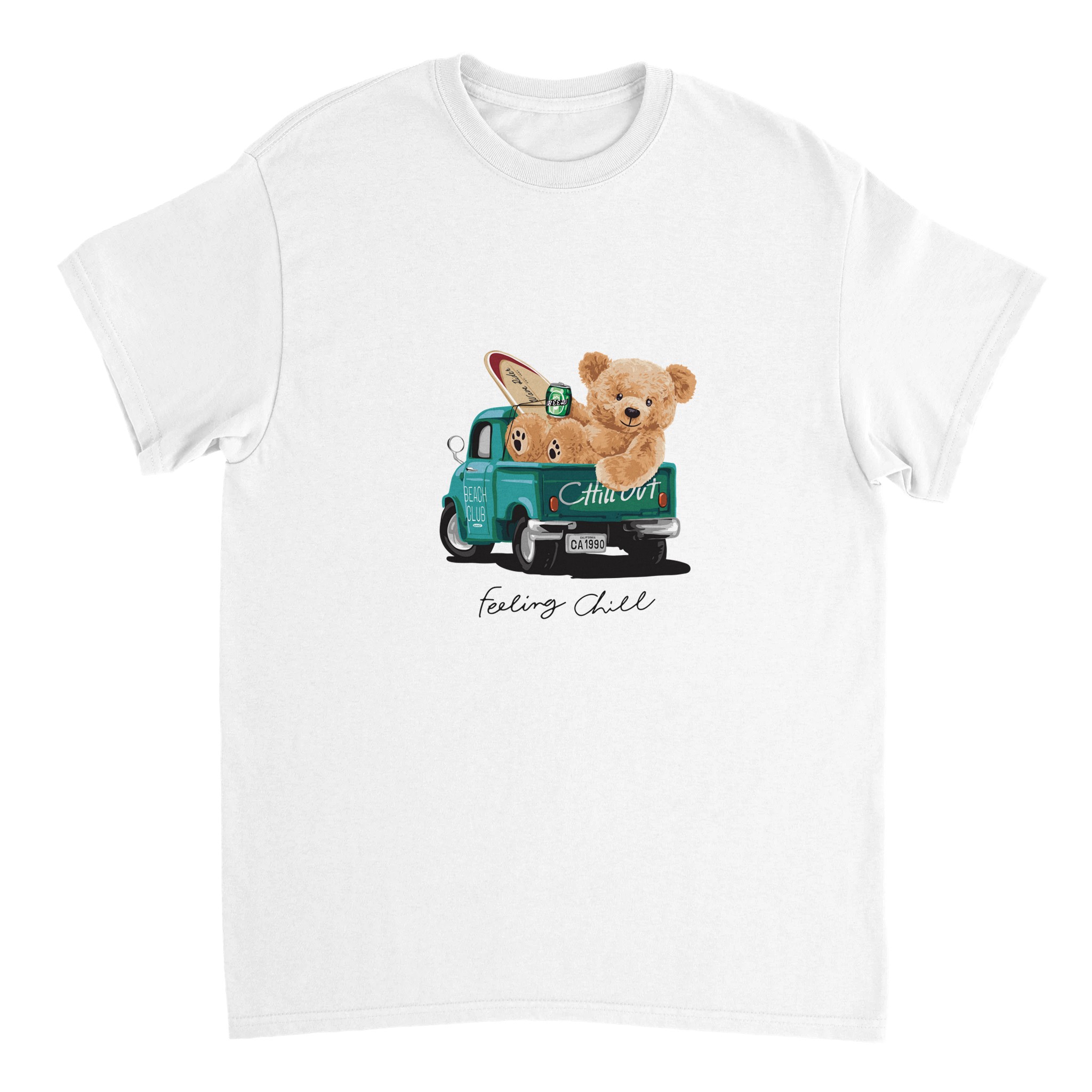 Chill Out Teddy – Klassisk Bomulls-T-shirt med Surf & Strandvibe – Perfekt för En Avslappnad Stil