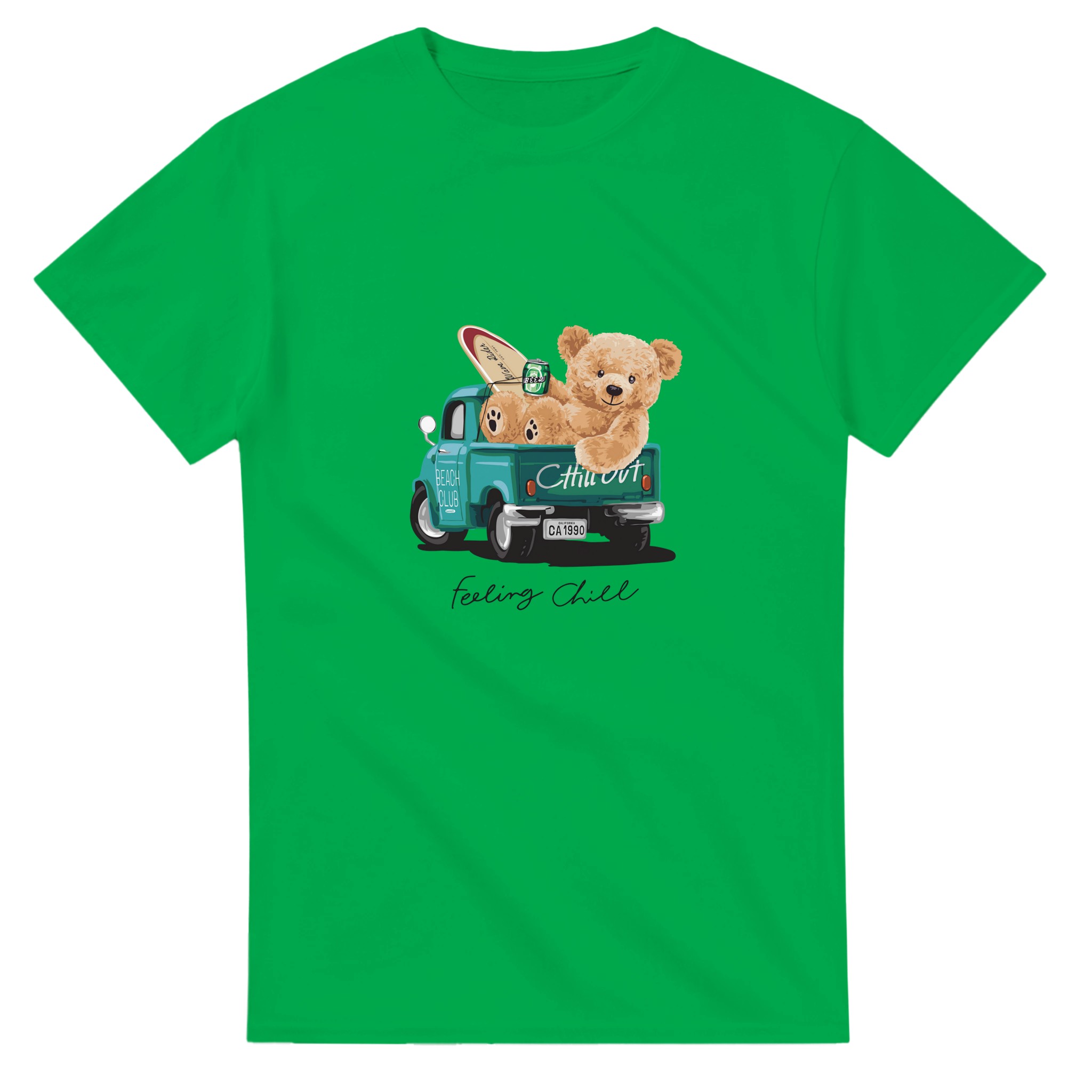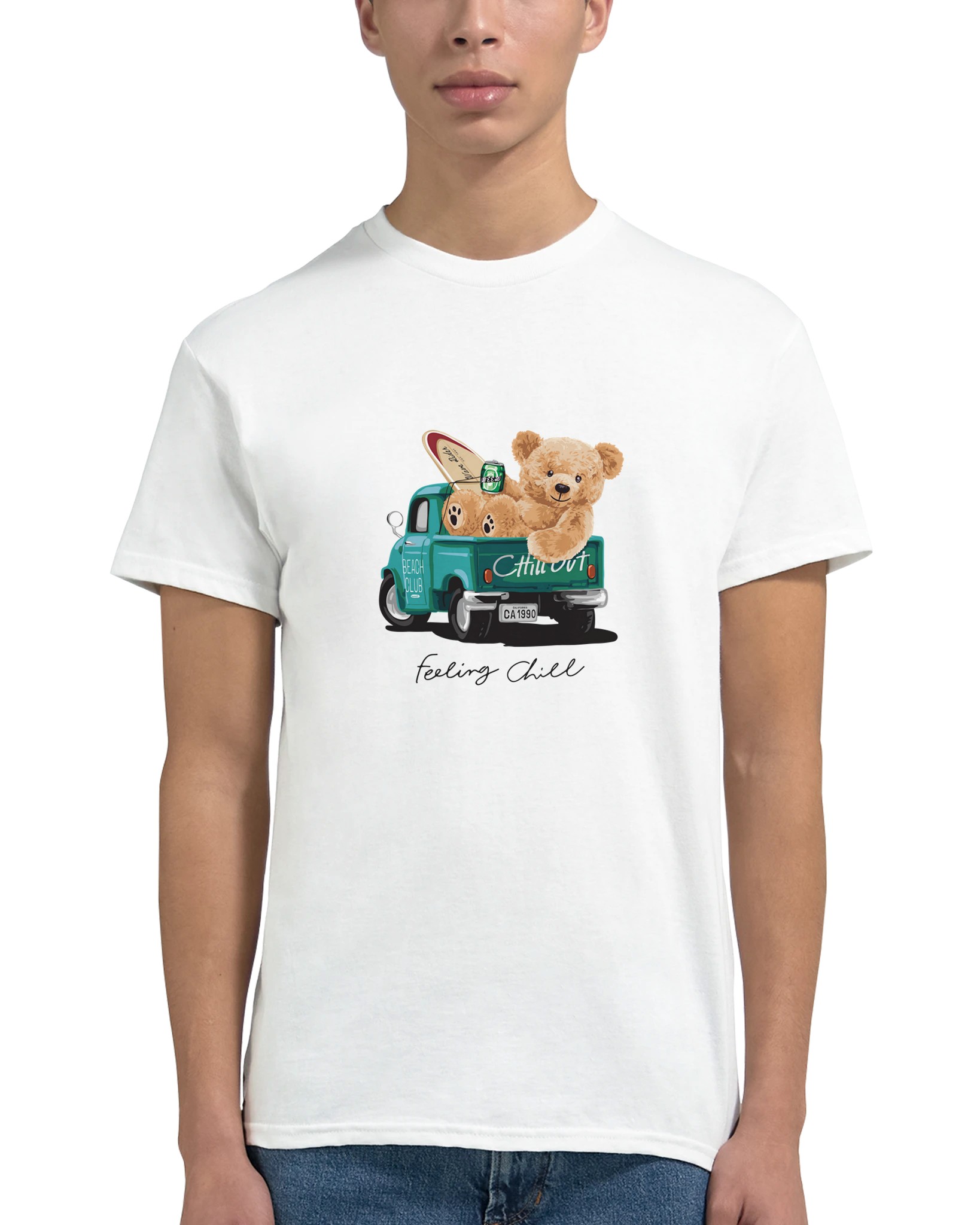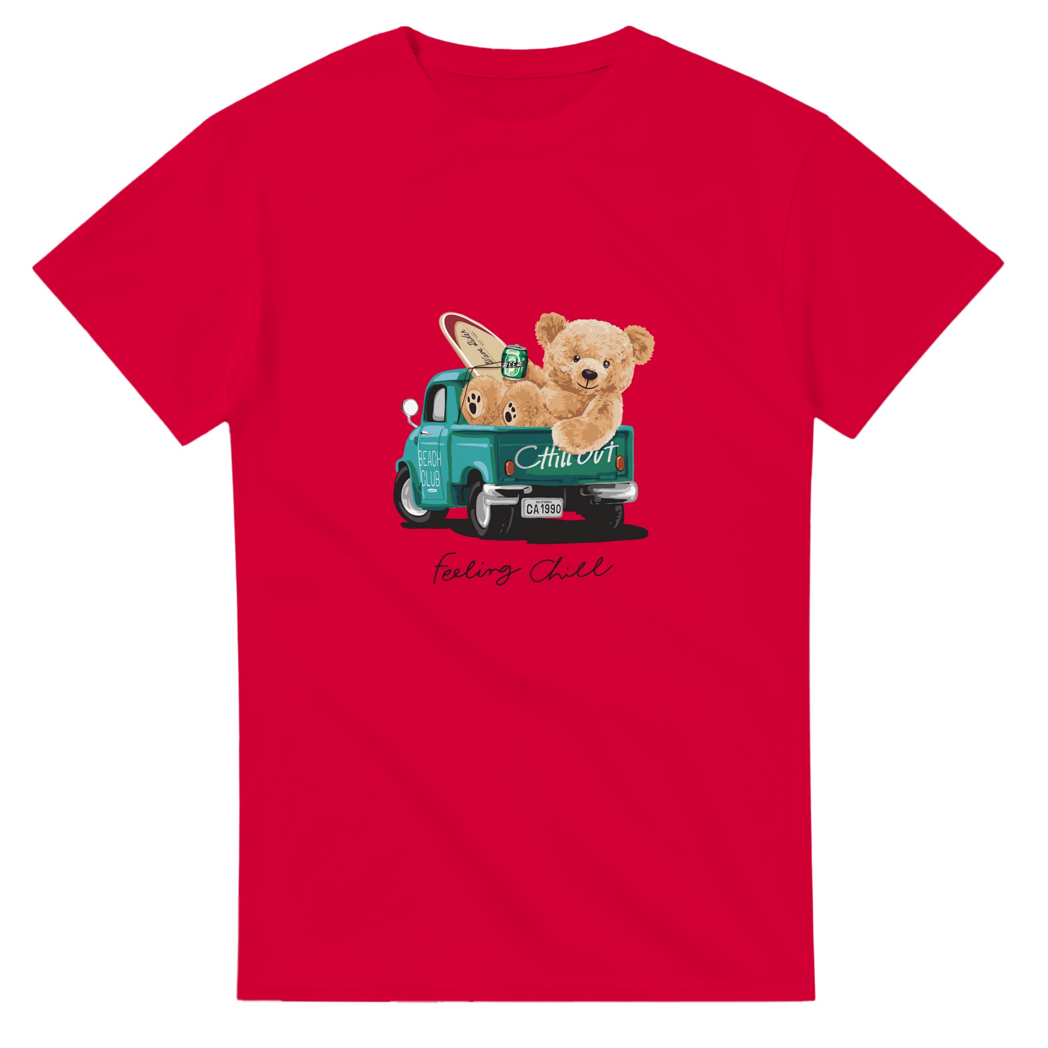 Chill Out Teddy – Klassisk Bomulls-T-shirt med Surf & Strandvibe – Perfekt för En Avslappnad Stil