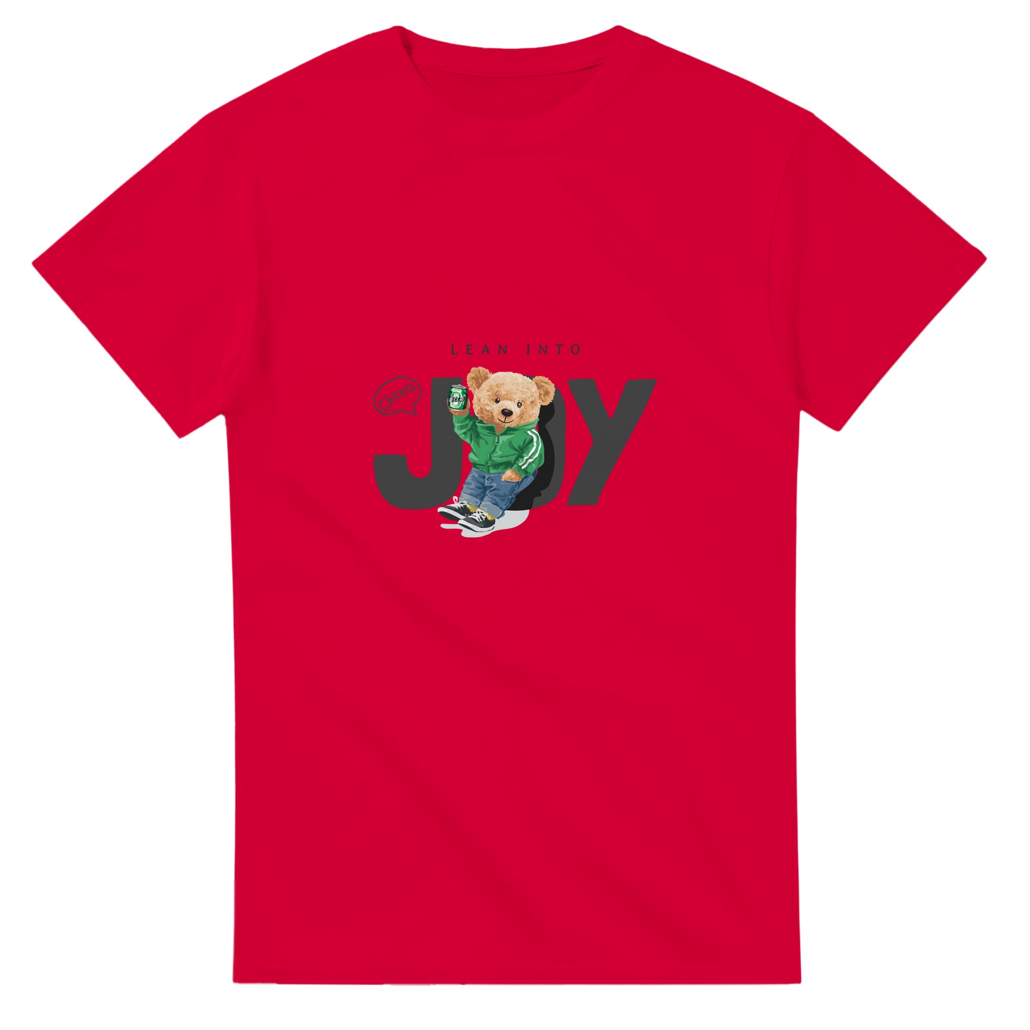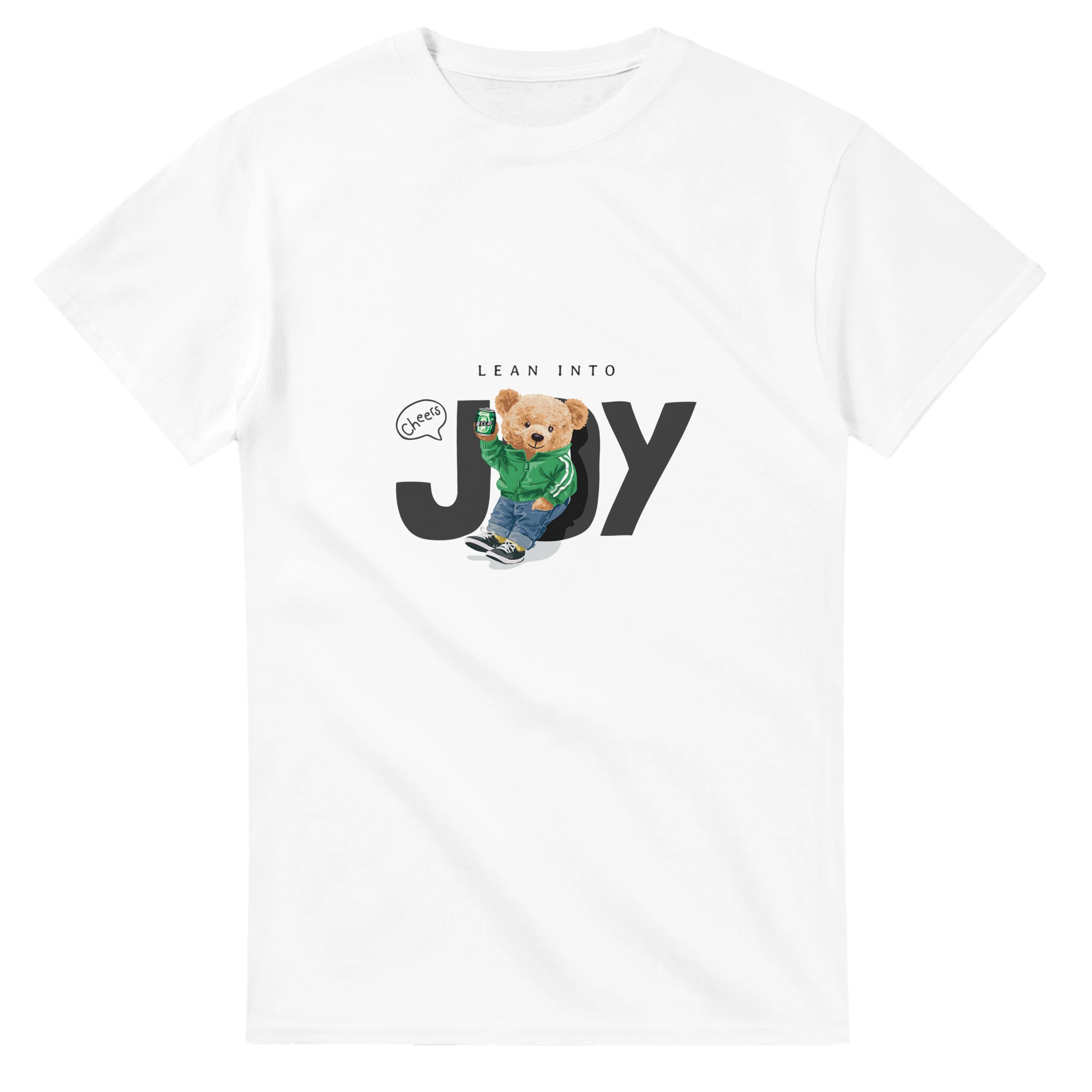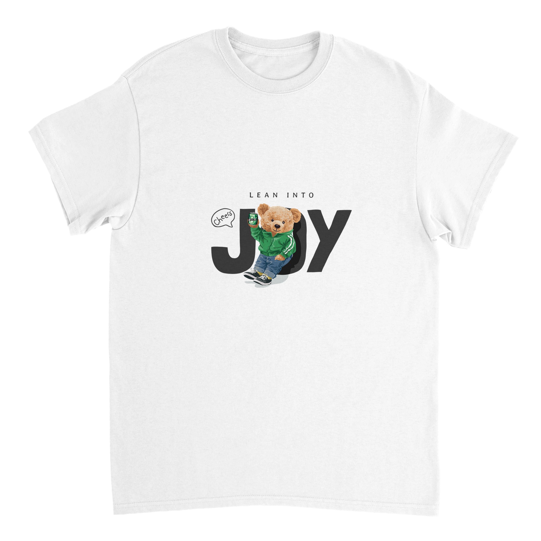 Lean Into Joy – Skönt Ledig T-shirt med Charmig Nallebjörn, Perfekt för Livsnjutare