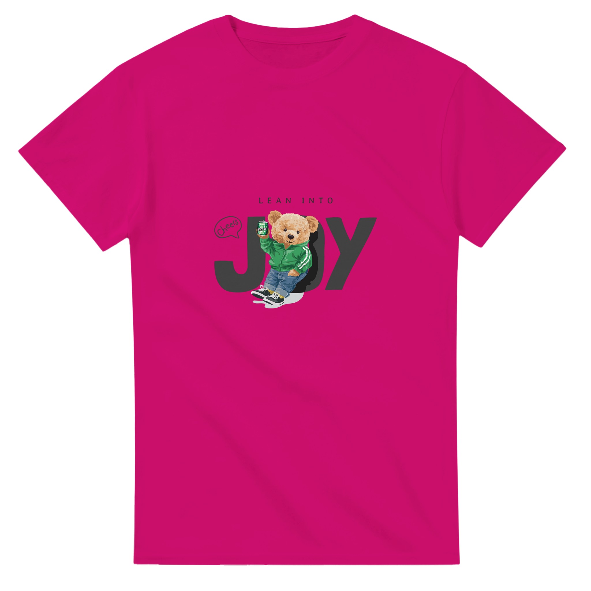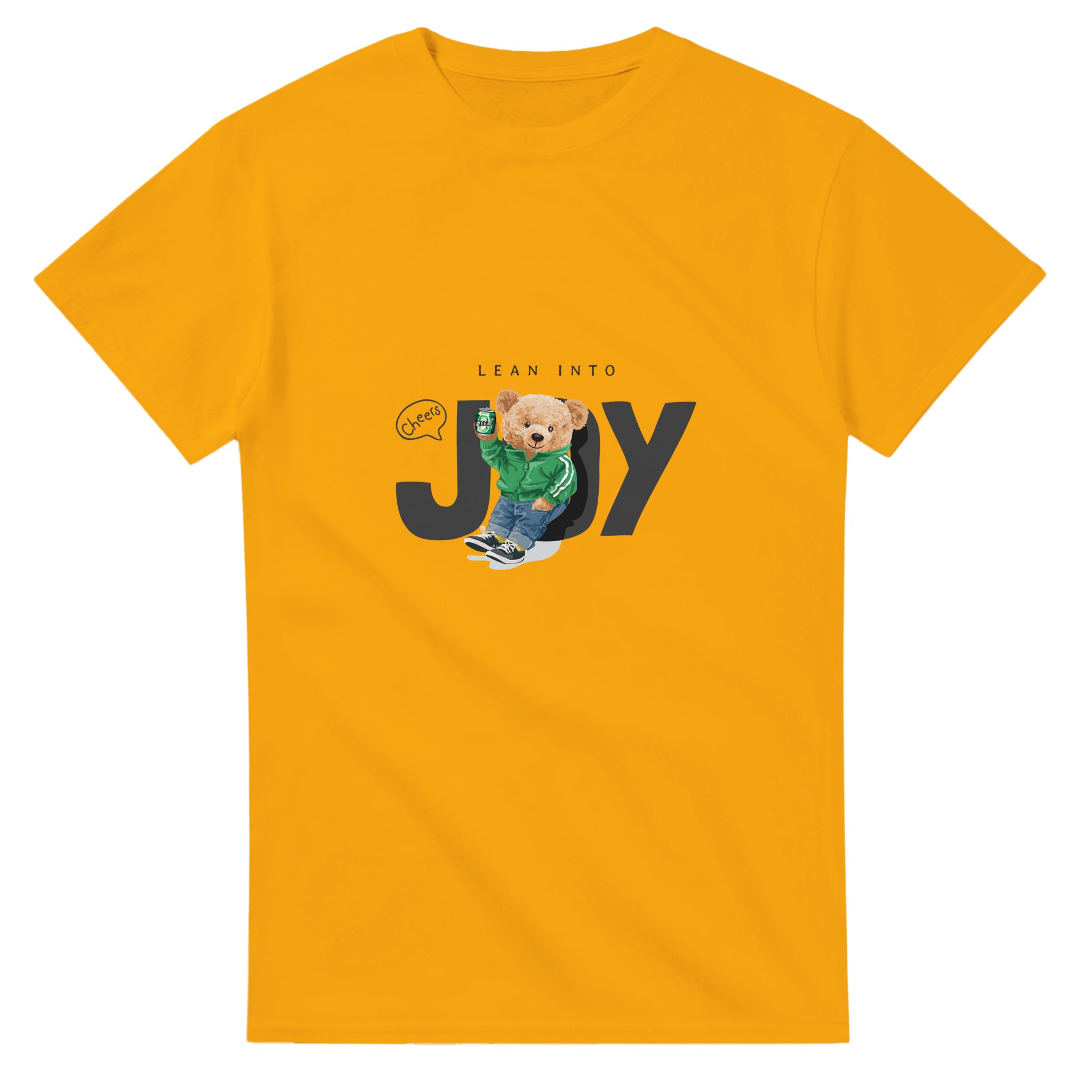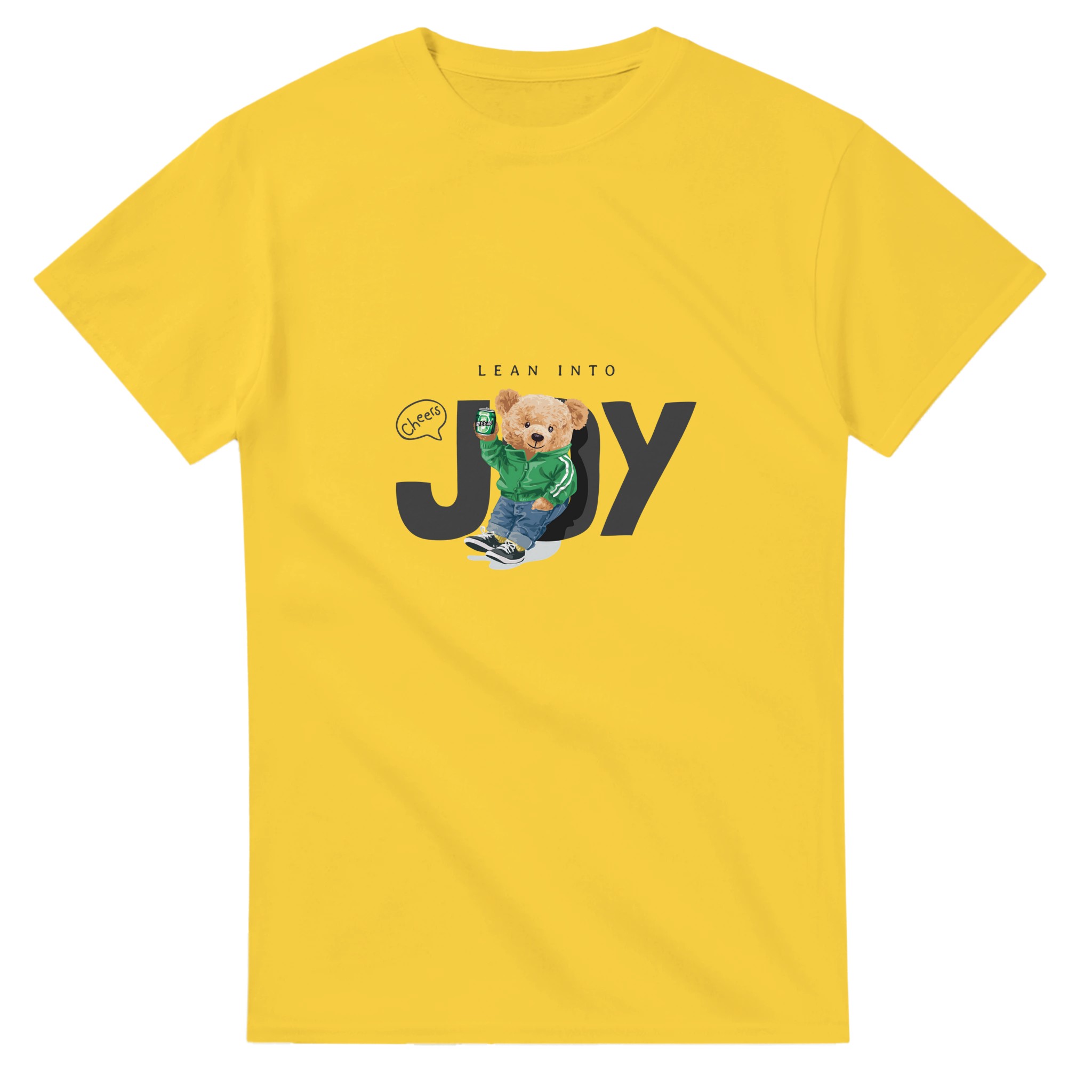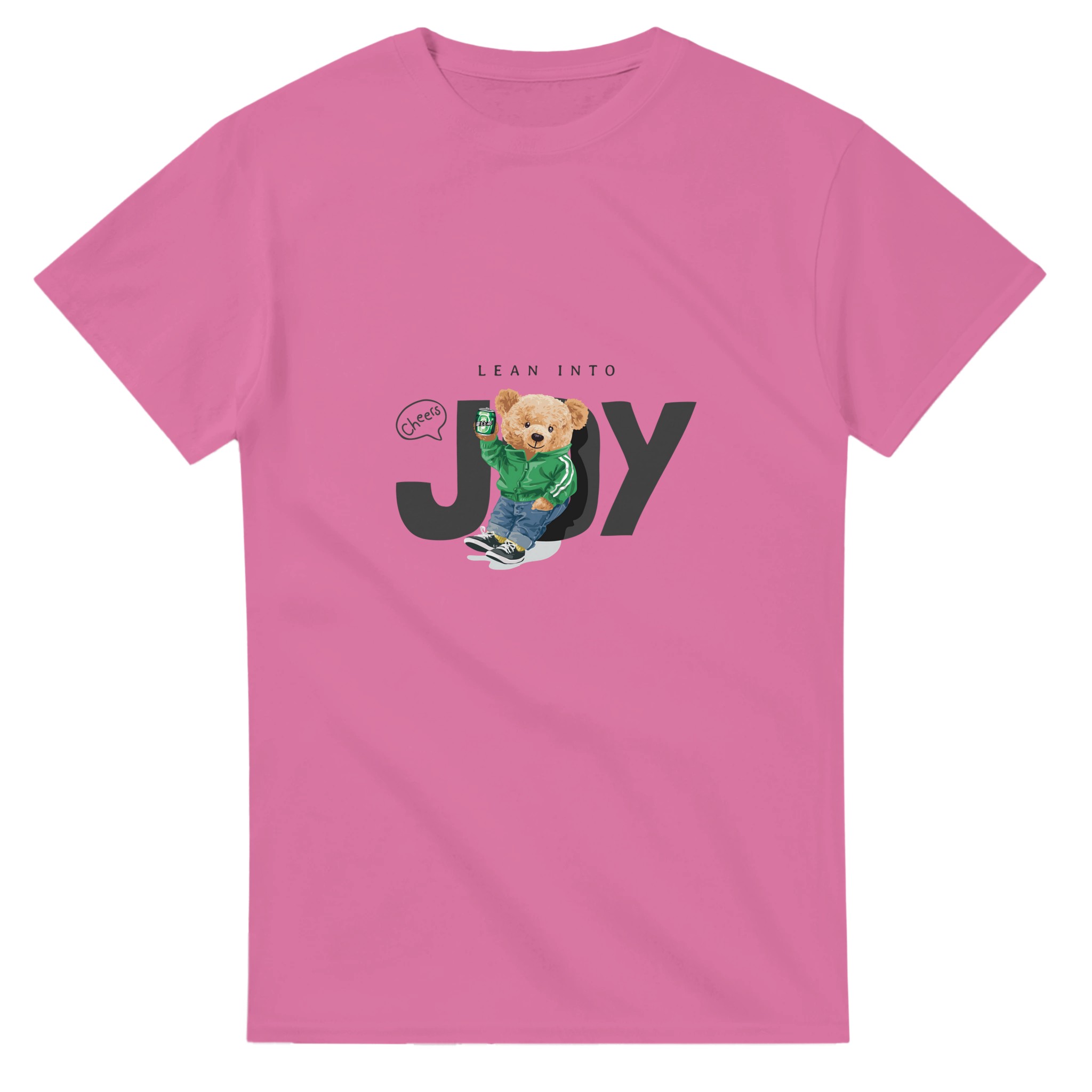 Lean Into Joy – Skönt Ledig T-shirt med Charmig Nallebjörn, Perfekt för Livsnjutare
