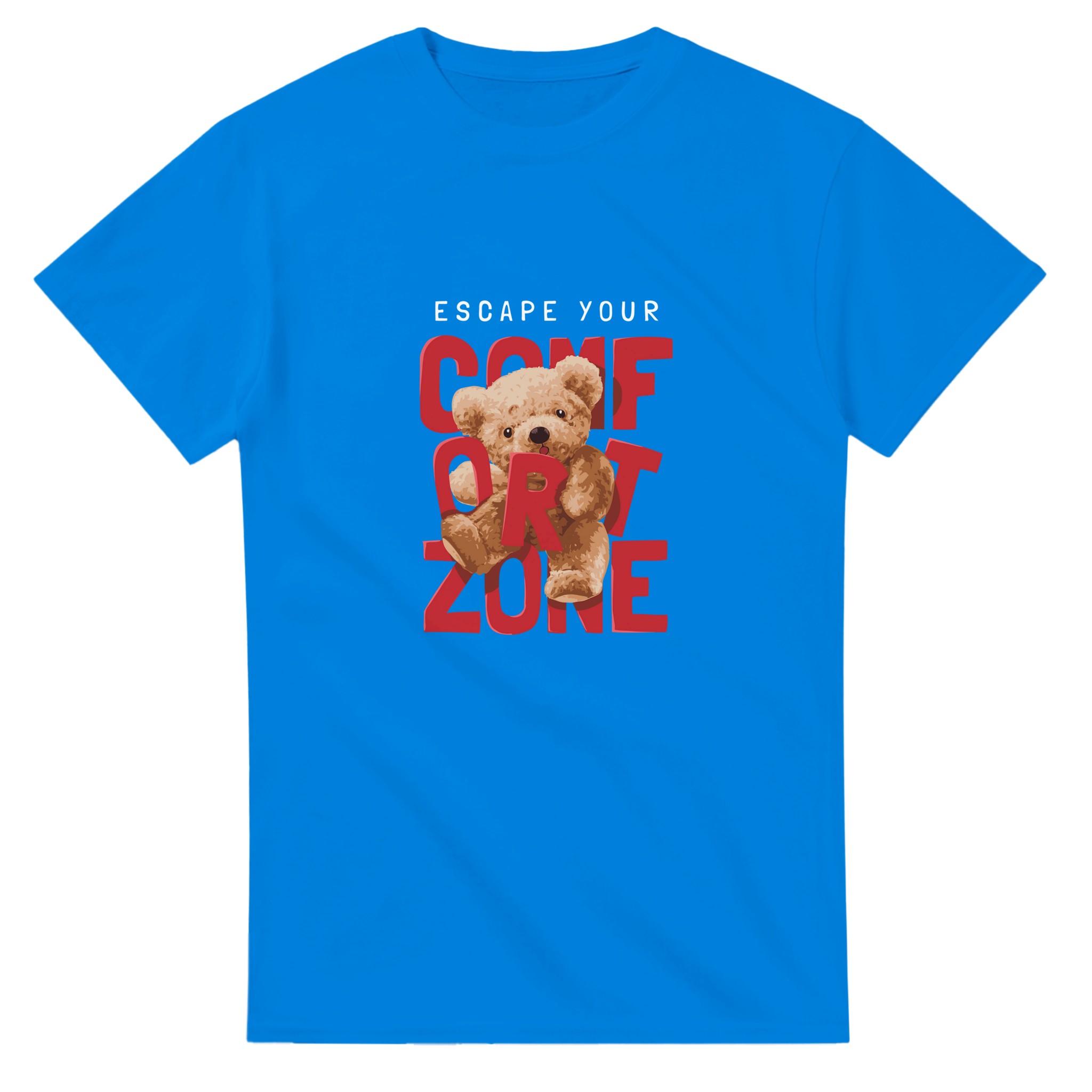 Escape Your Comfort Zone T-shirt – Mysig Nallebjörn Tryck, Unisex Komfort & Stil i Dina Favoritfärger