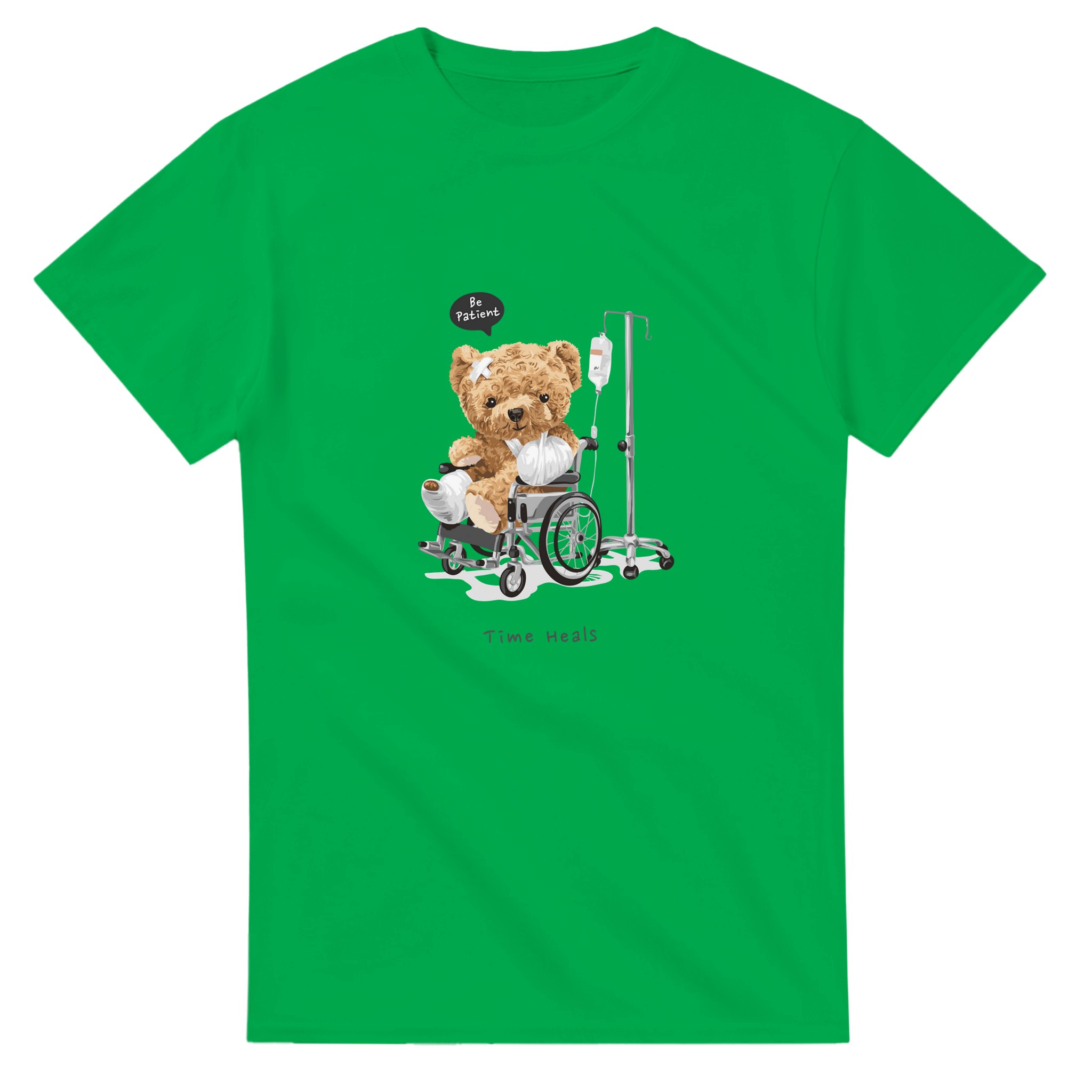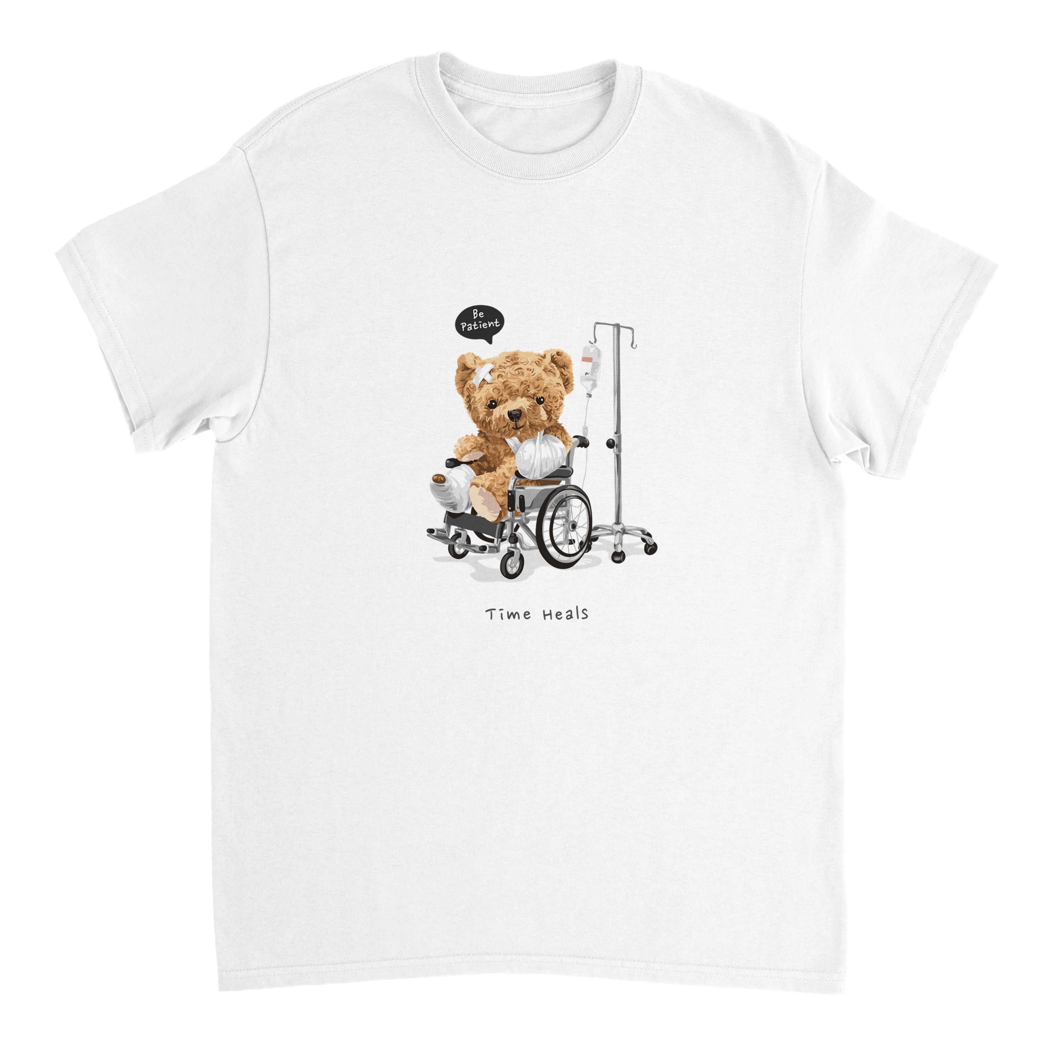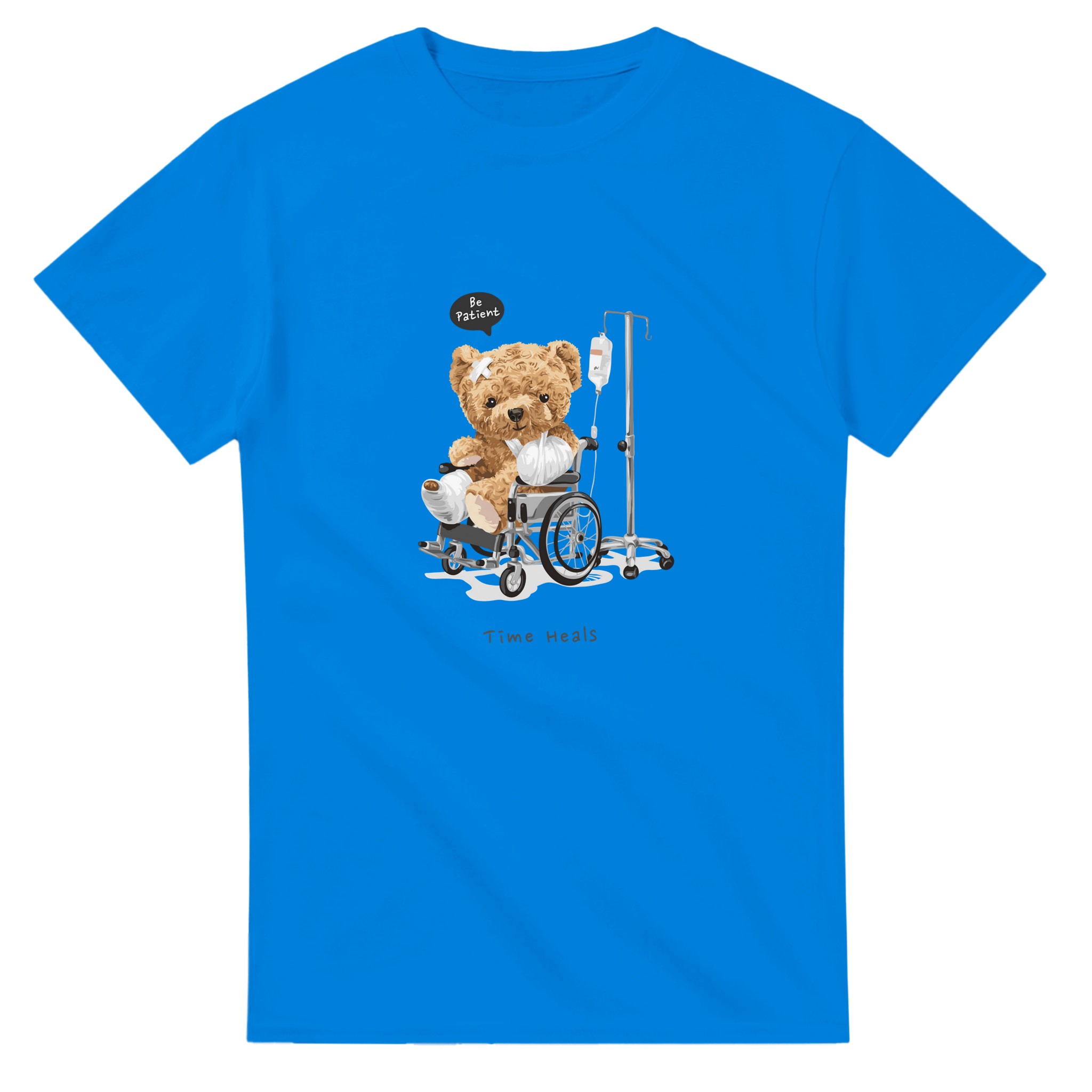 Tålig Bomulls-T-shirt – ‘Be Patient Time Heals’ Teddybjörn Design i Ditt Val av Färg och Storlek