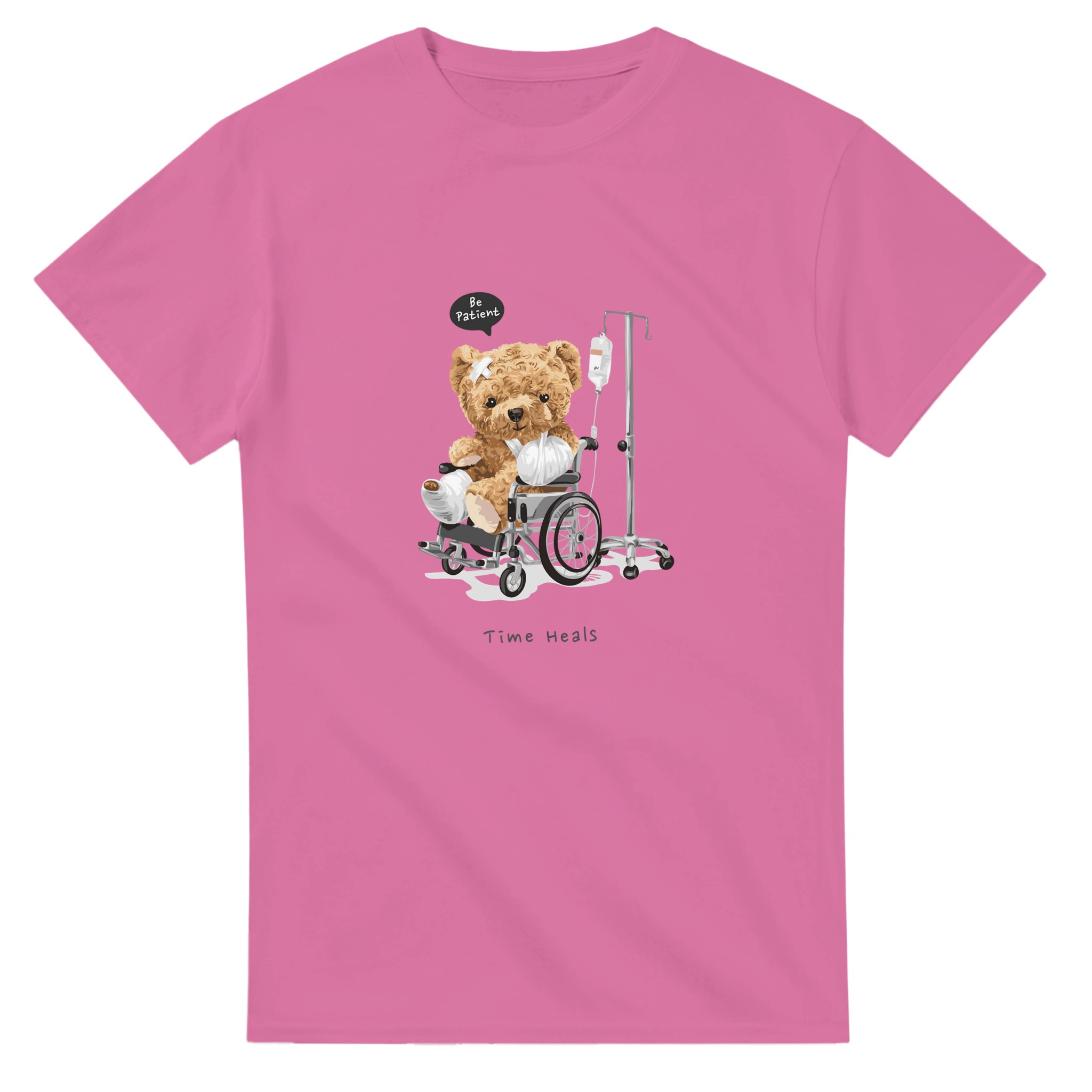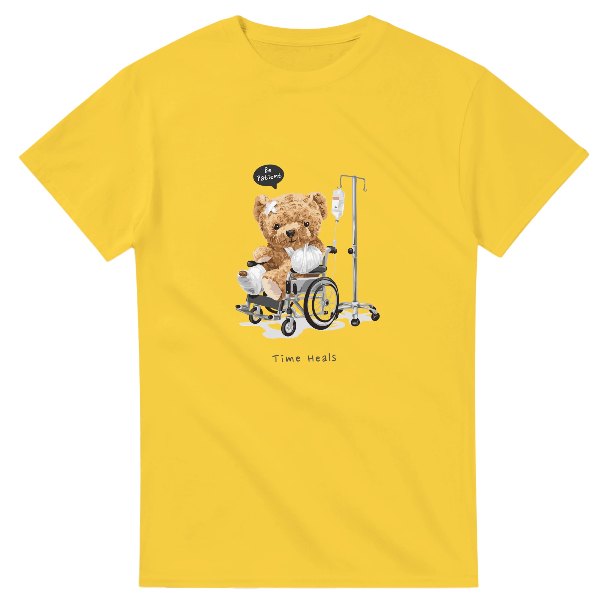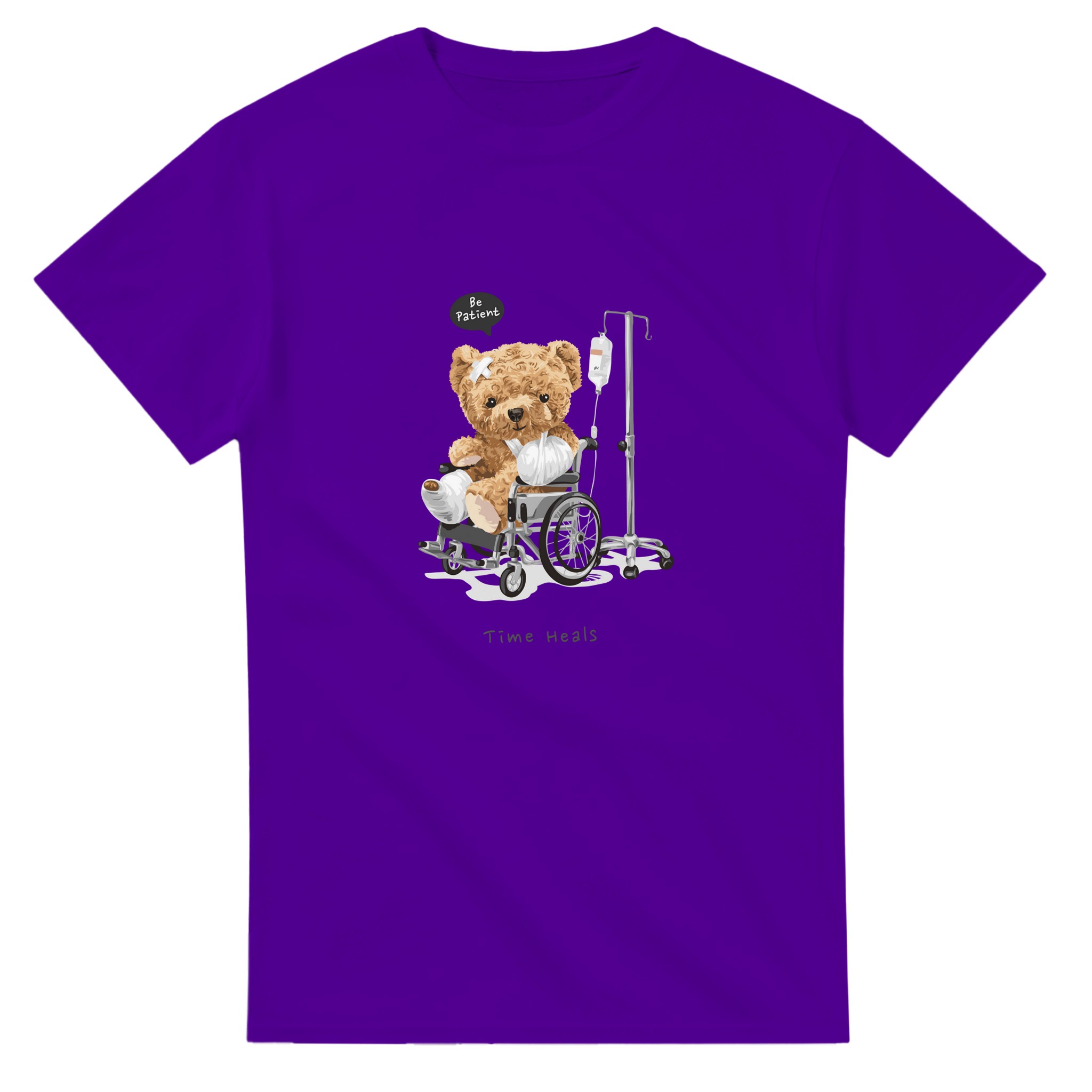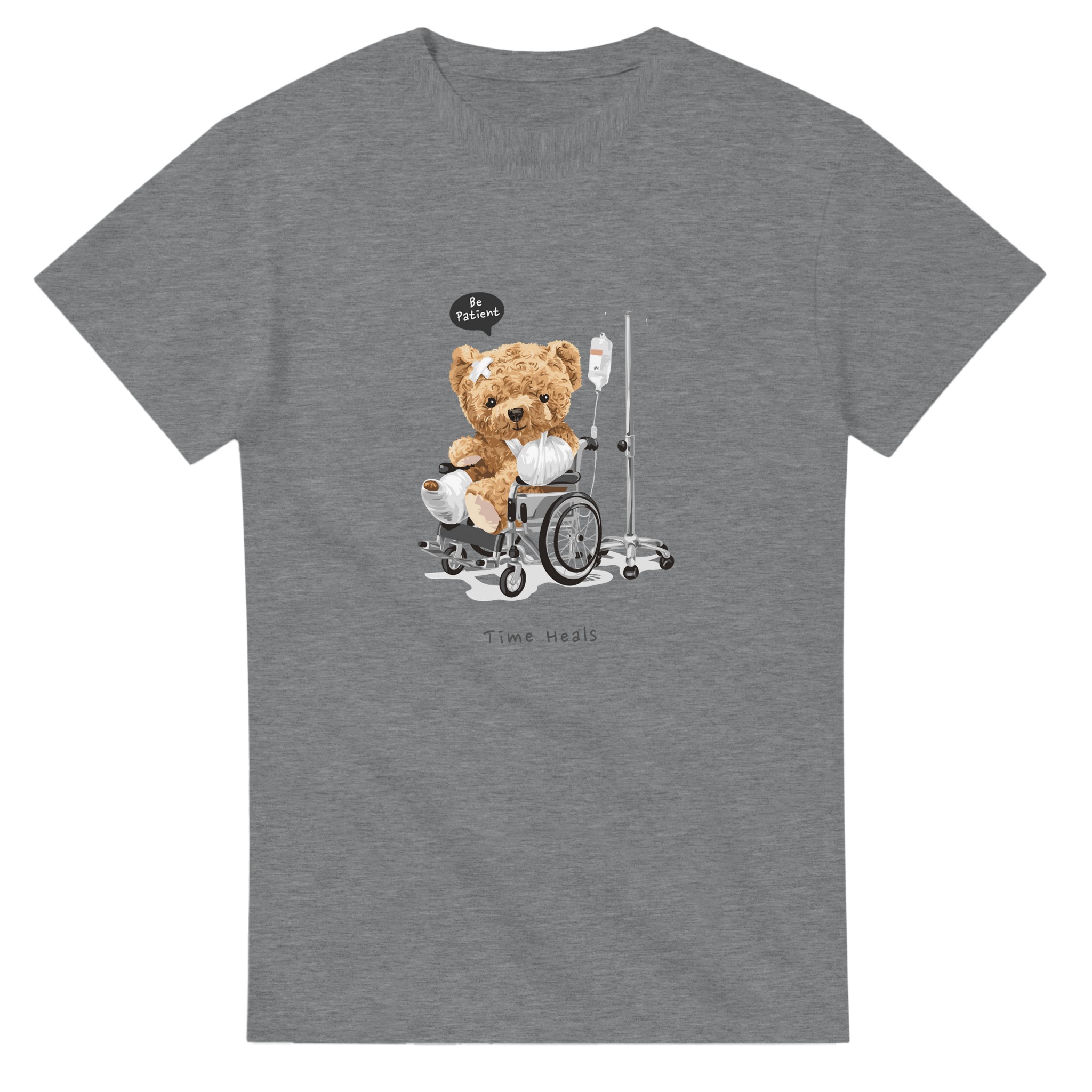 Tålig Bomulls-T-shirt – ‘Be Patient Time Heals’ Teddybjörn Design i Ditt Val av Färg och Storlek