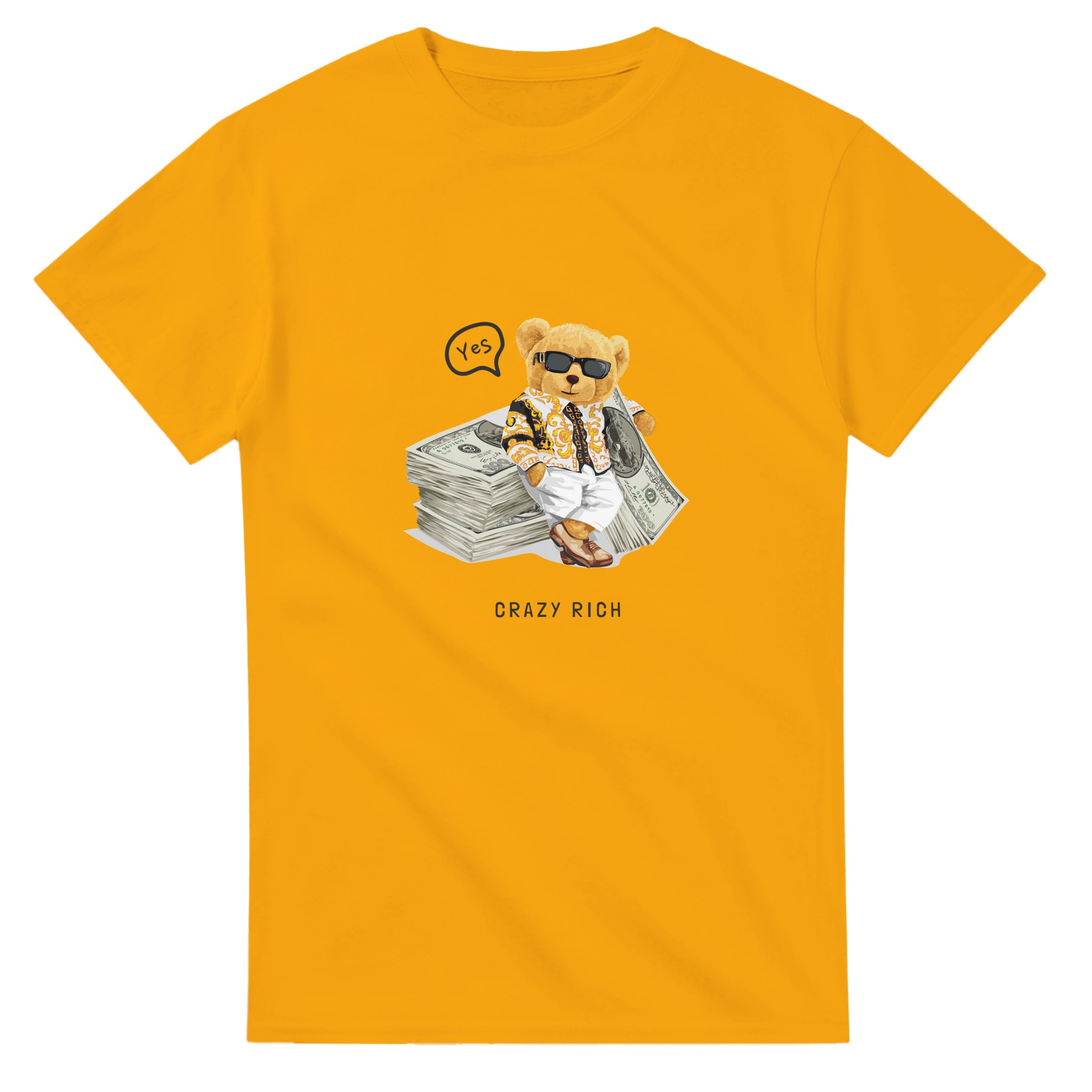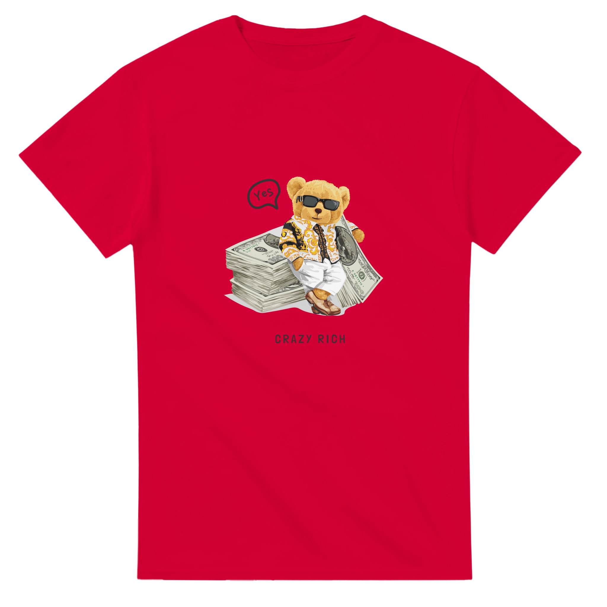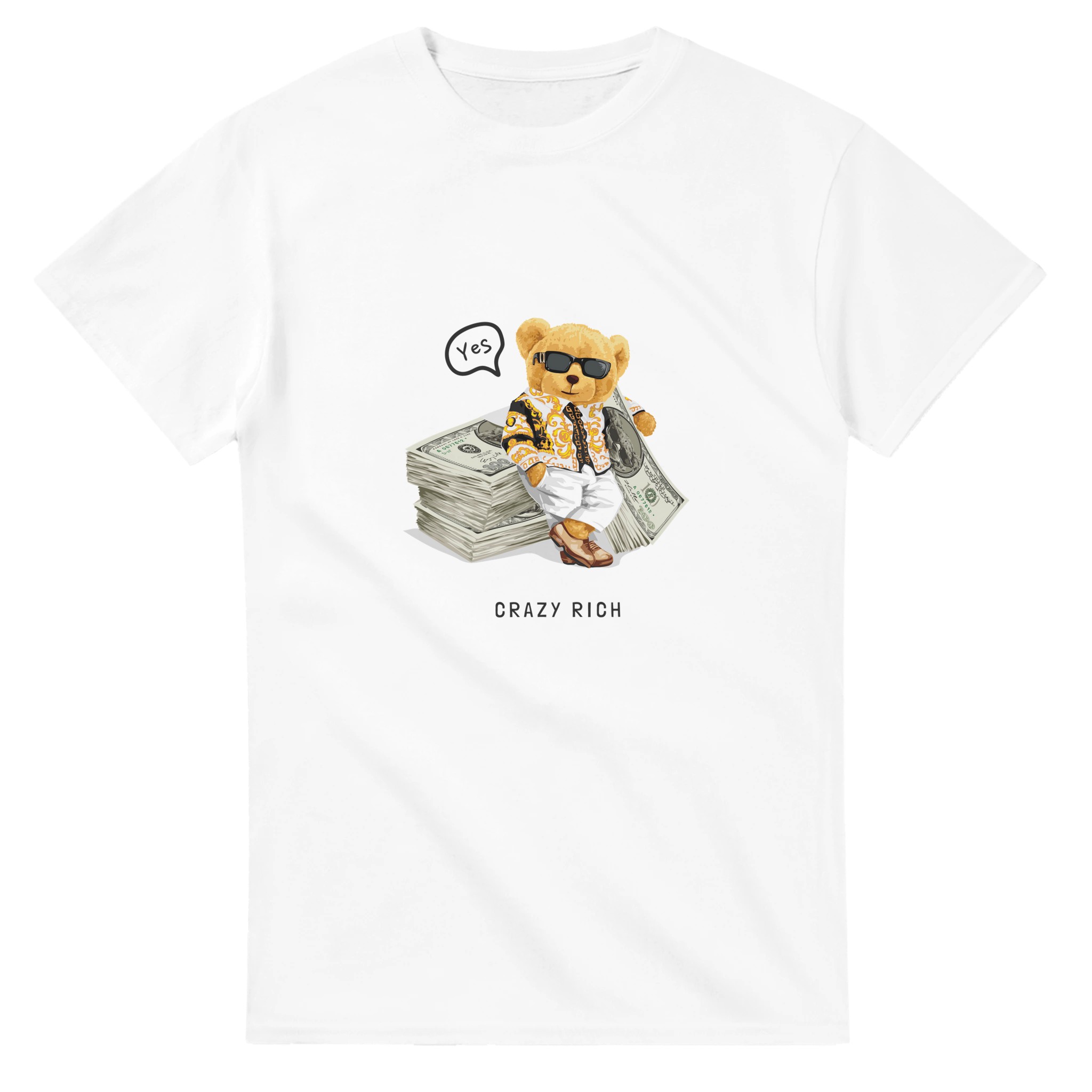 Crazy Rich Teddy – Lyxig Bomulls T-shirt med Glamorös Design för Trendsetters