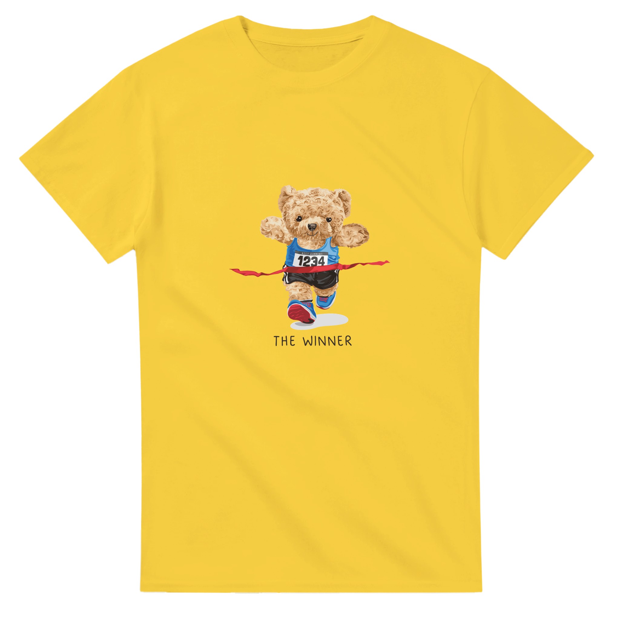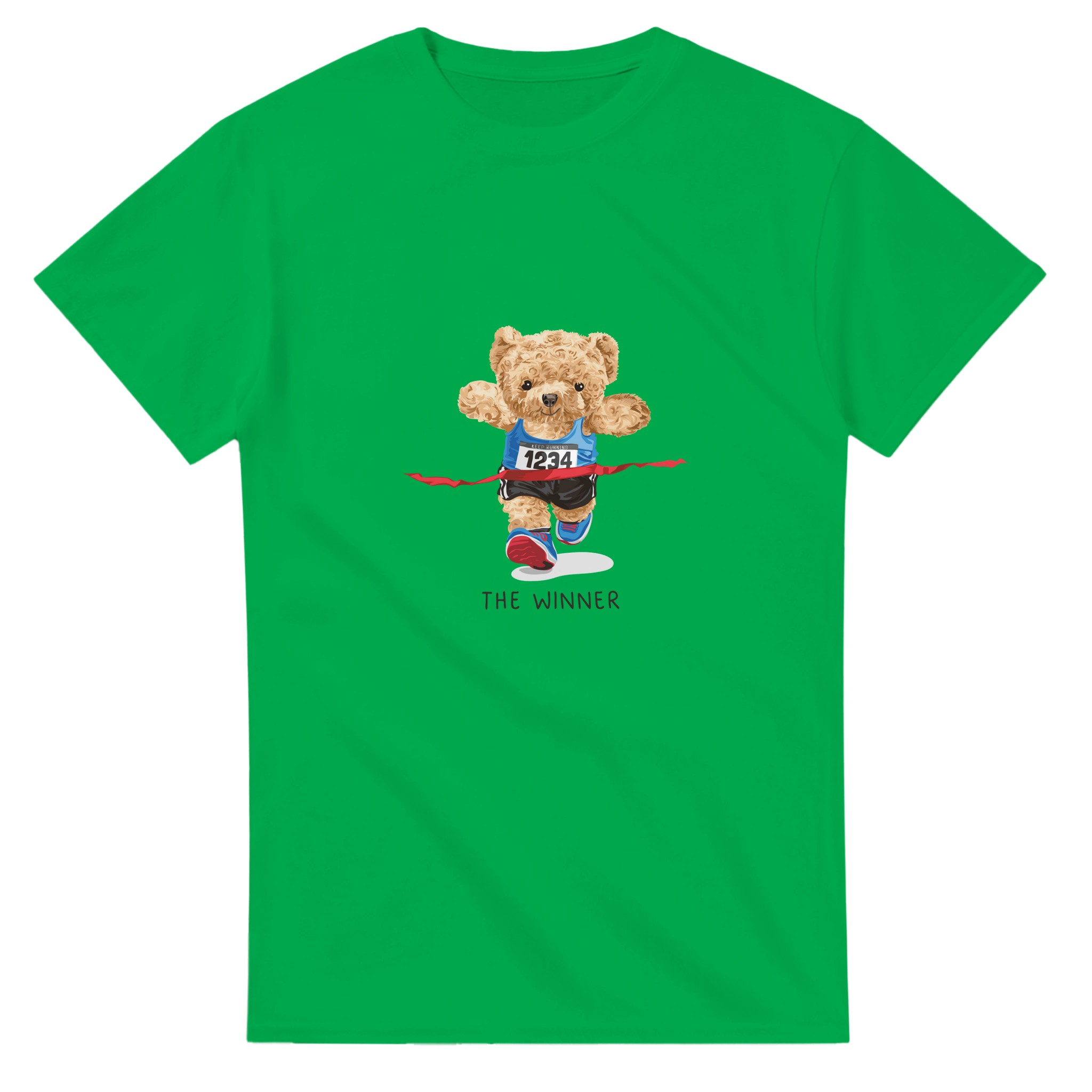 Vinnande Teddy T-shirt – Klassisk Bomull, Unisex, Slitstark Design med Löparmotiv för Vardags och Event
