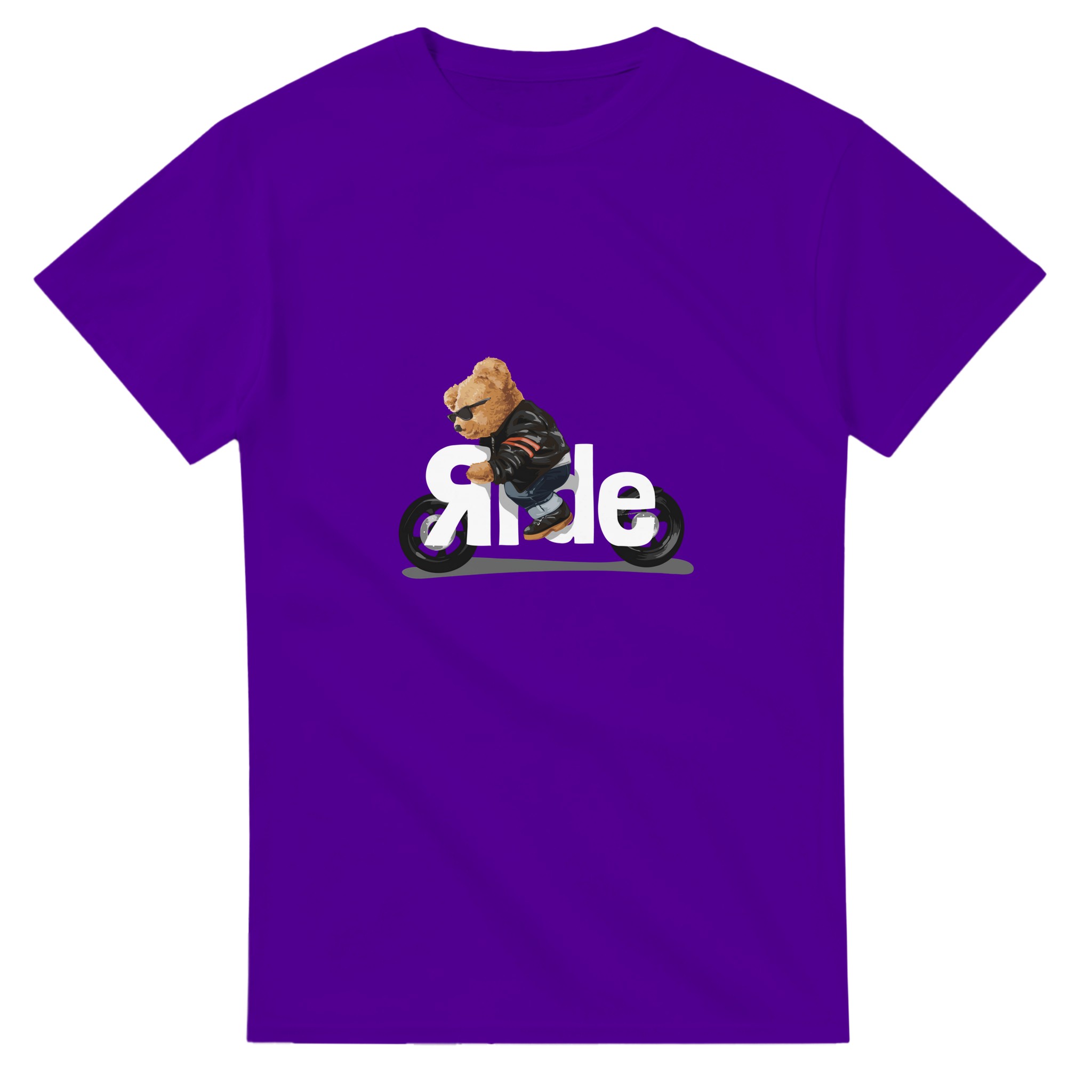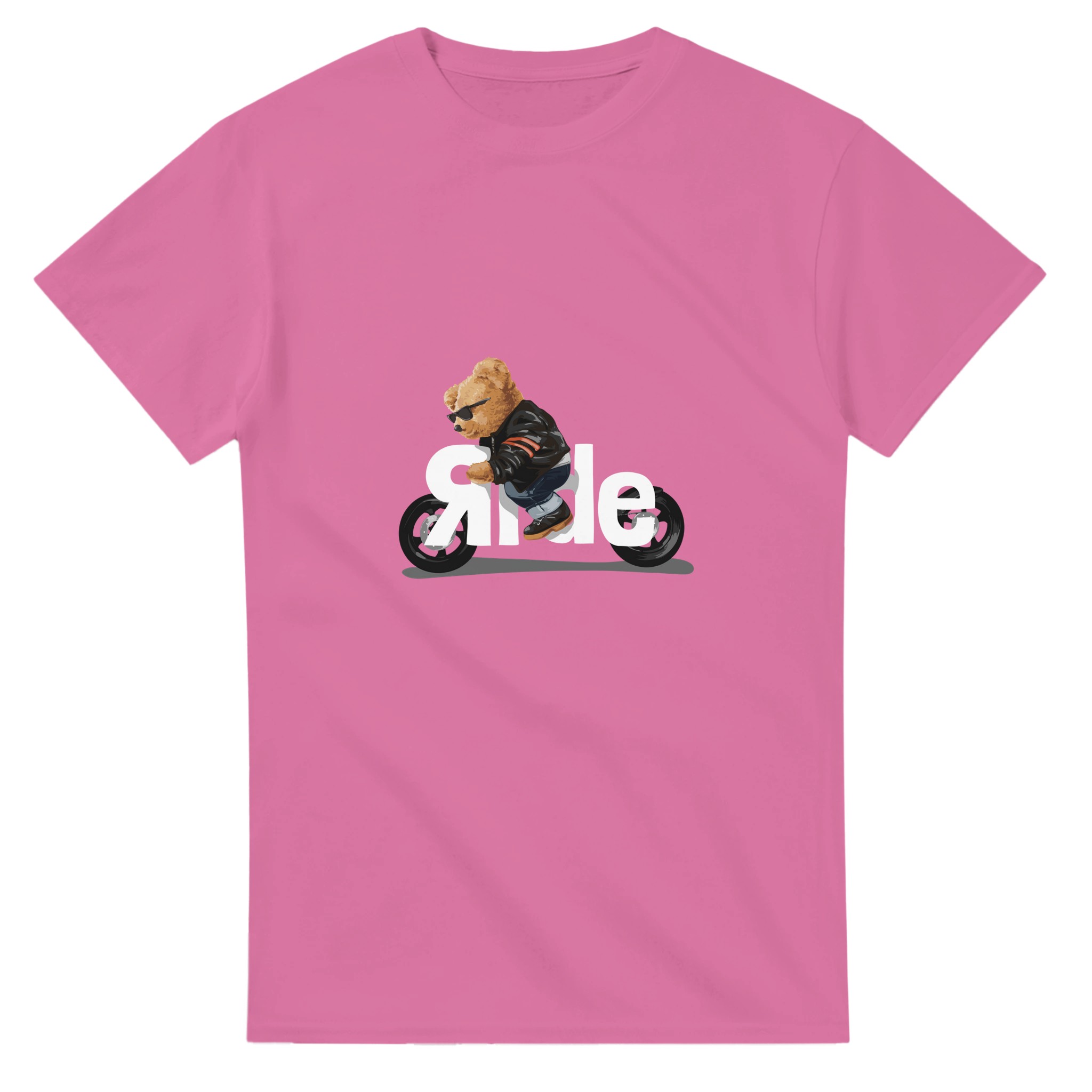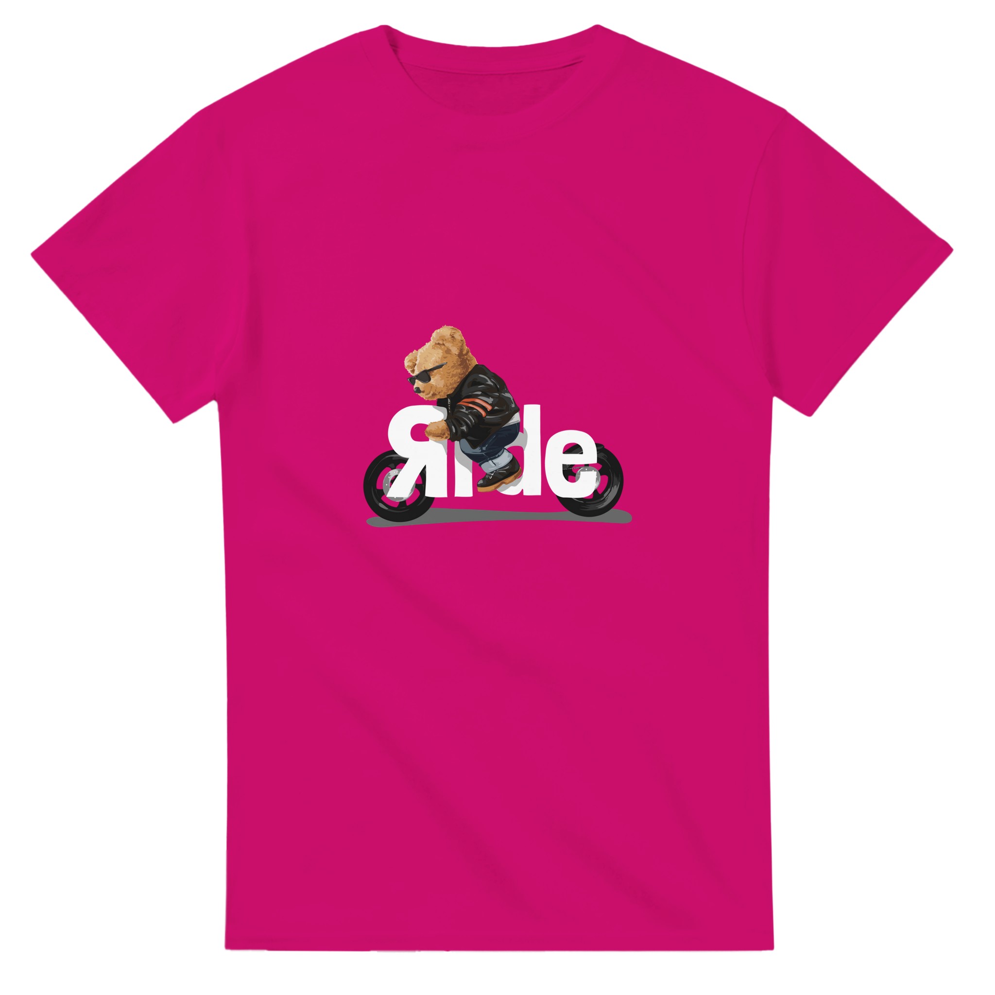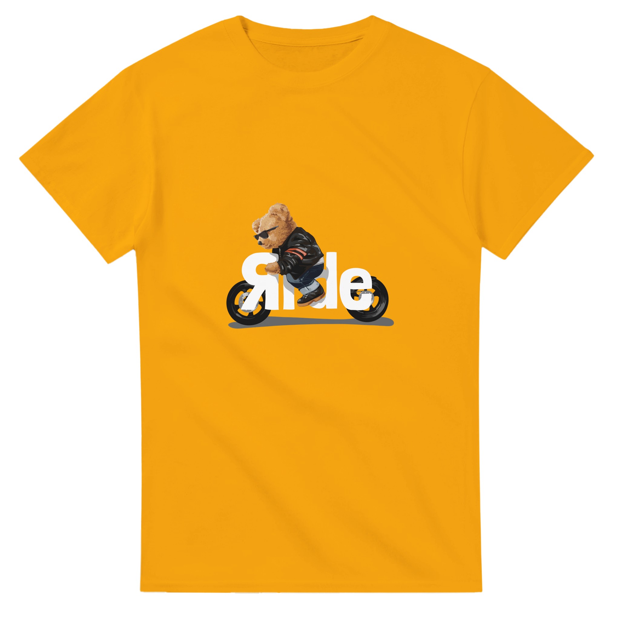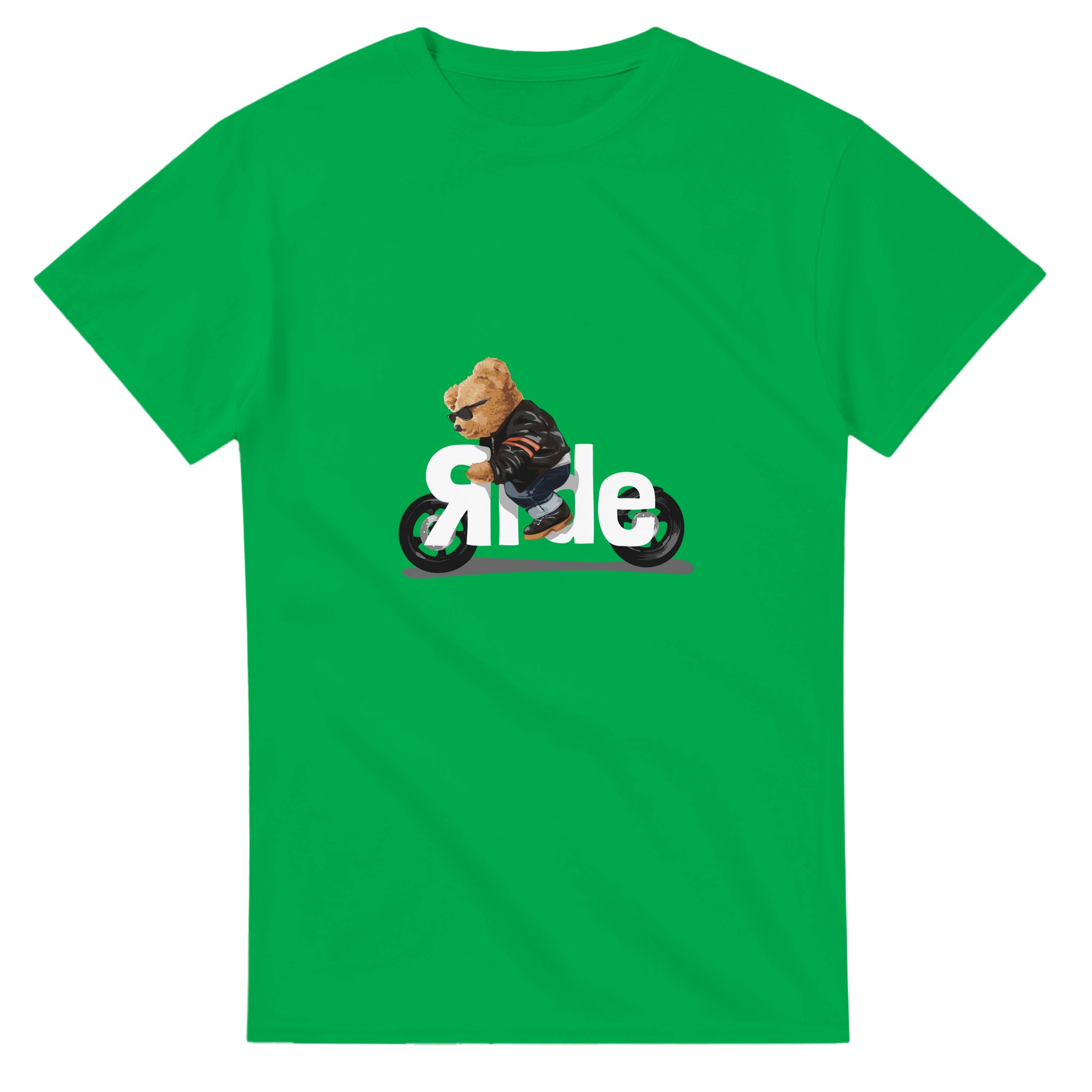 Biker Bear ‘Ride’ T-shirt – Klassisk Unisex Bomullströja med Attityd i Valfri Färg