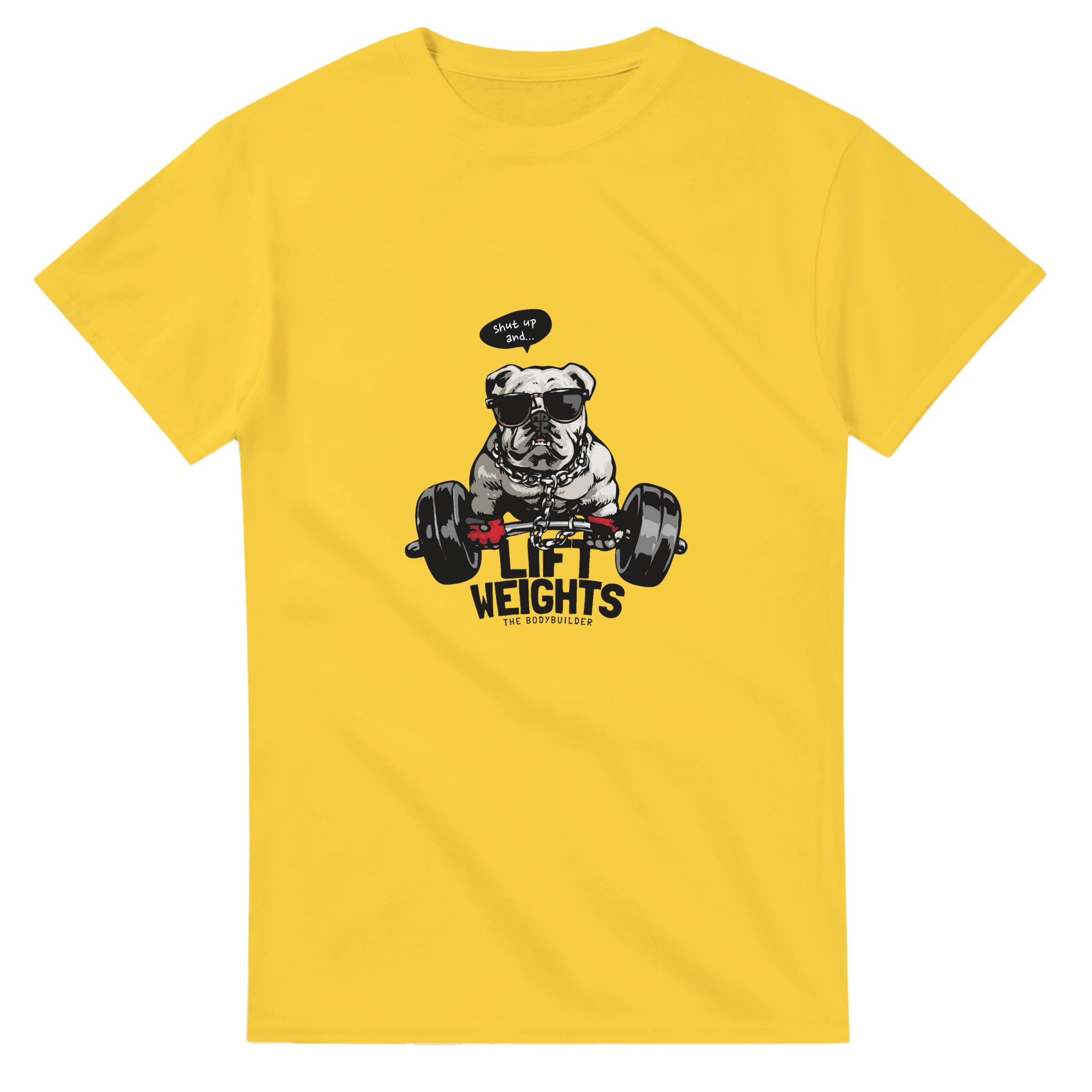 Stark Bulldog Gym T-shirt – Lyftvikter Design för Träningspass och Vardagsbruk
