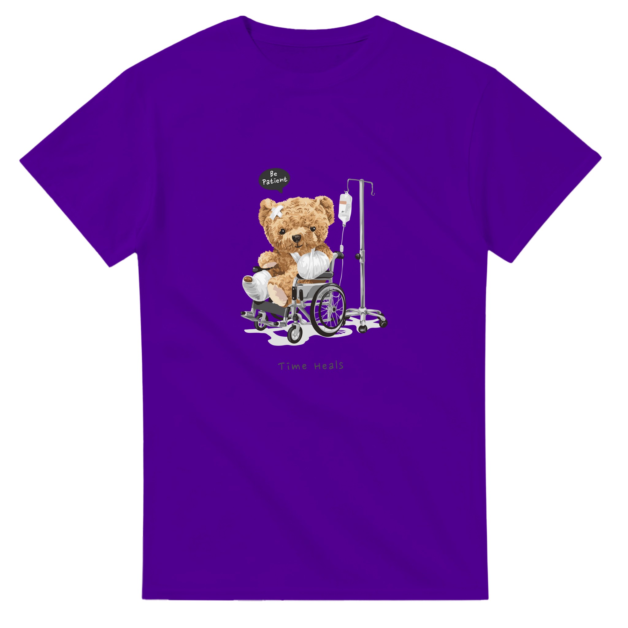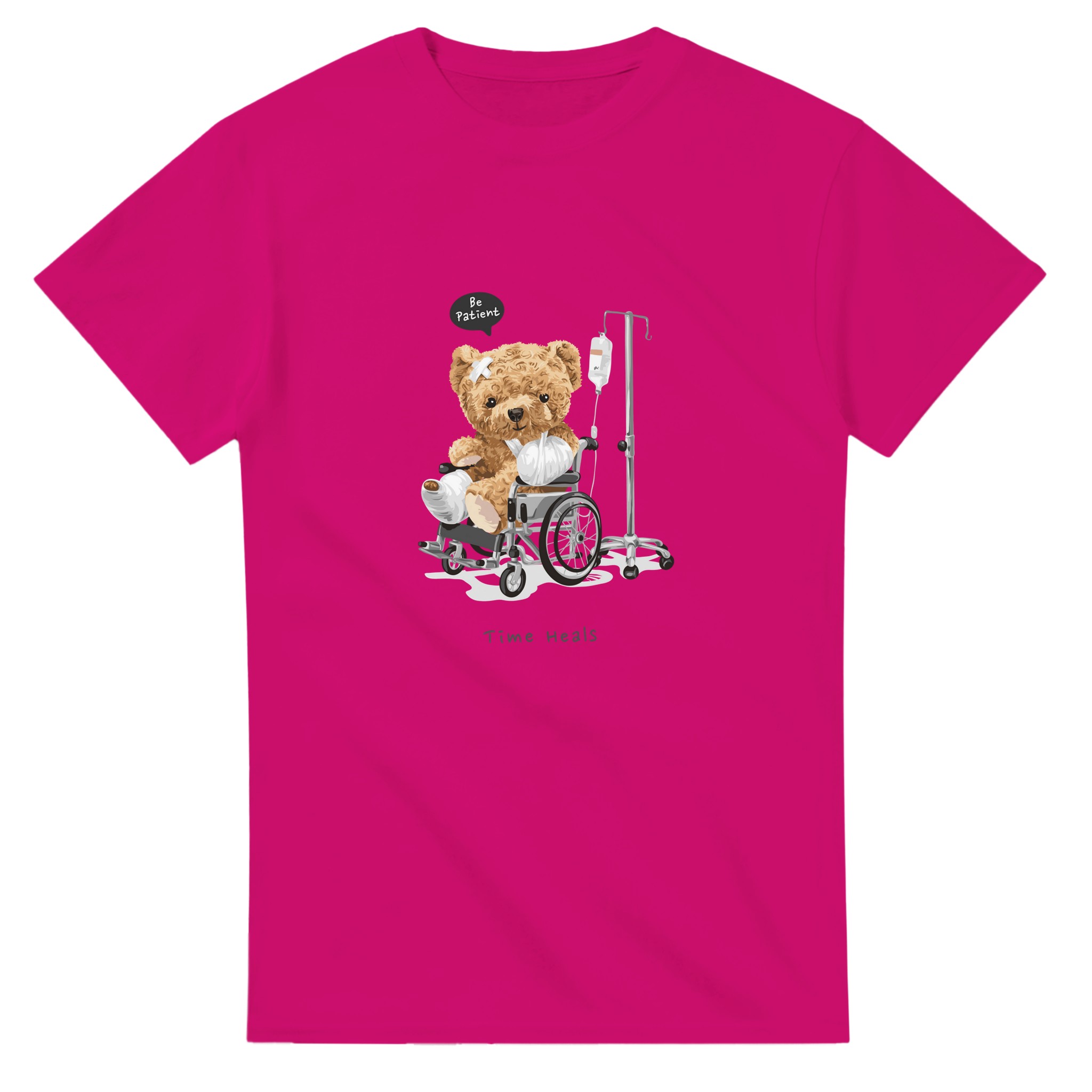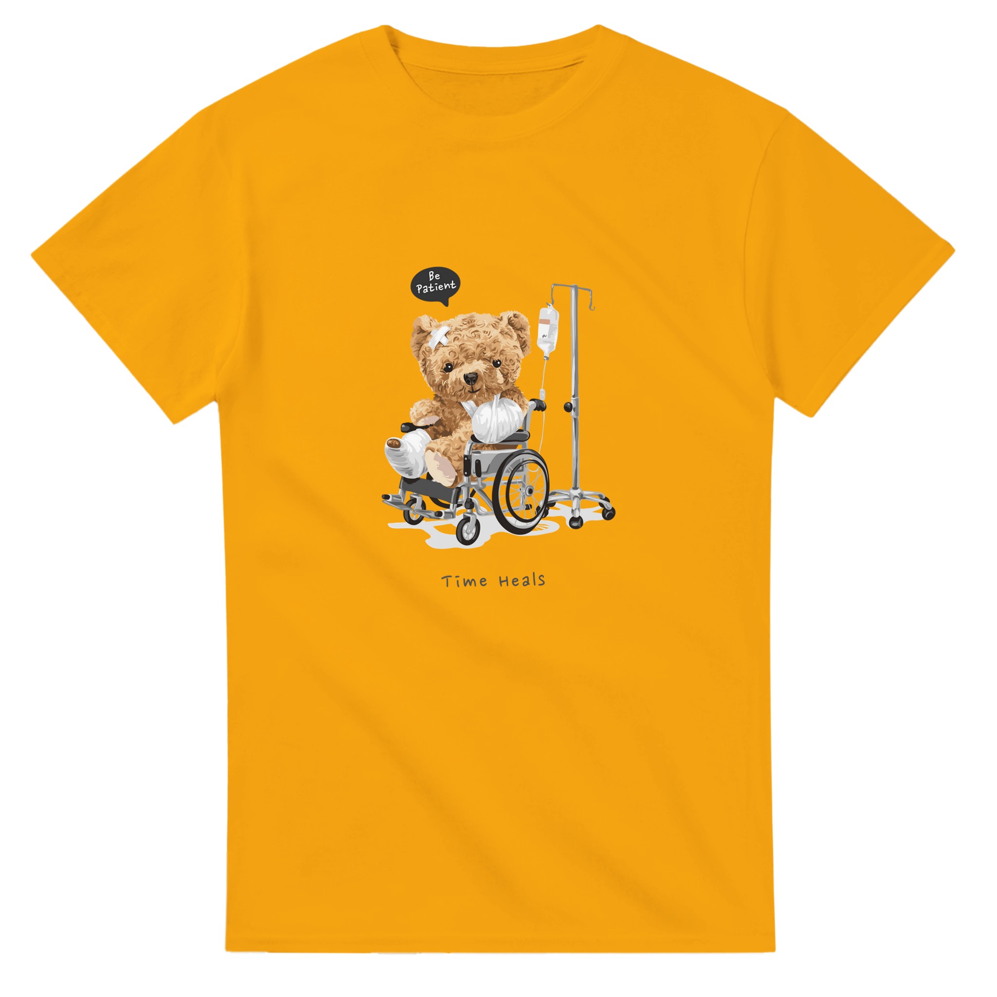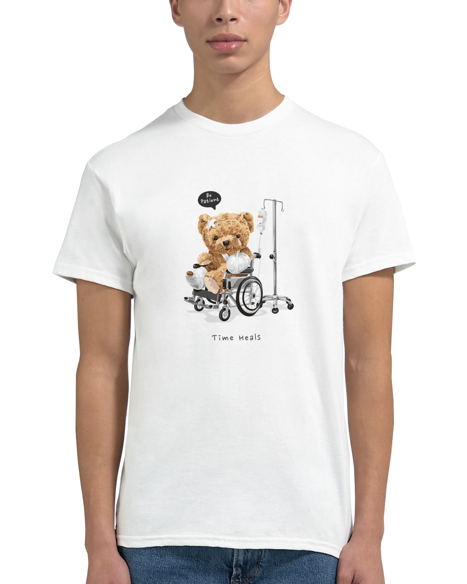 Tålig Klassisk Bomulls-T-shirt – ‘Be Patient Time Heals’ Teddybjörn Design för Vardagsbruk