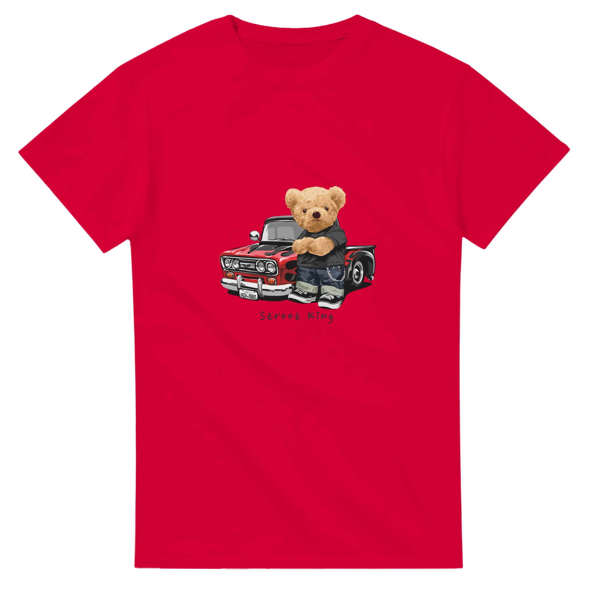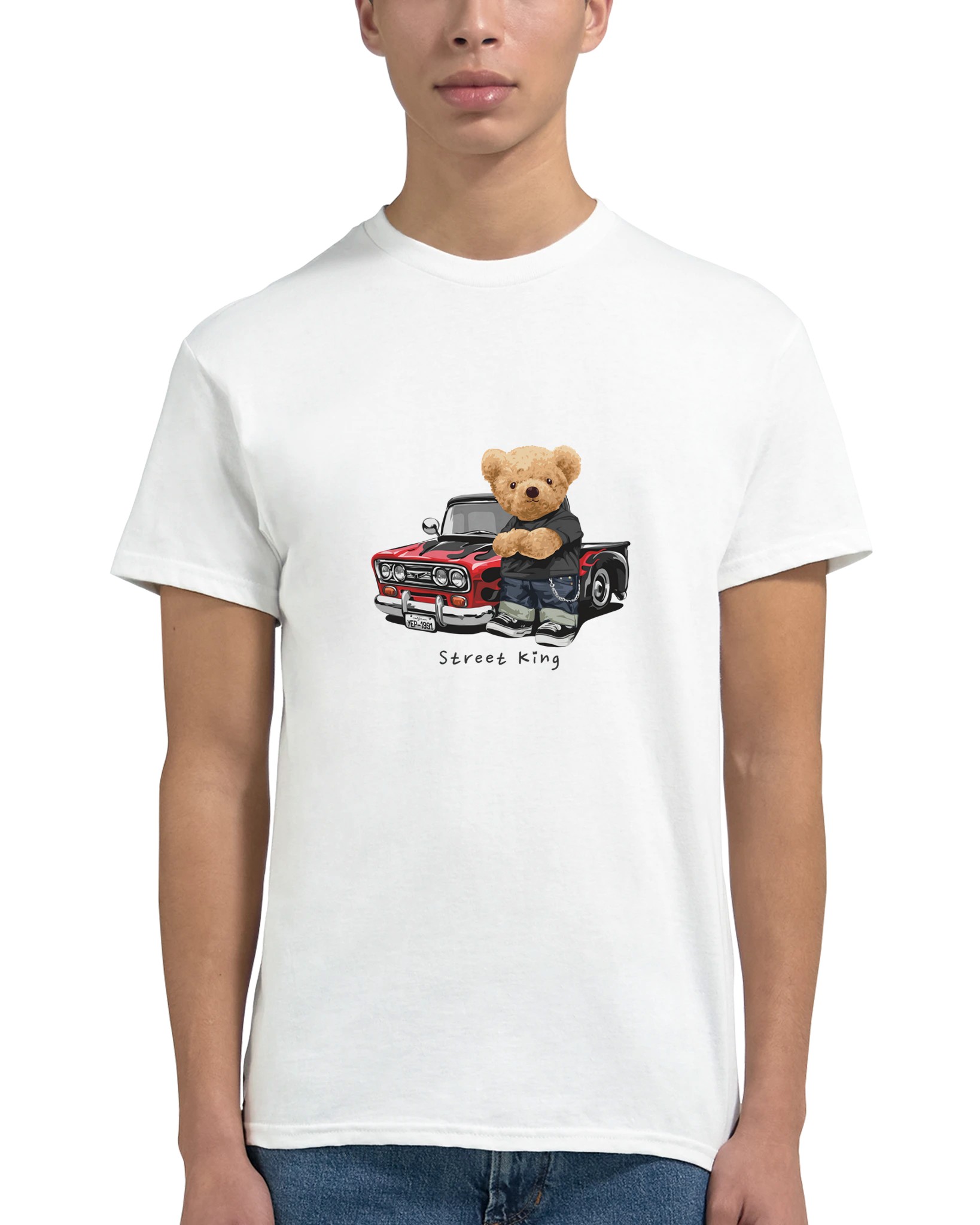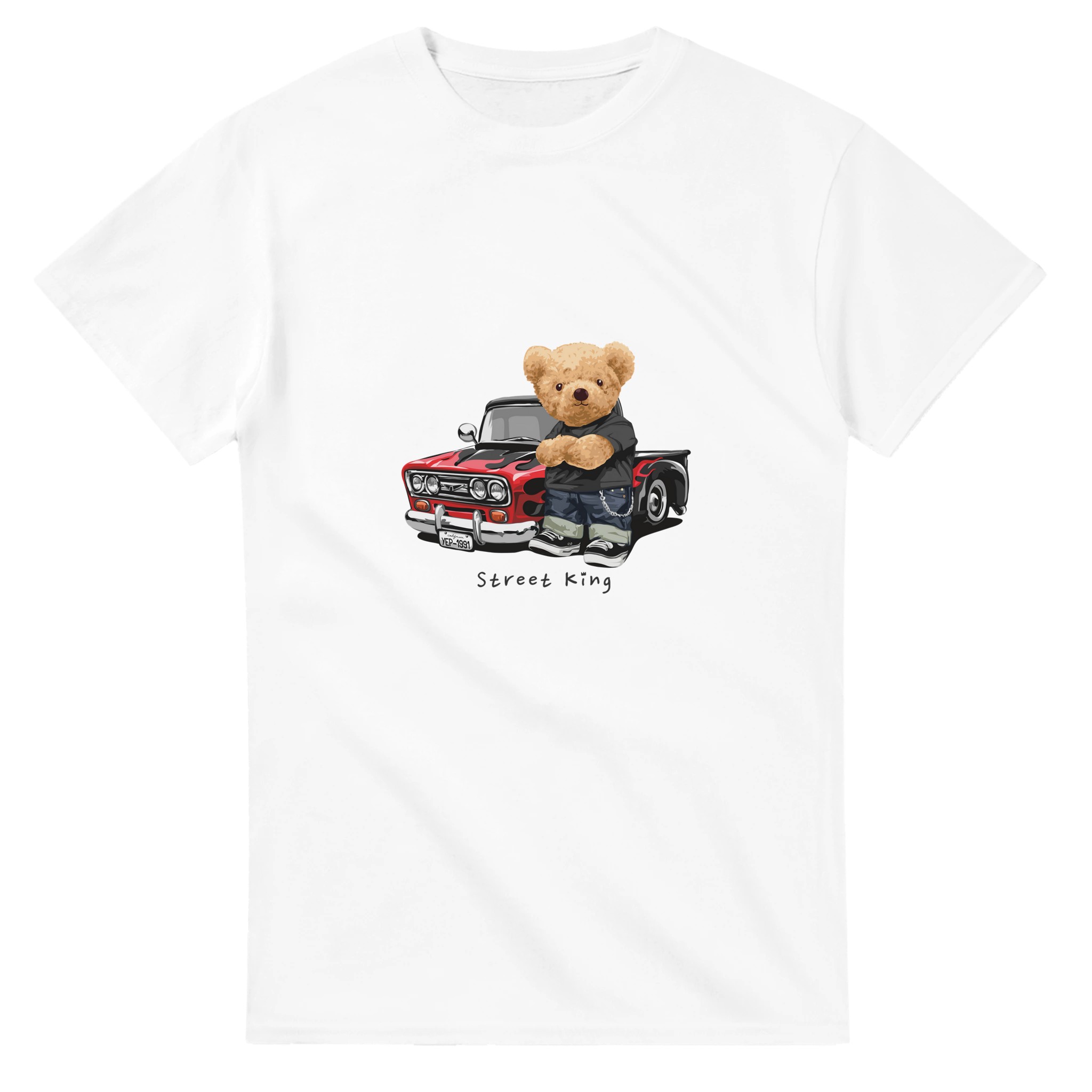 Street King Teddy – Robust, Unisex Bomulls-T-shirt med Klassisk Bil & Rebel Teddy Design