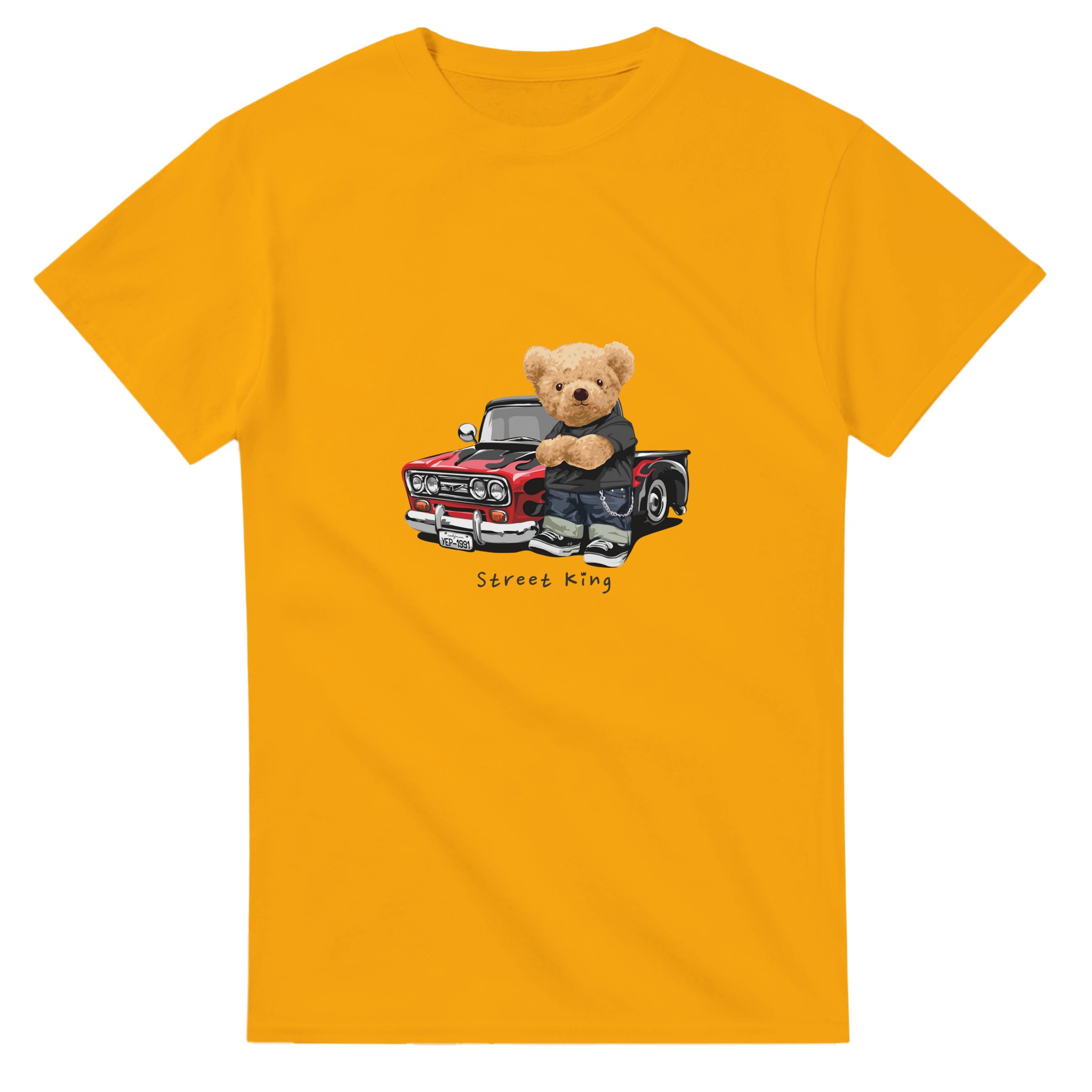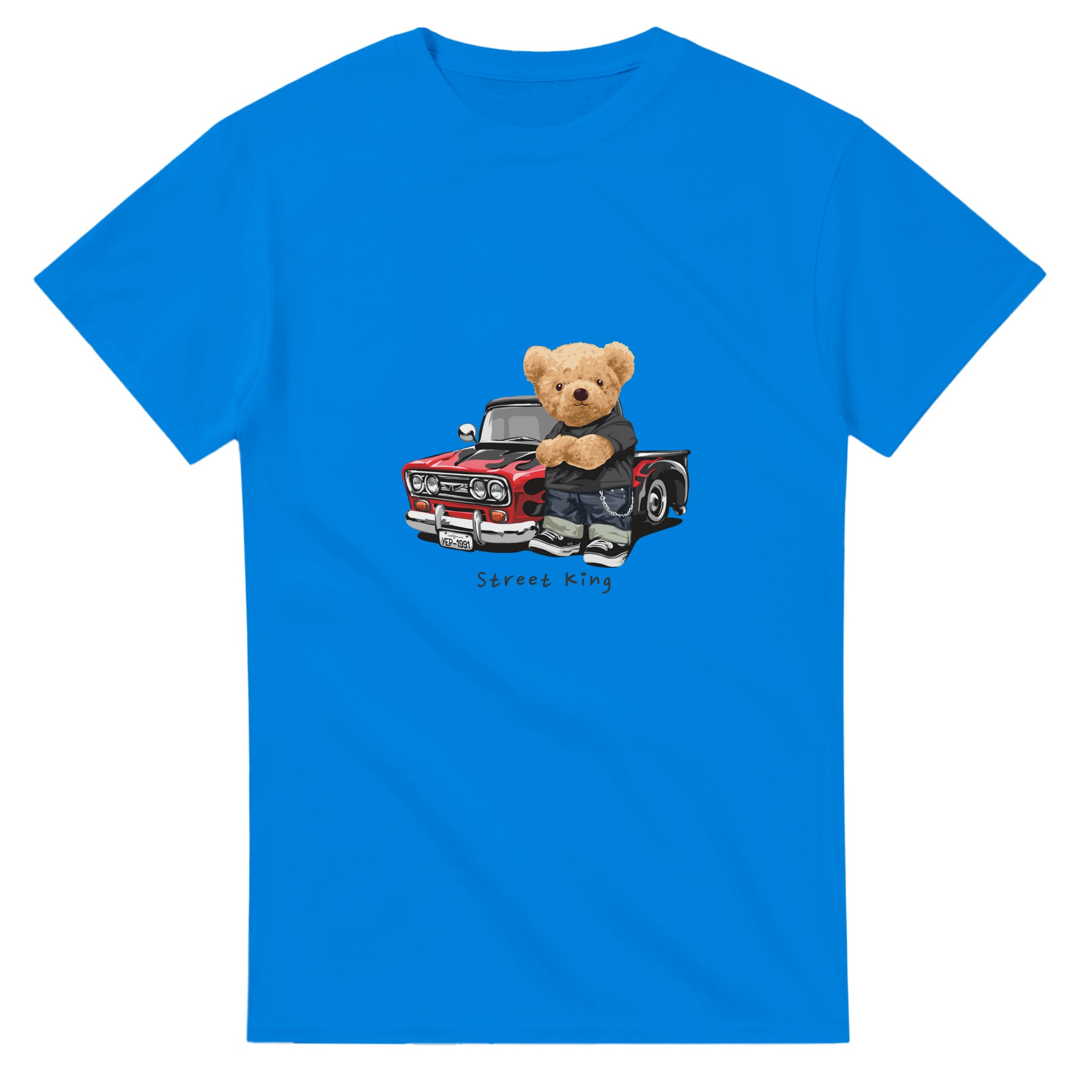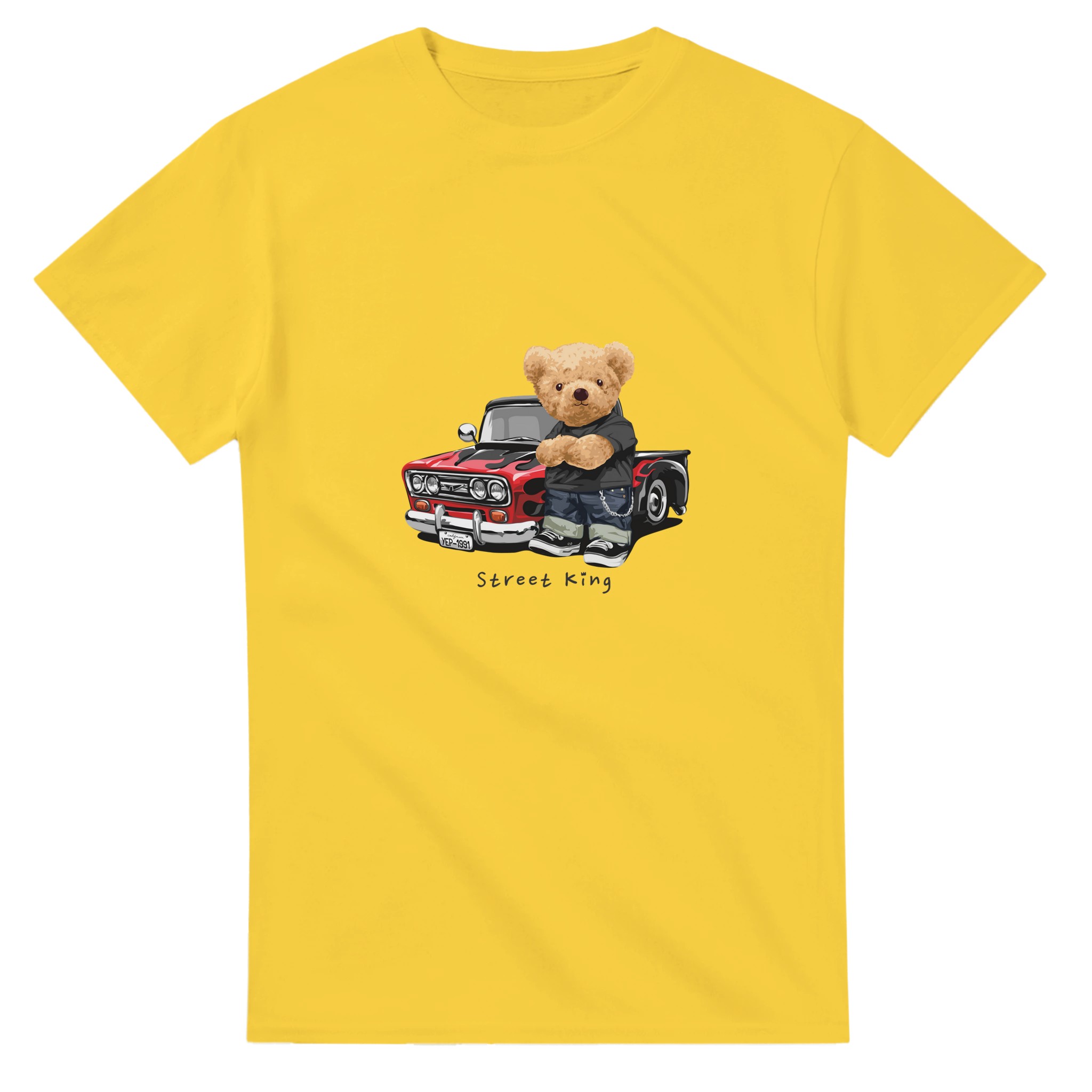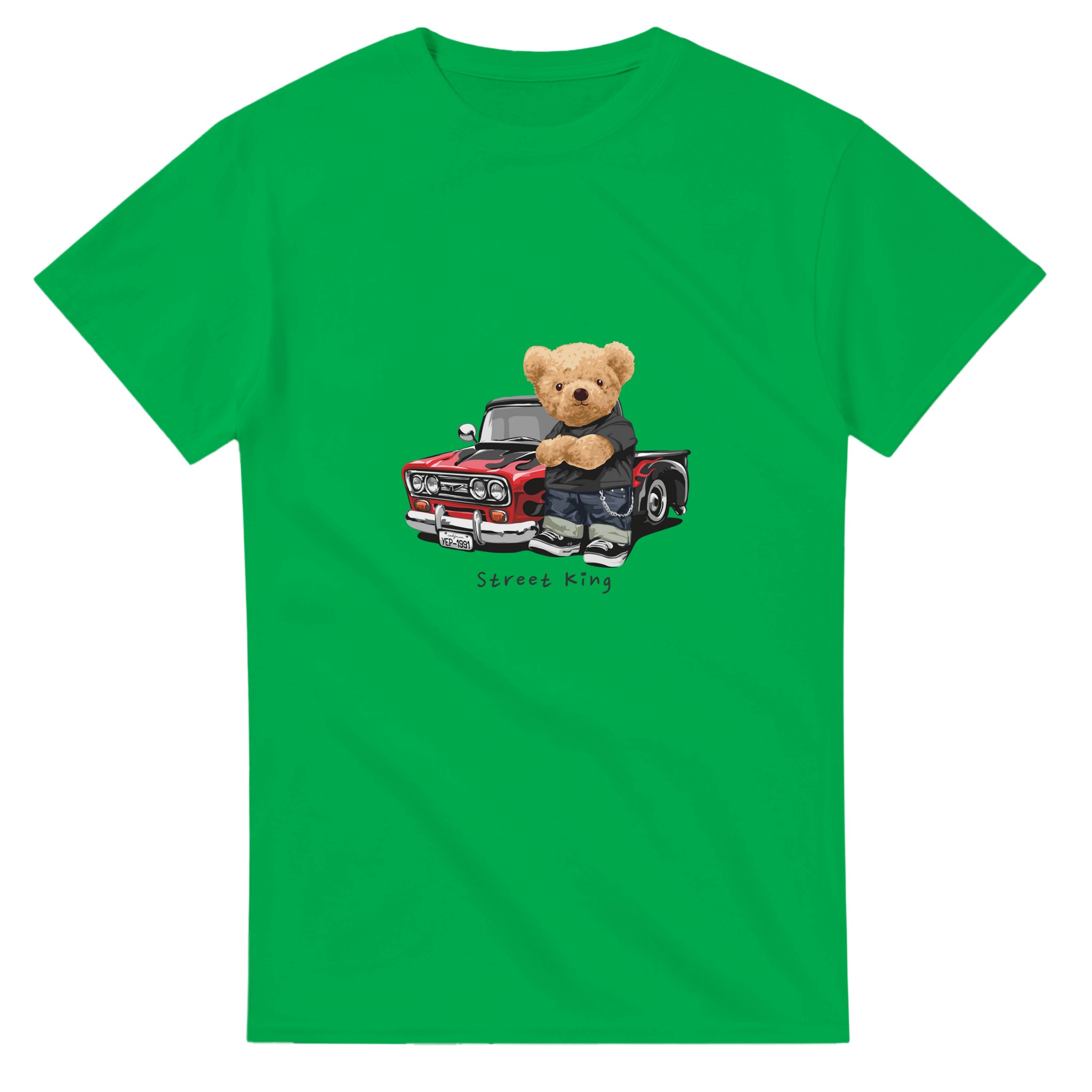 Street King Teddy – Robust, Unisex Bomulls-T-shirt med Klassisk Bil & Rebel Teddy Design