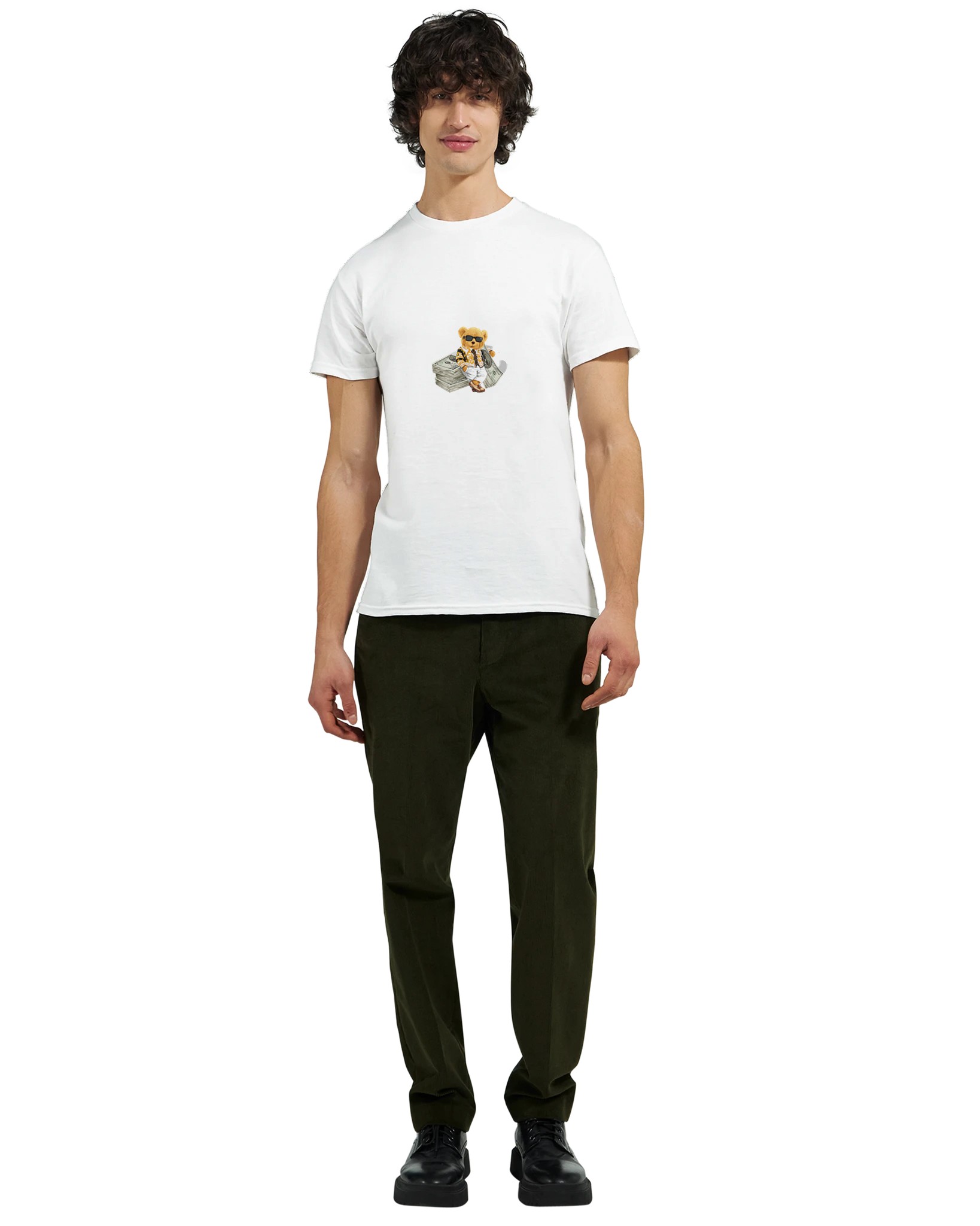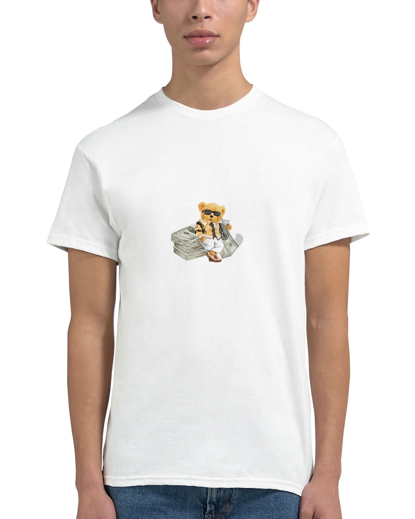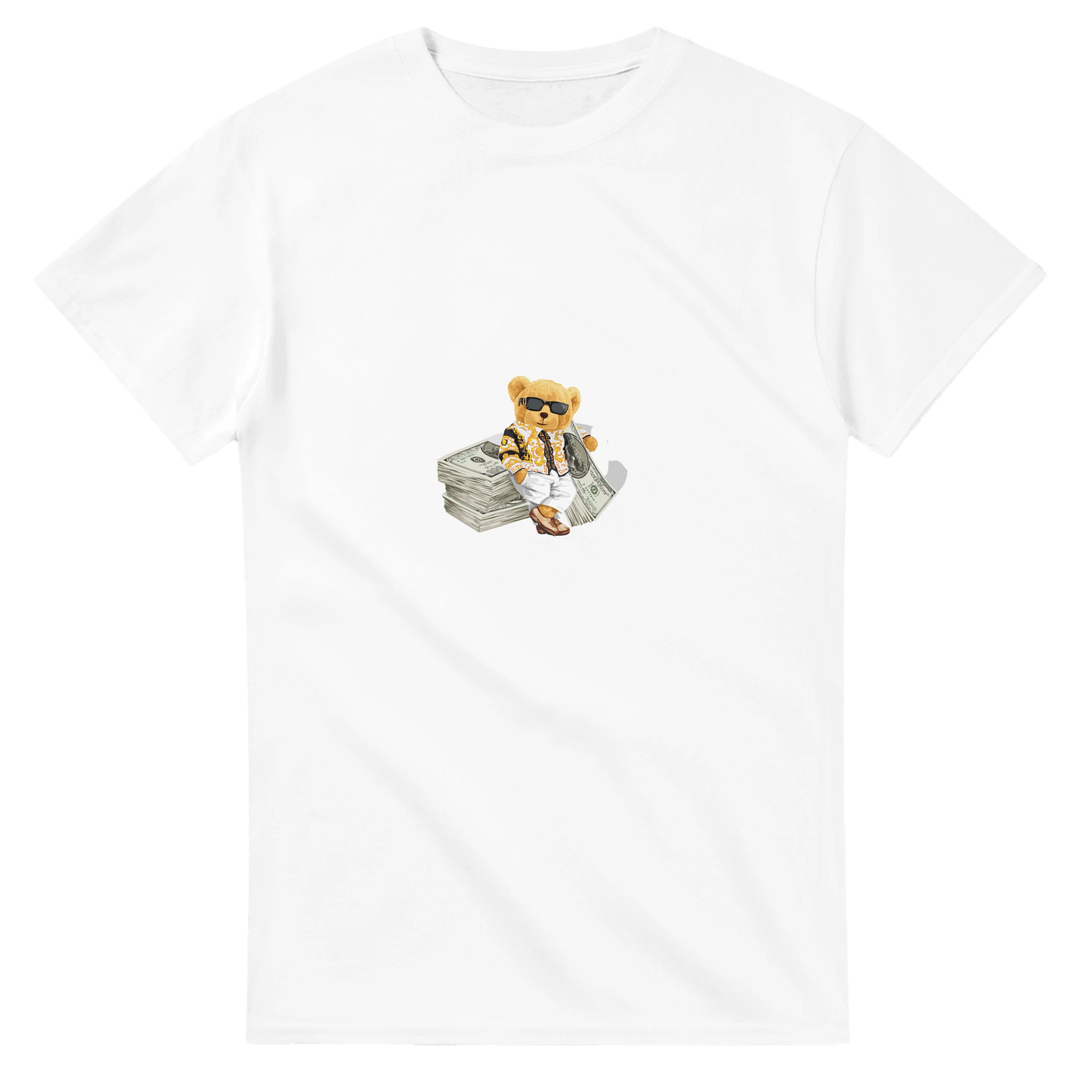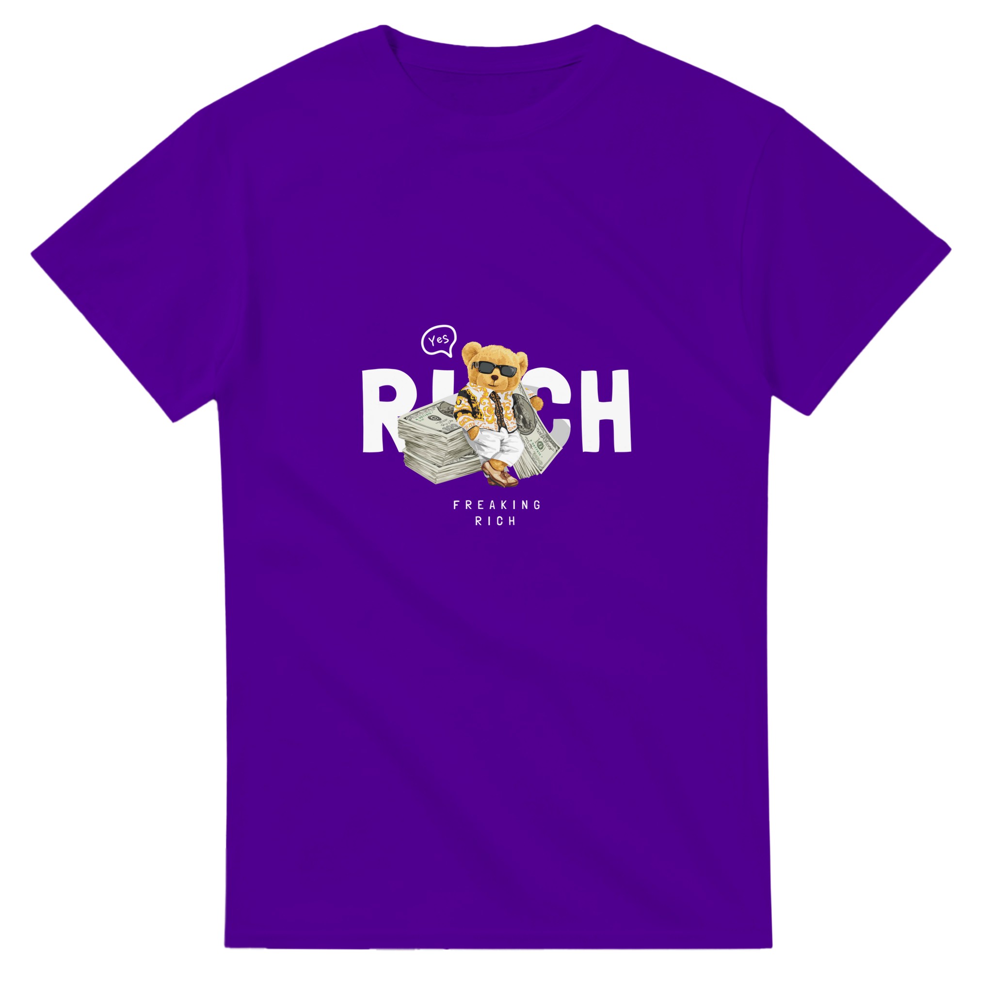 Lyxig “Freaking Rich” Teddybjörn T-shirt – Klassisk Bomull, Unisex Design för Stilmedvetna