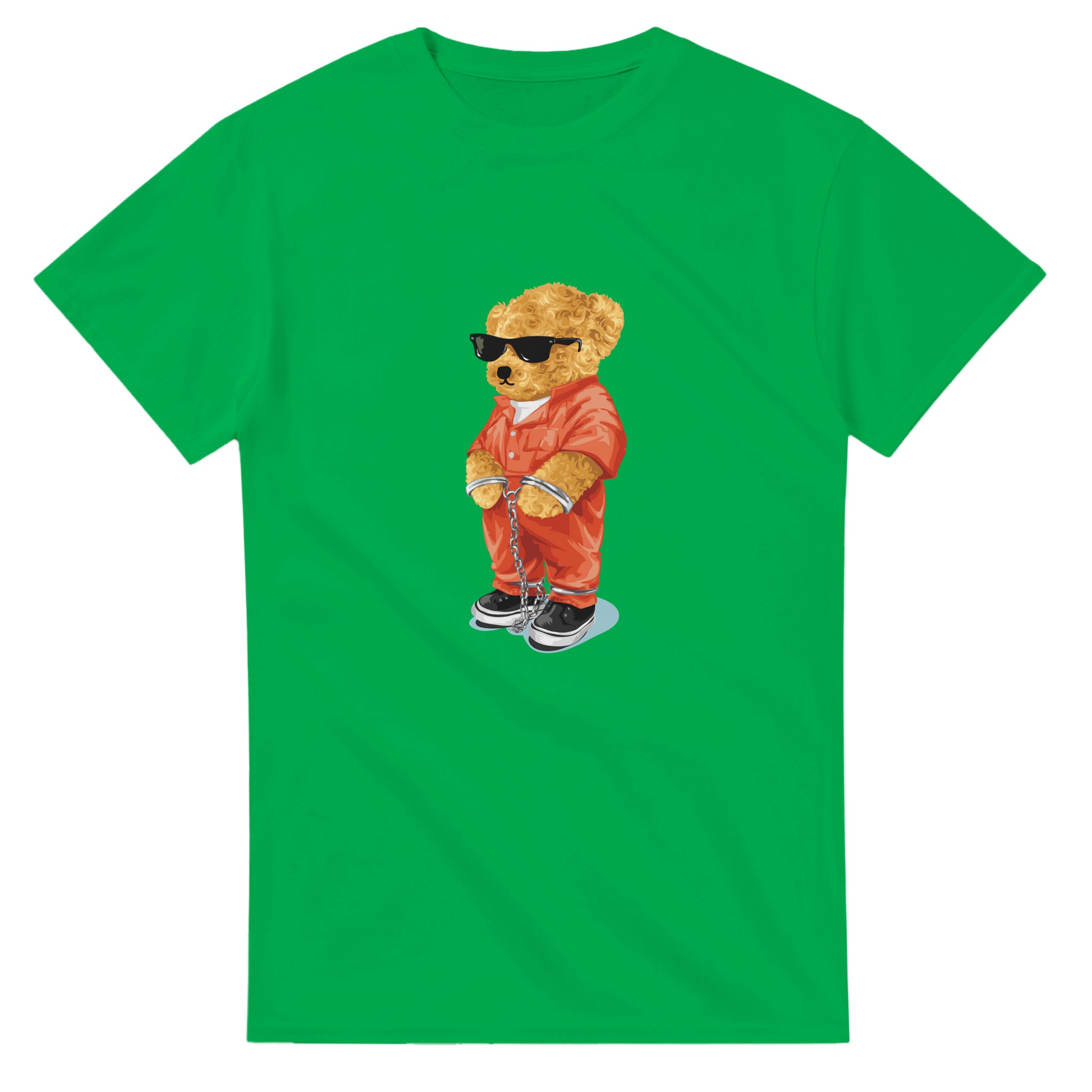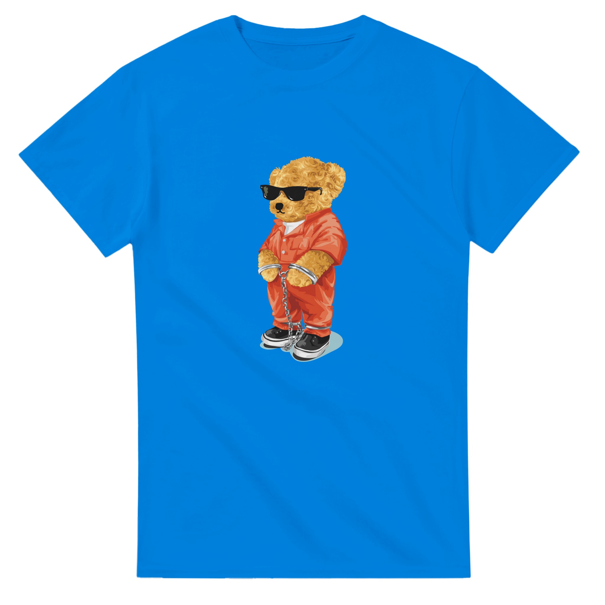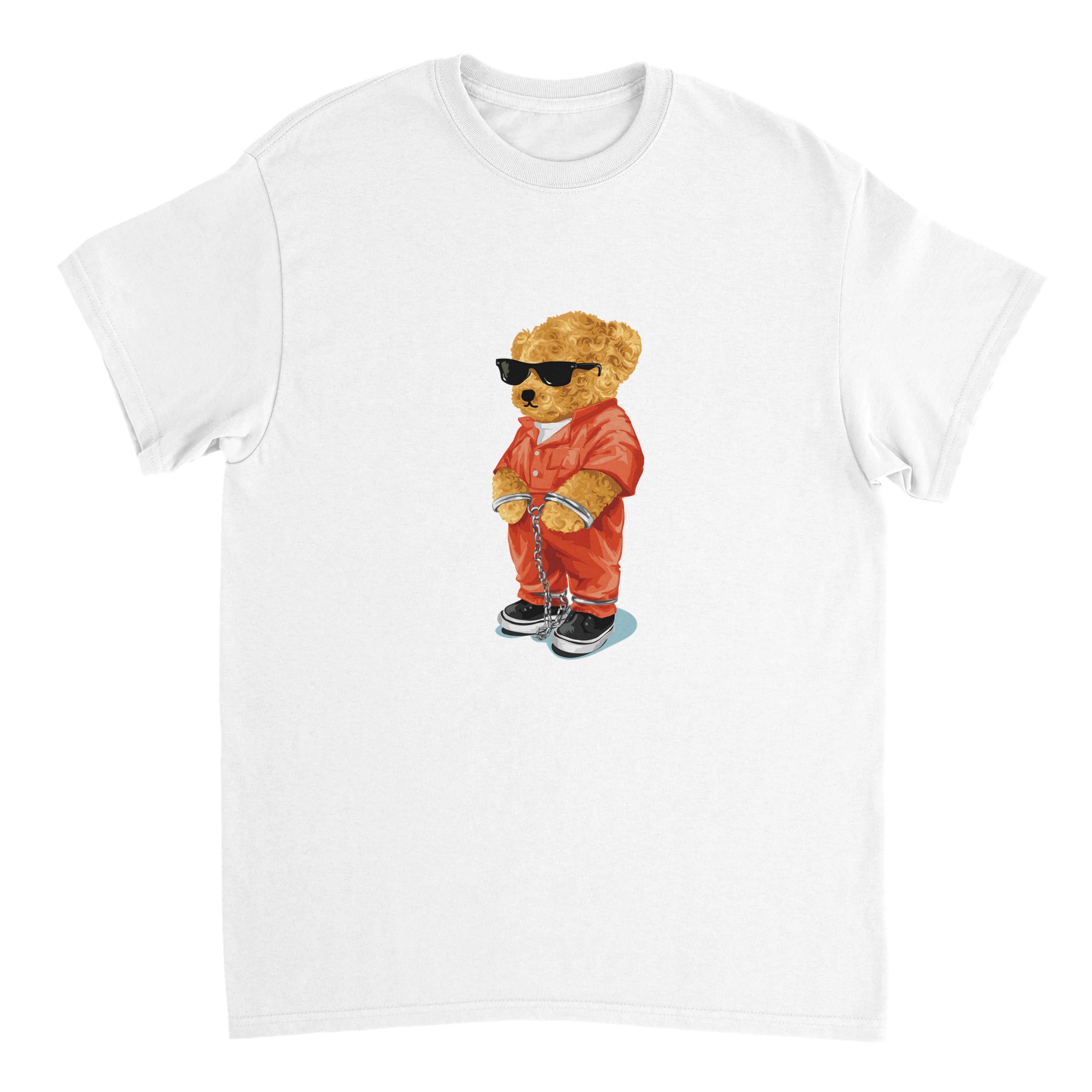 Klassisk Bomulls-T-shirt med Cool Teddybjörn i Fångdräkt – Tålig, Unisex, Slitstark Design för Vardags och Tryck