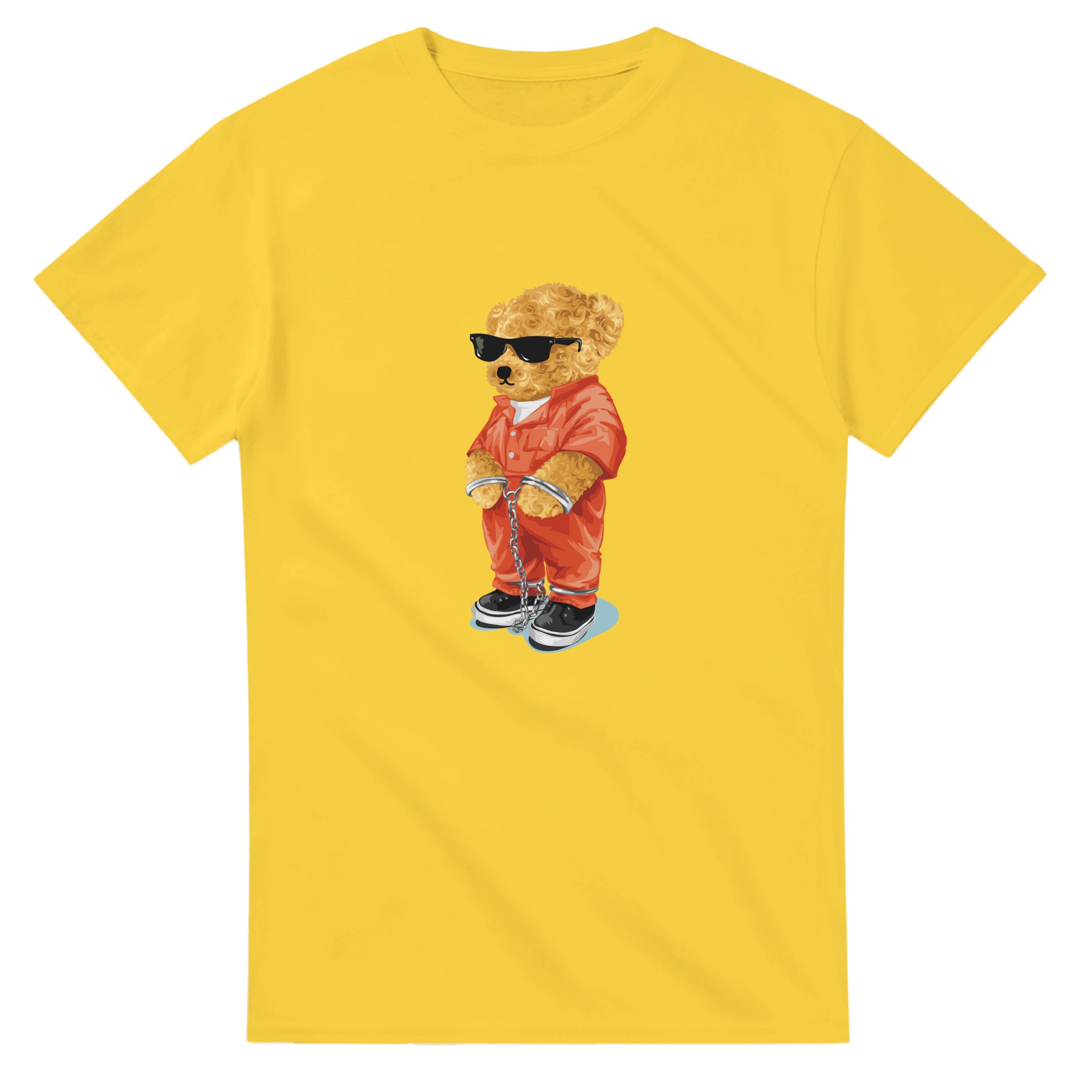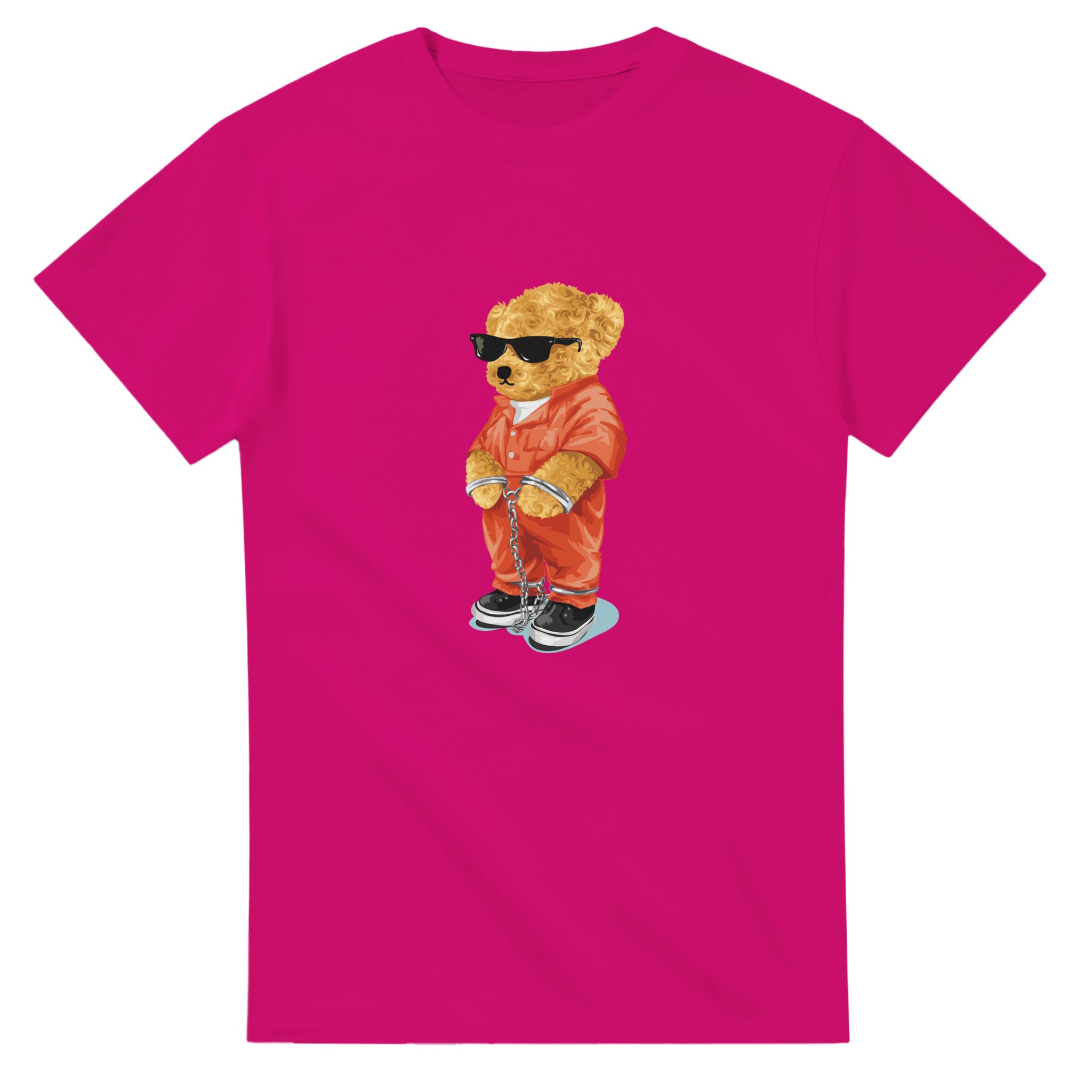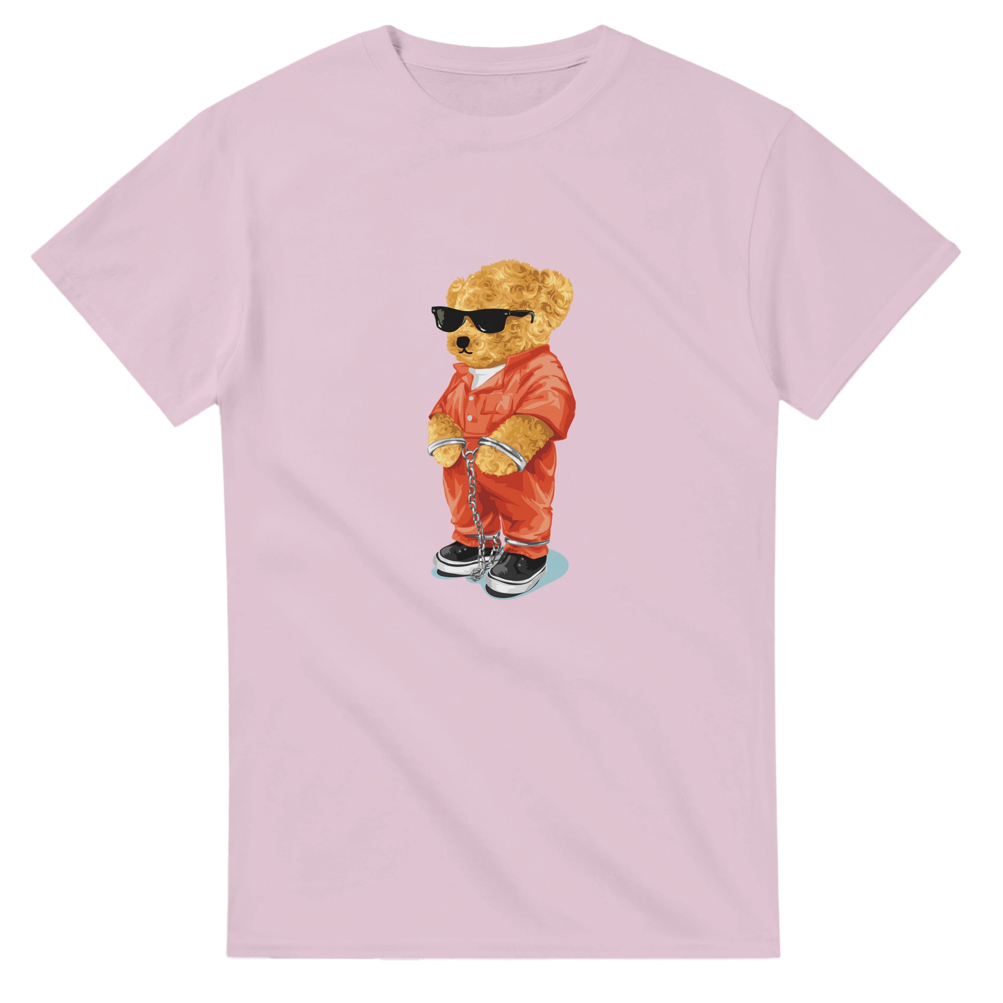 Klassisk Bomulls-T-shirt med Cool Teddybjörn i Fångdräkt – Tålig, Unisex, Slitstark Design för Vardags och Tryck