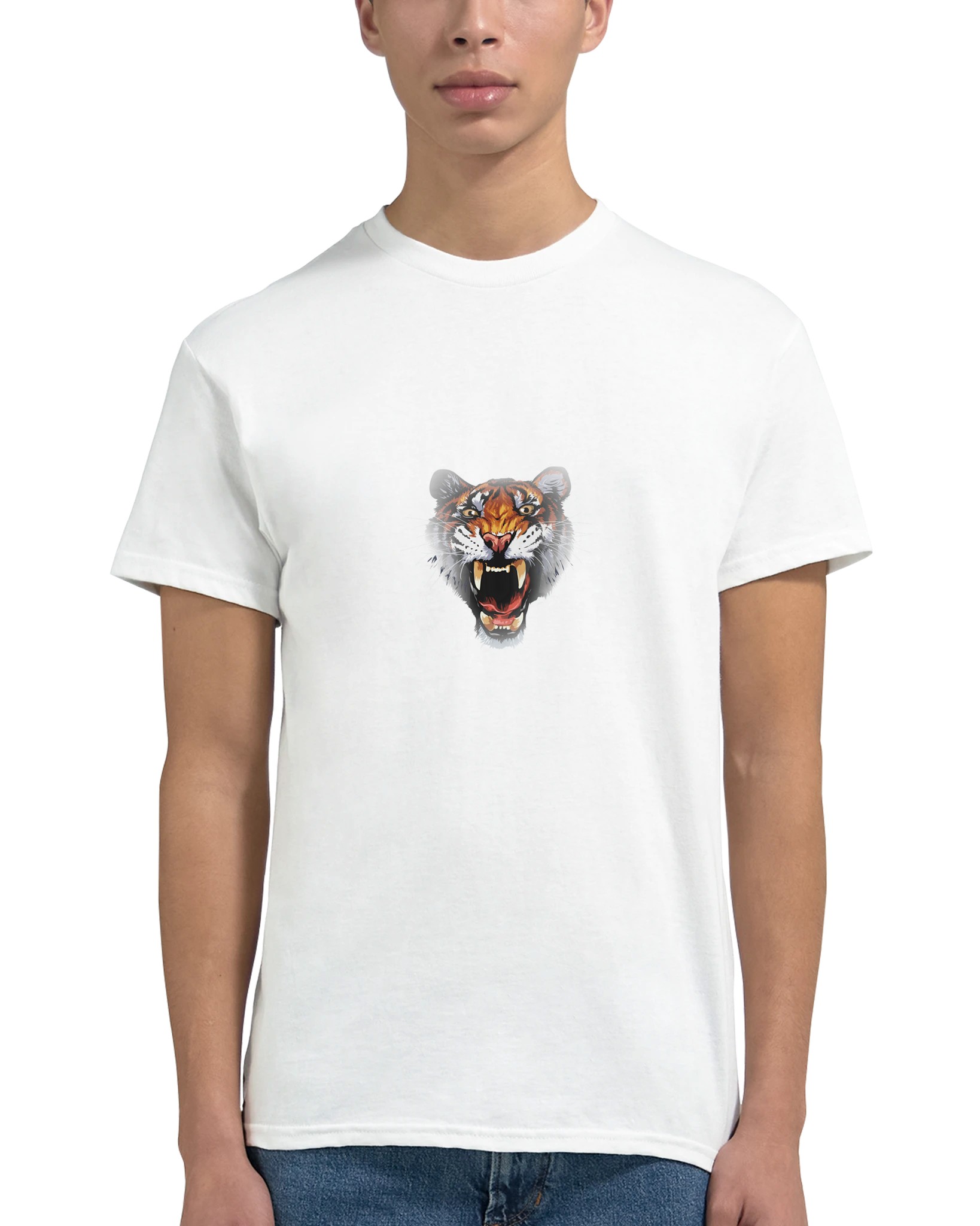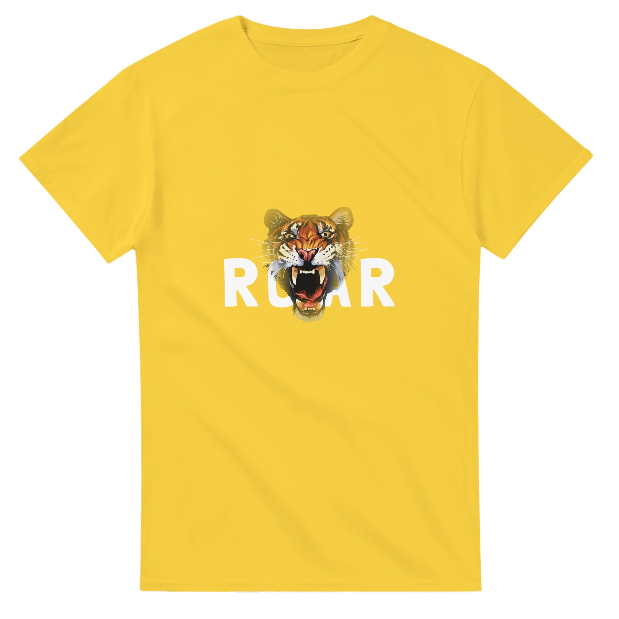 Vår Klassiska Bomulls-T-shirt: Stark ‘ROAR’ Tiger Design – Tålig, Unisex & Redo för Din Garderob