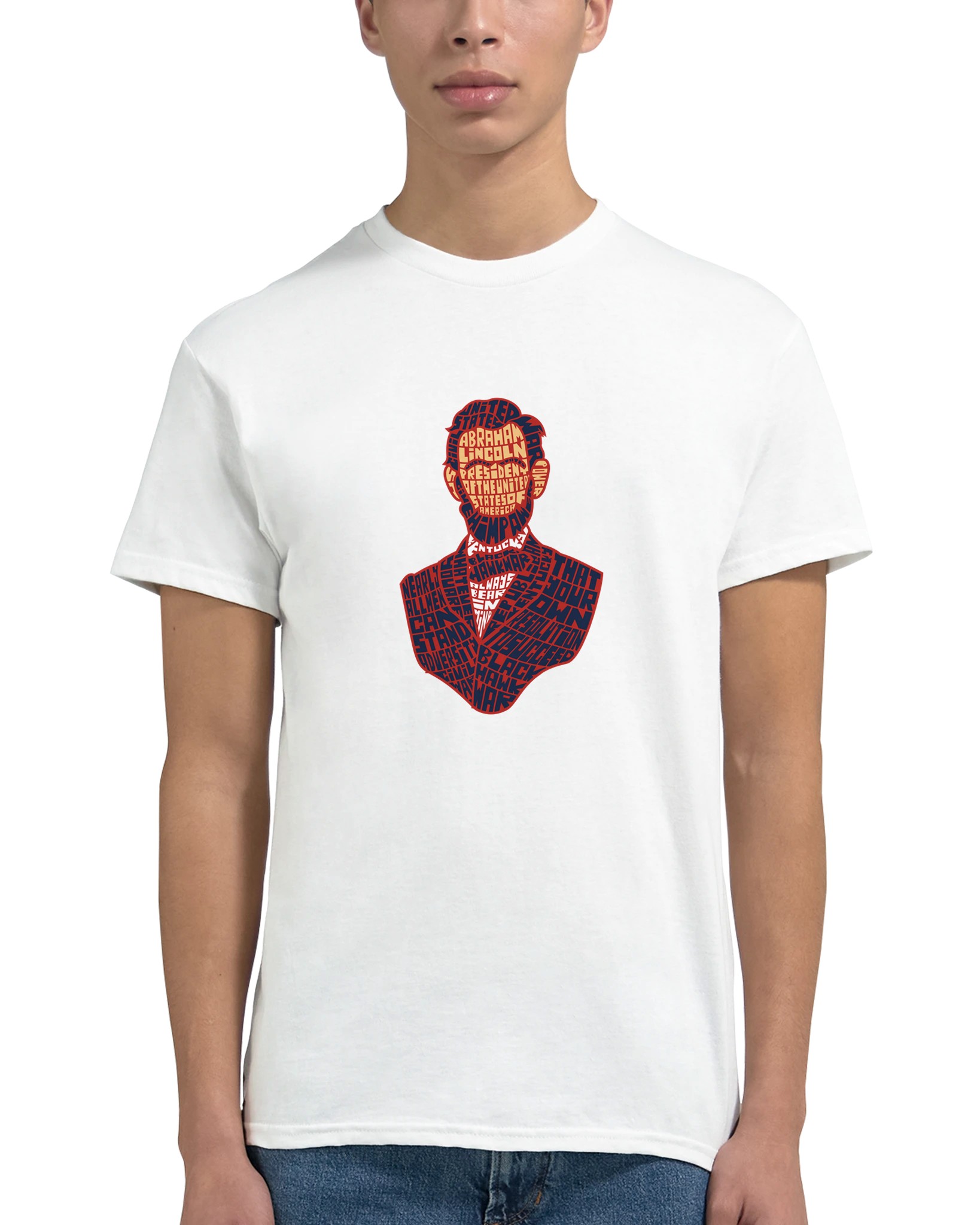 Abraham Lincoln Word Art T-shirt – Klassisk Unisex Bomullströja med Historisk Design