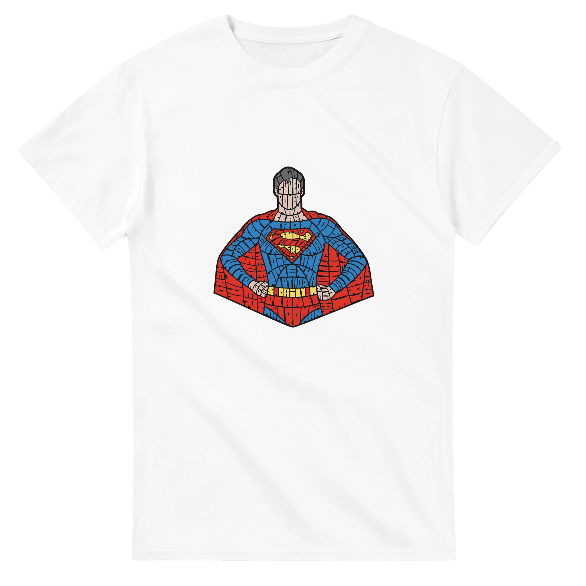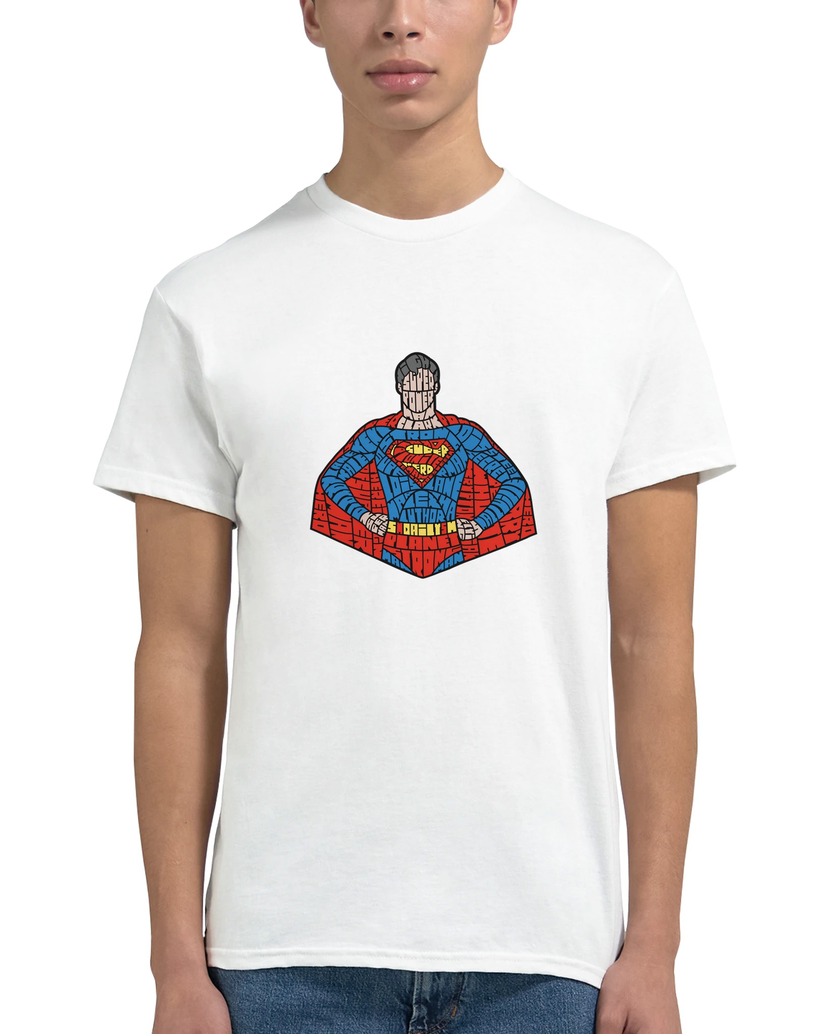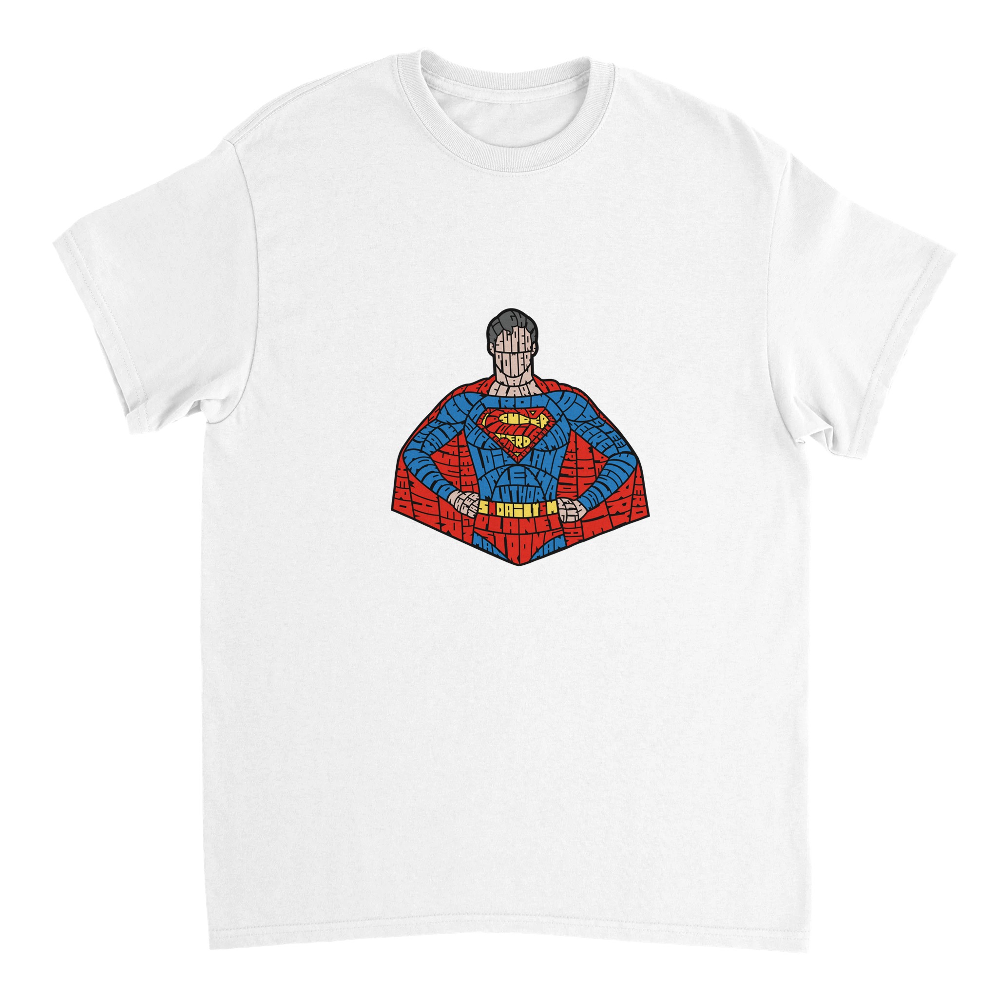 Stålmannen Typografi T-shirt – Hyllning till Världens Hjälte i Din Valda Färg