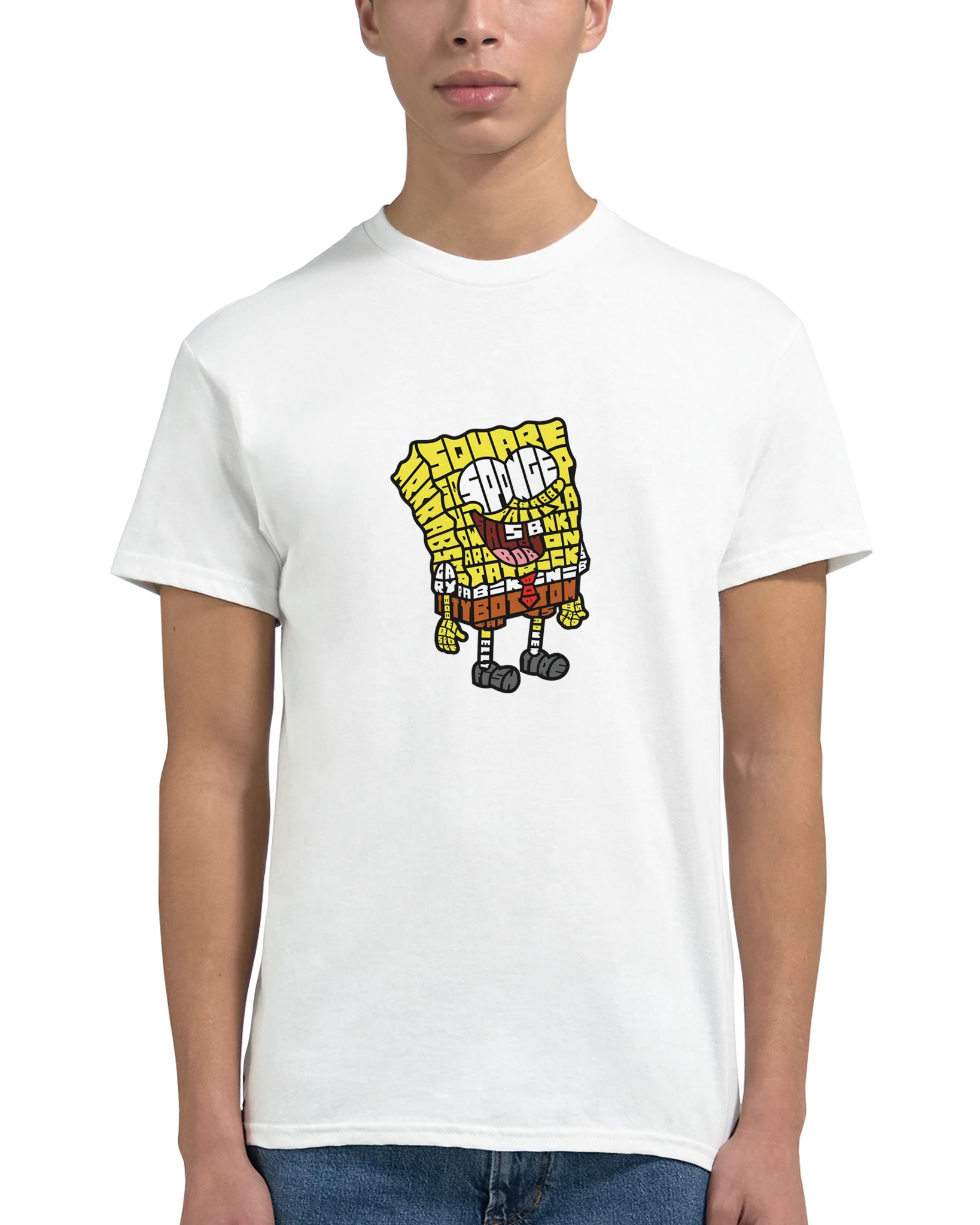 SpongeBob SquarePants Typographic T-shirt – Klassisk, Unisex, Slitstark Design för Fans i Alla Åldrar