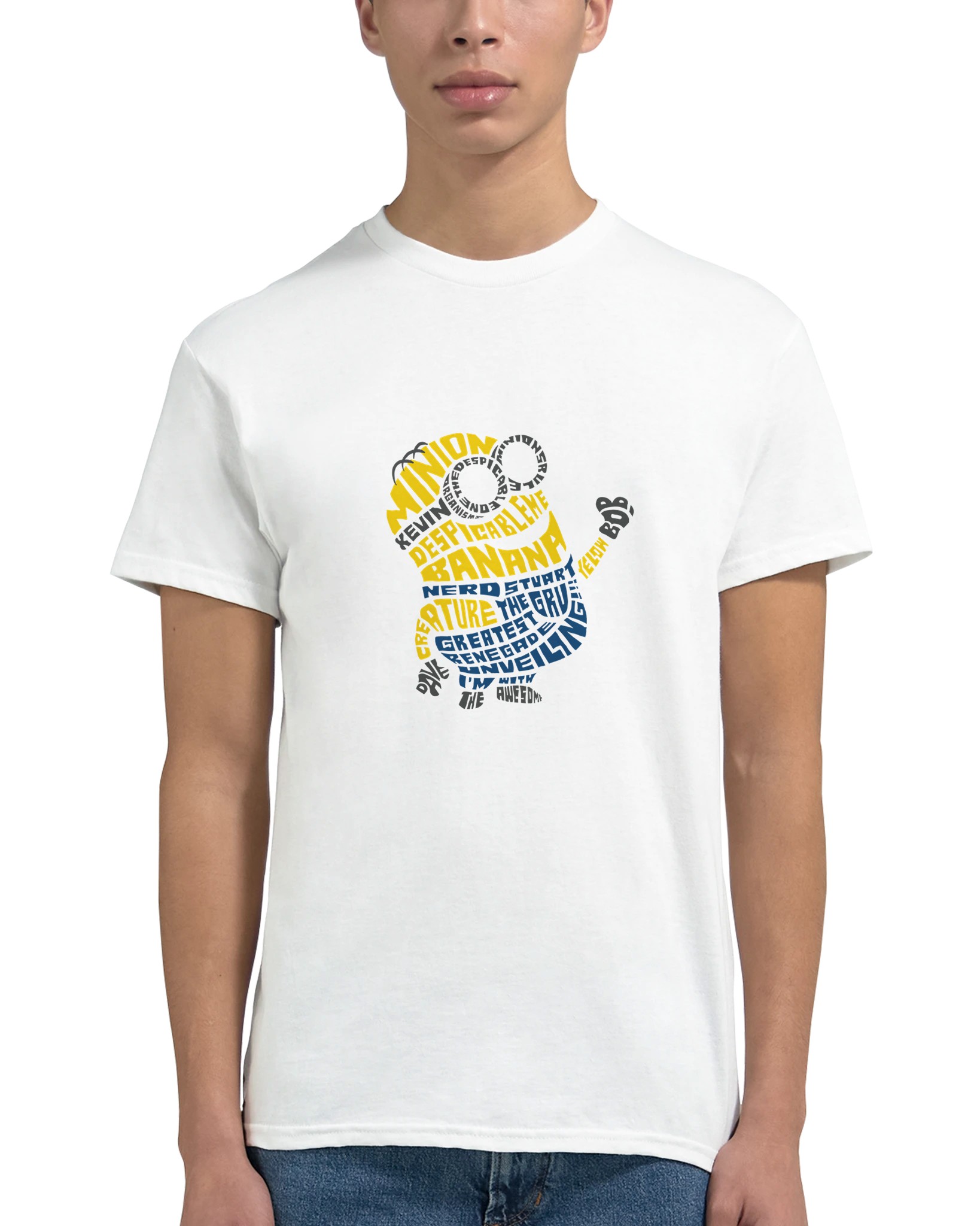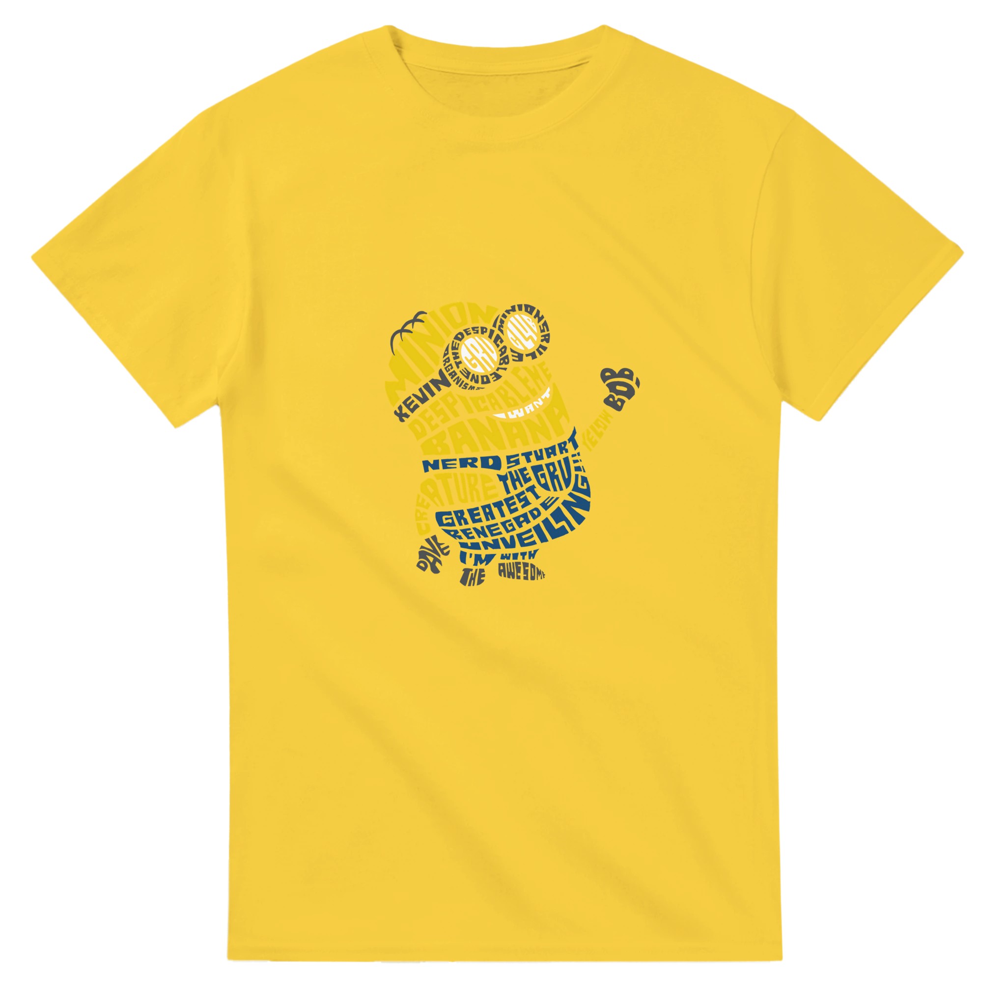 Minion-inspirerad Ordmoln T-shirt – Klassisk, Tålig Unisex-Design med Ikoniskt Gult och Blått Tryck