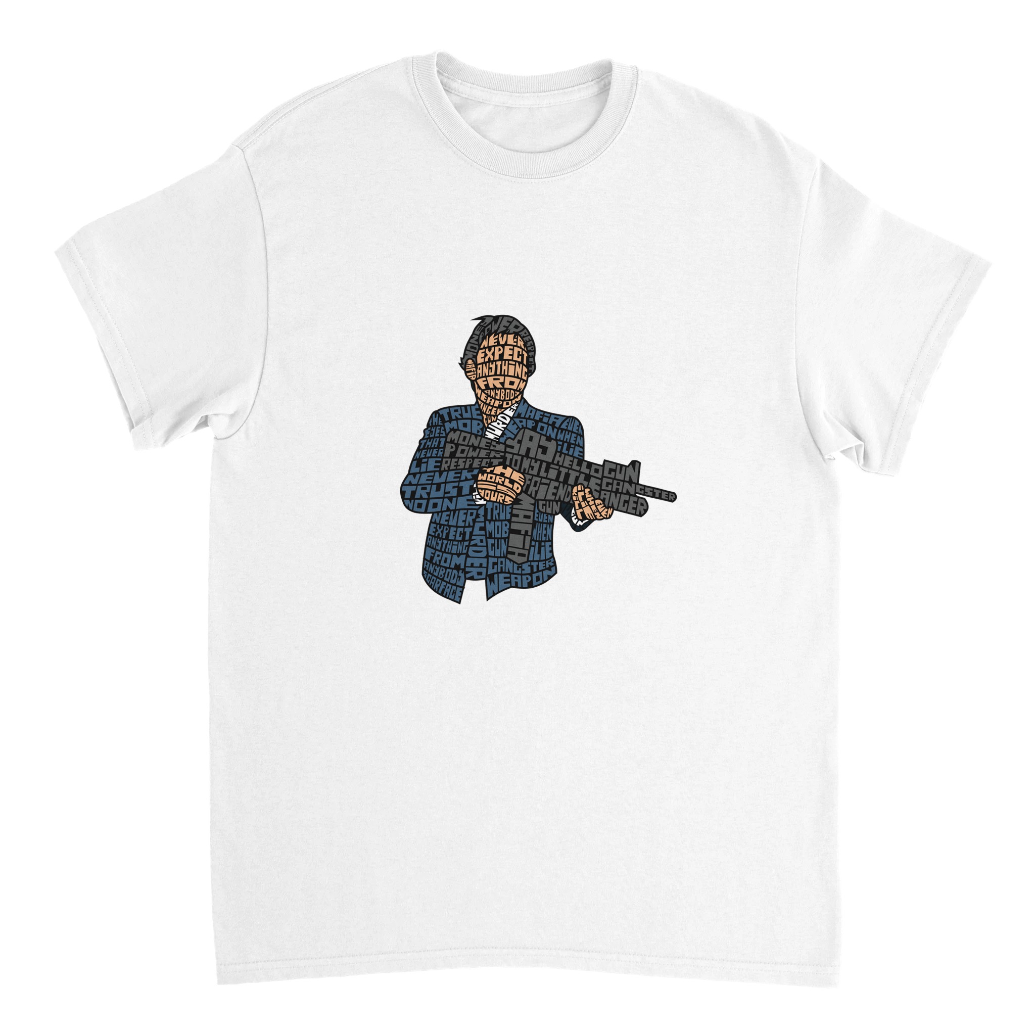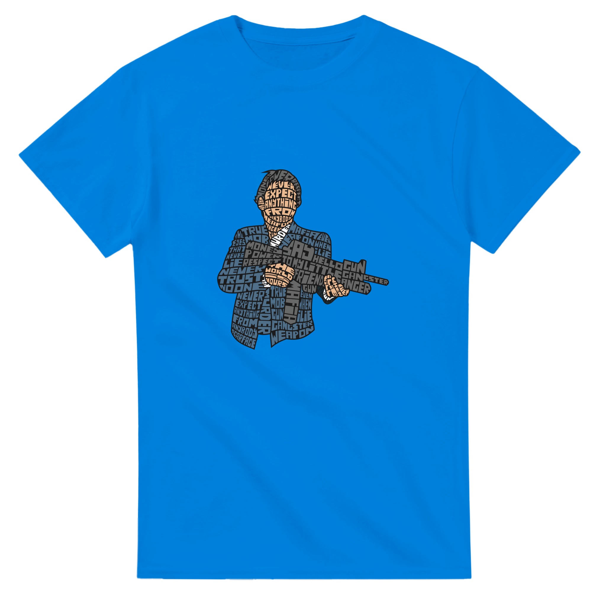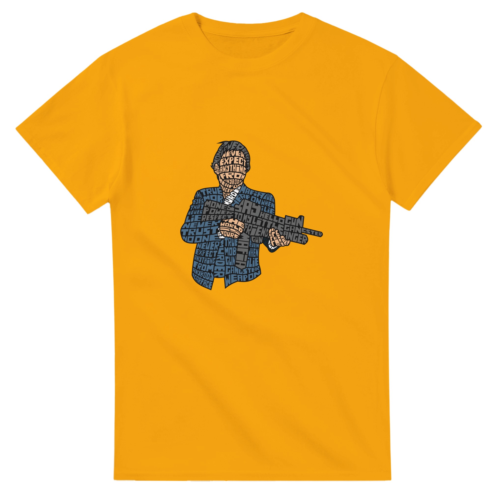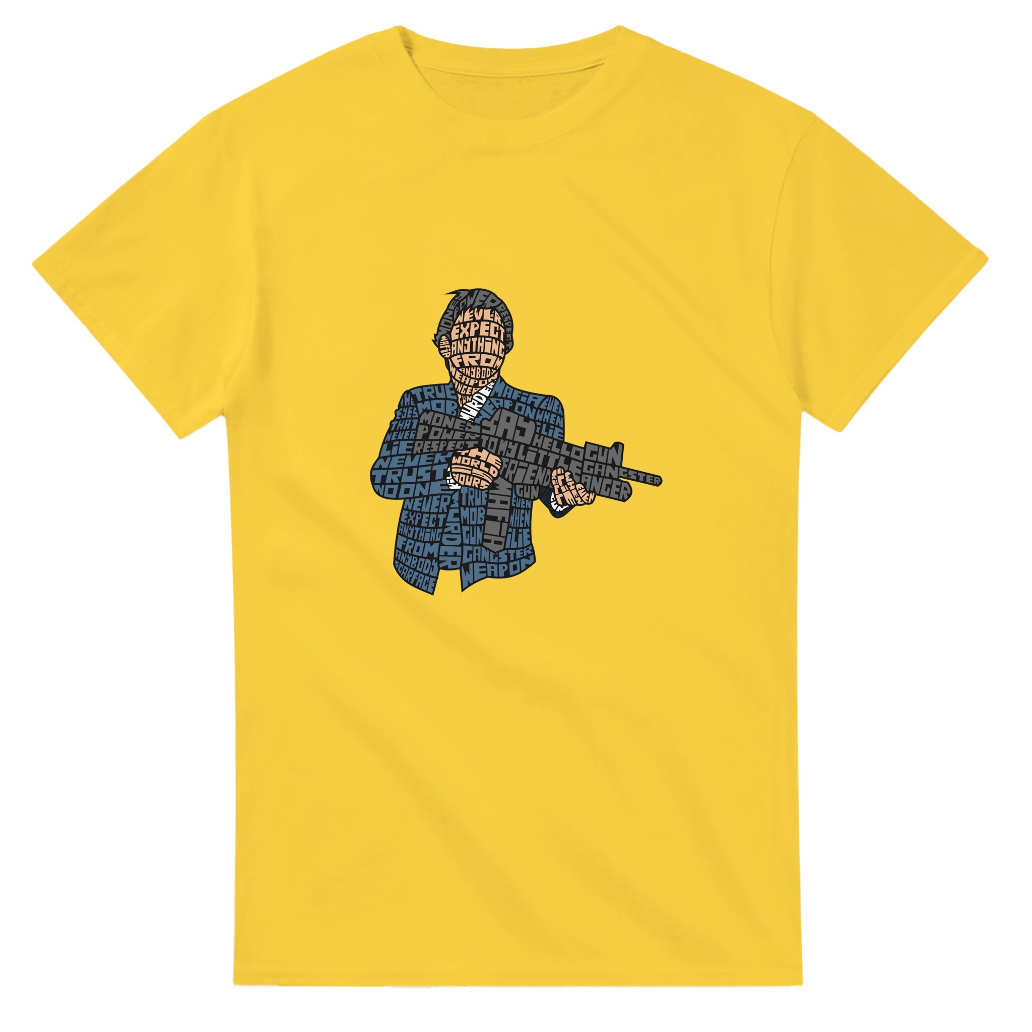 Gangster Quote Art T-shirt – Unik, Hållbar och Stilfull Design för Fans av Klassiska Filmer