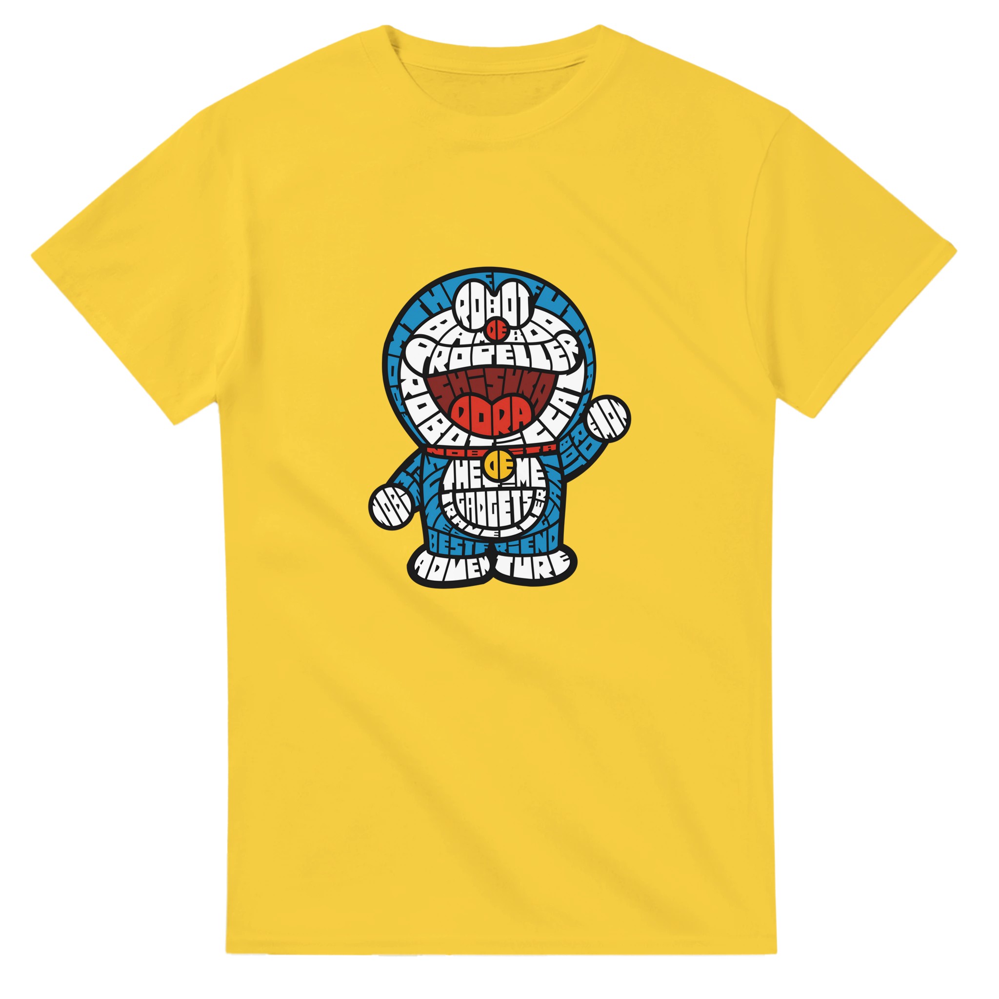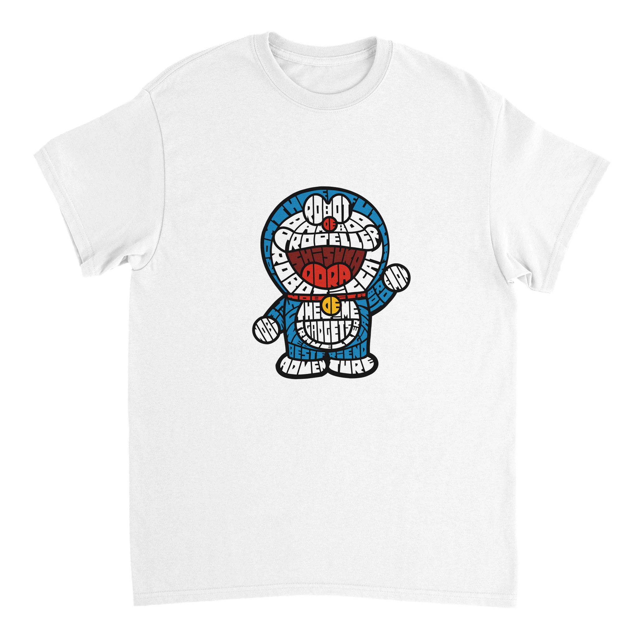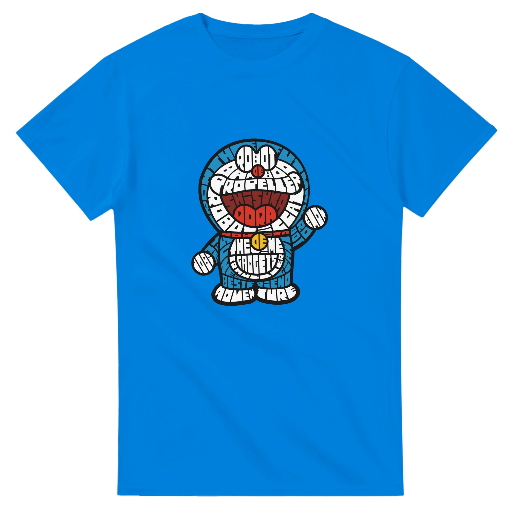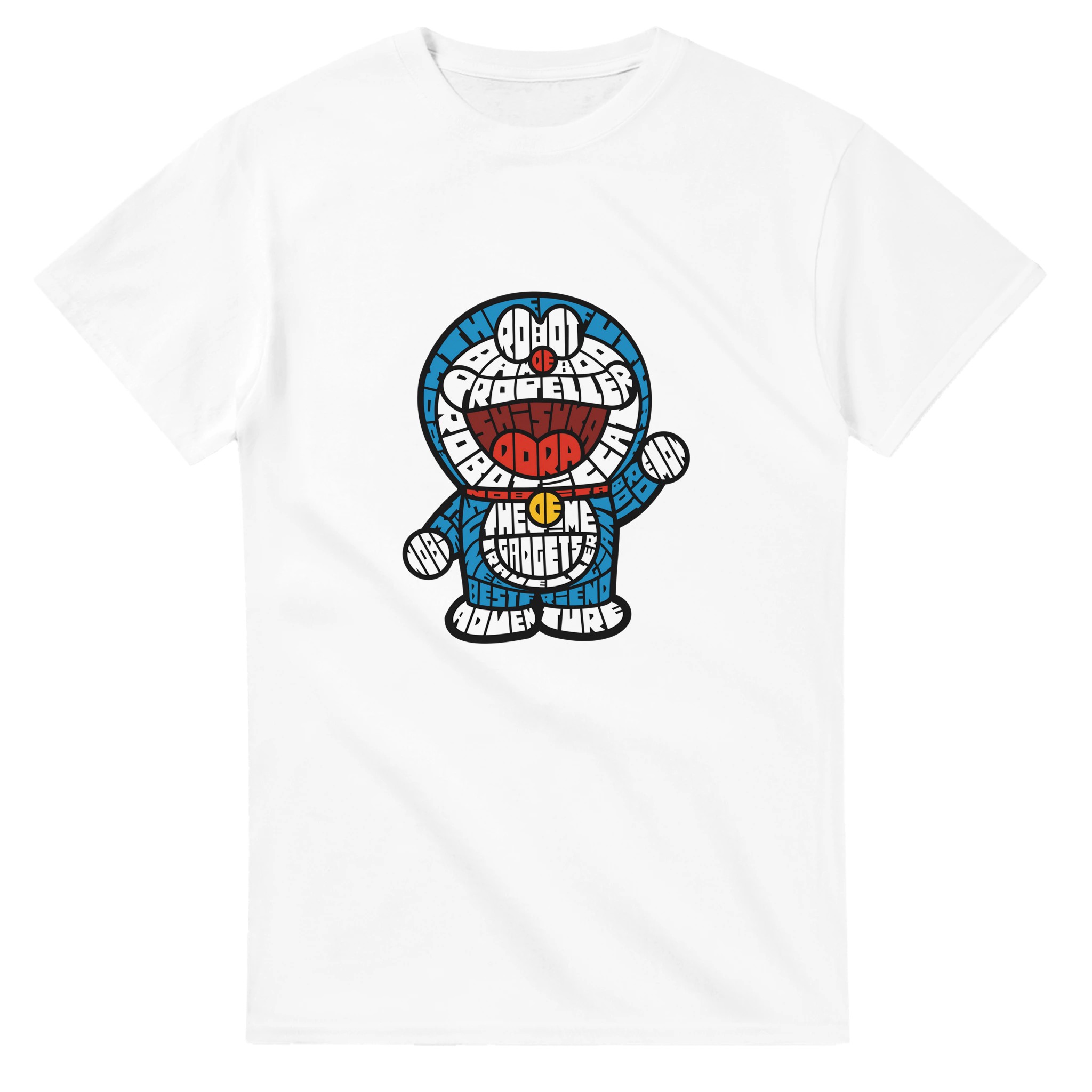 Doraemon Typographic T-Shirt – Unik Manga Konst, Unisex & Slitstark Design för Anime-älskare