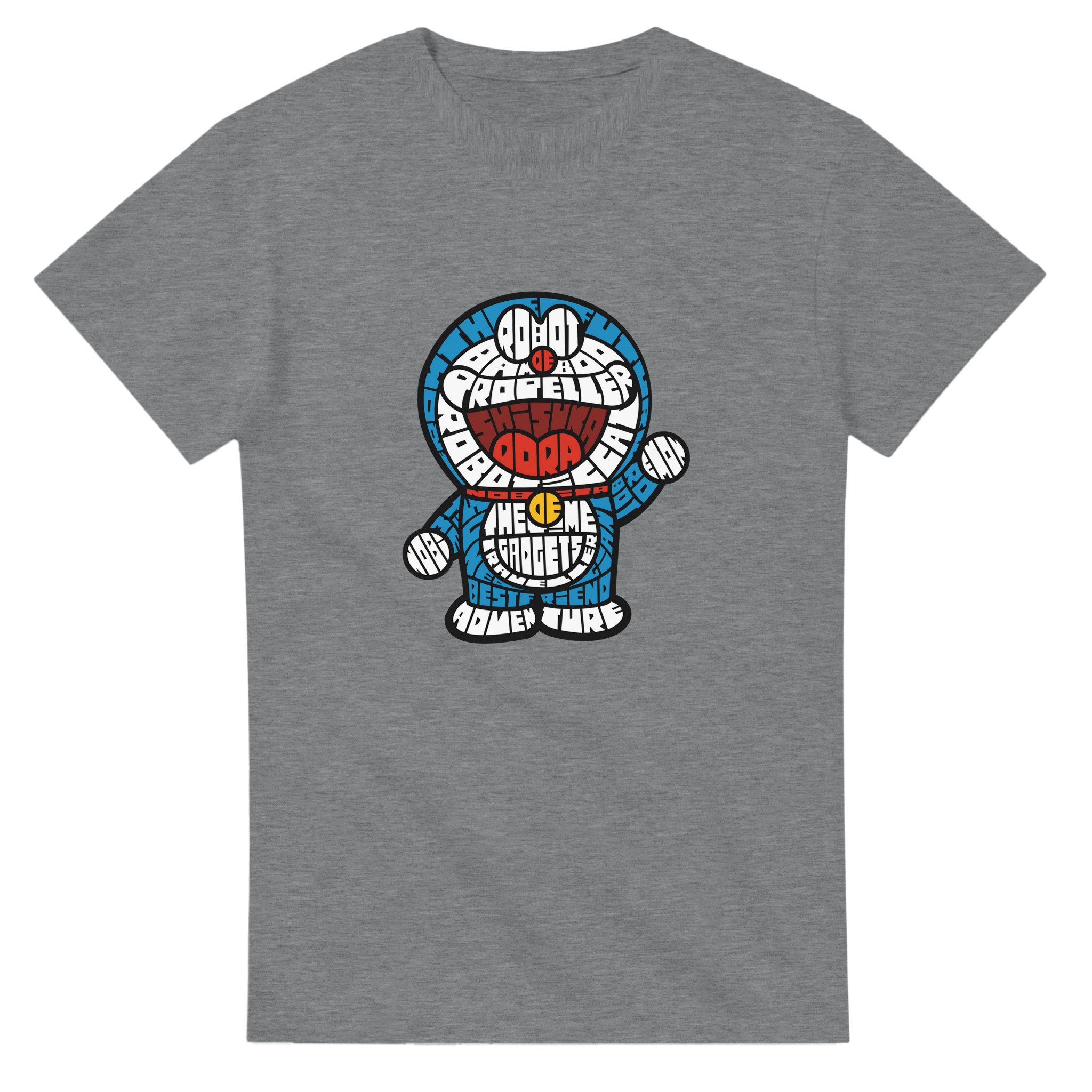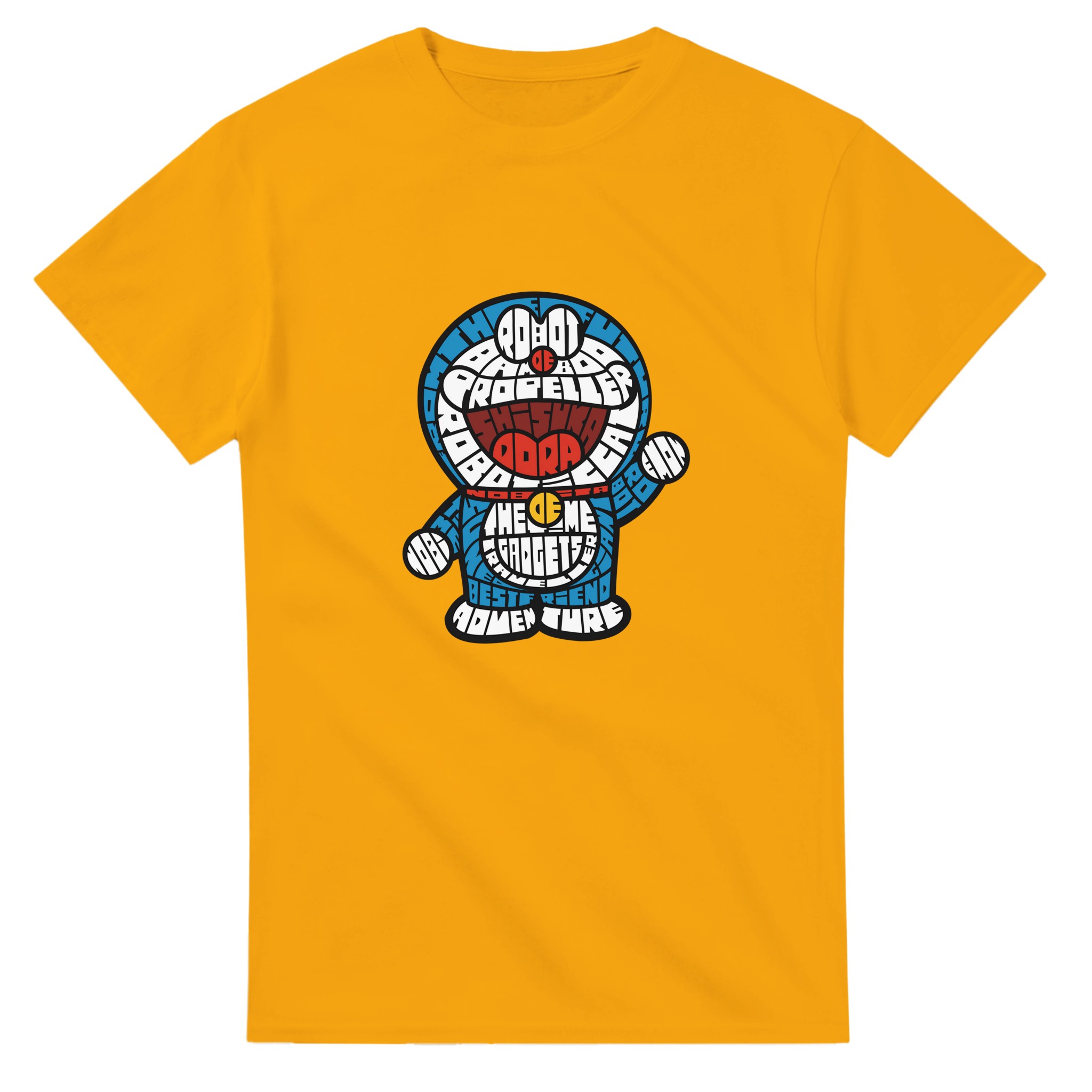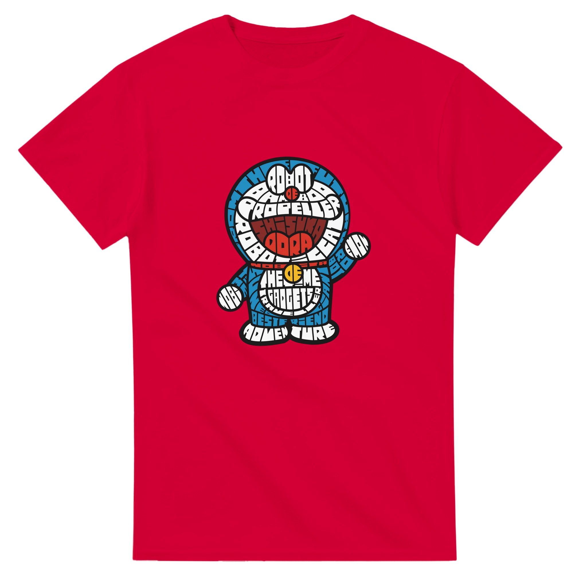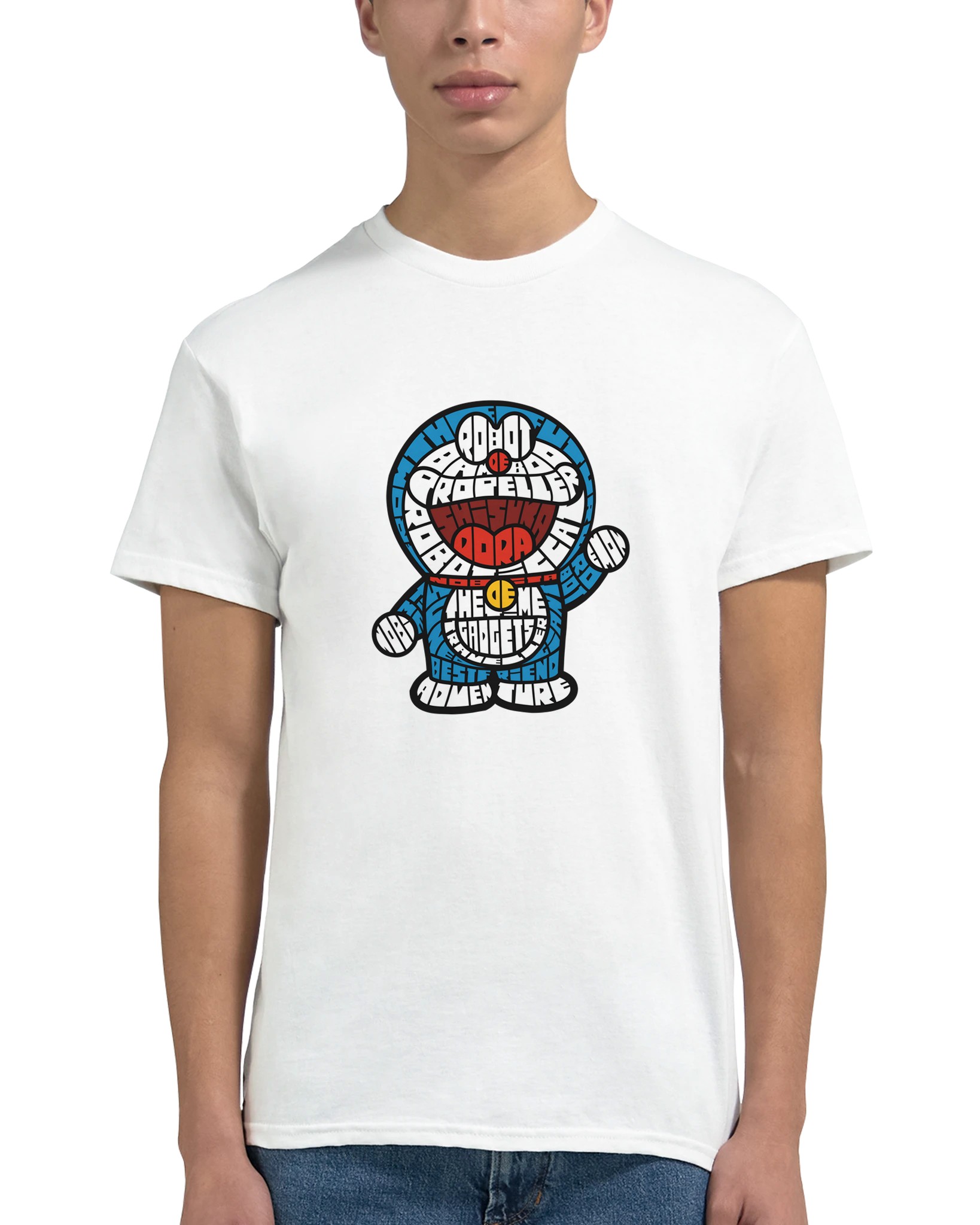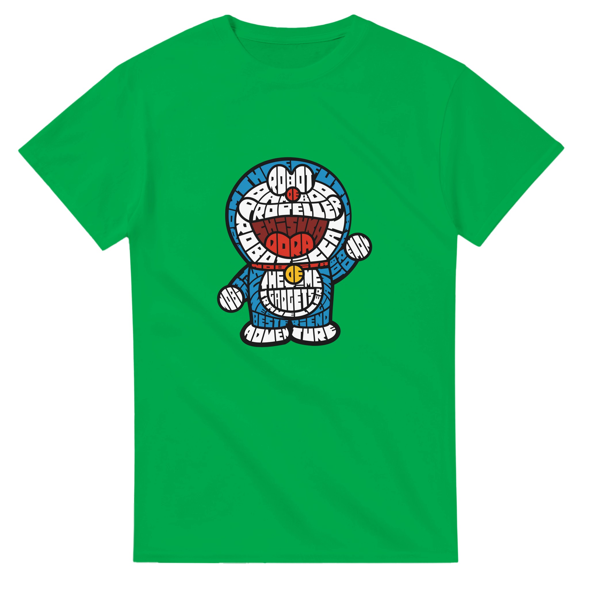 Doraemon Typographic T-Shirt – Unik Manga Konst, Unisex & Slitstark Design för Anime-älskare