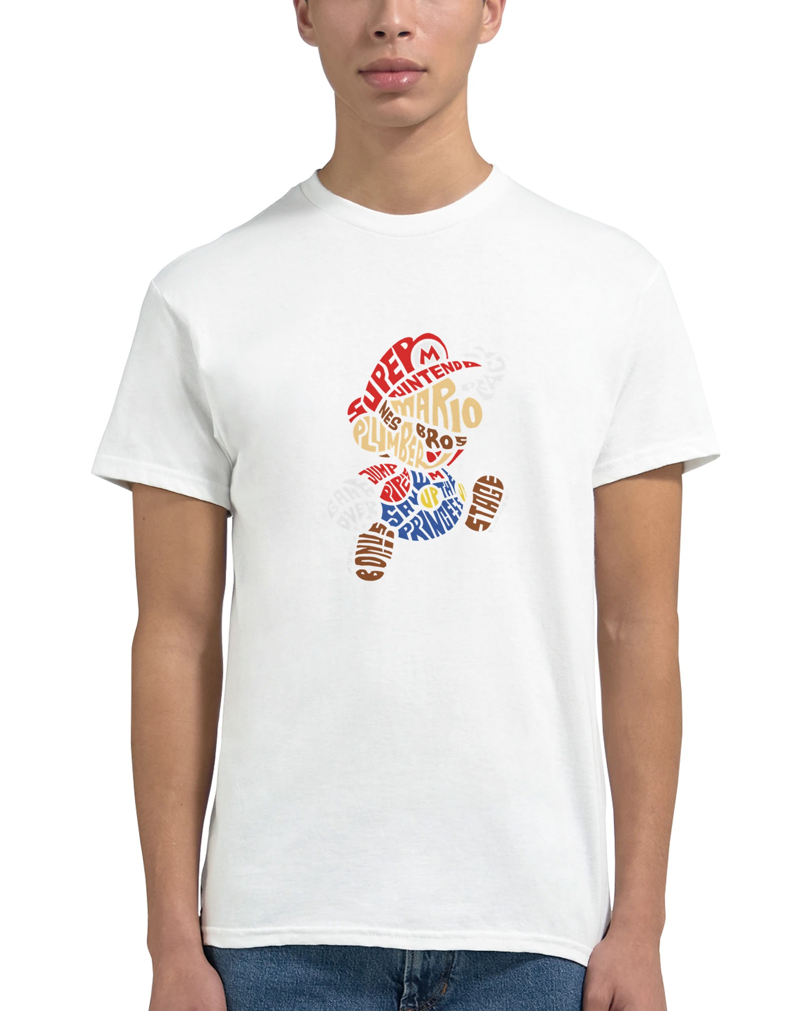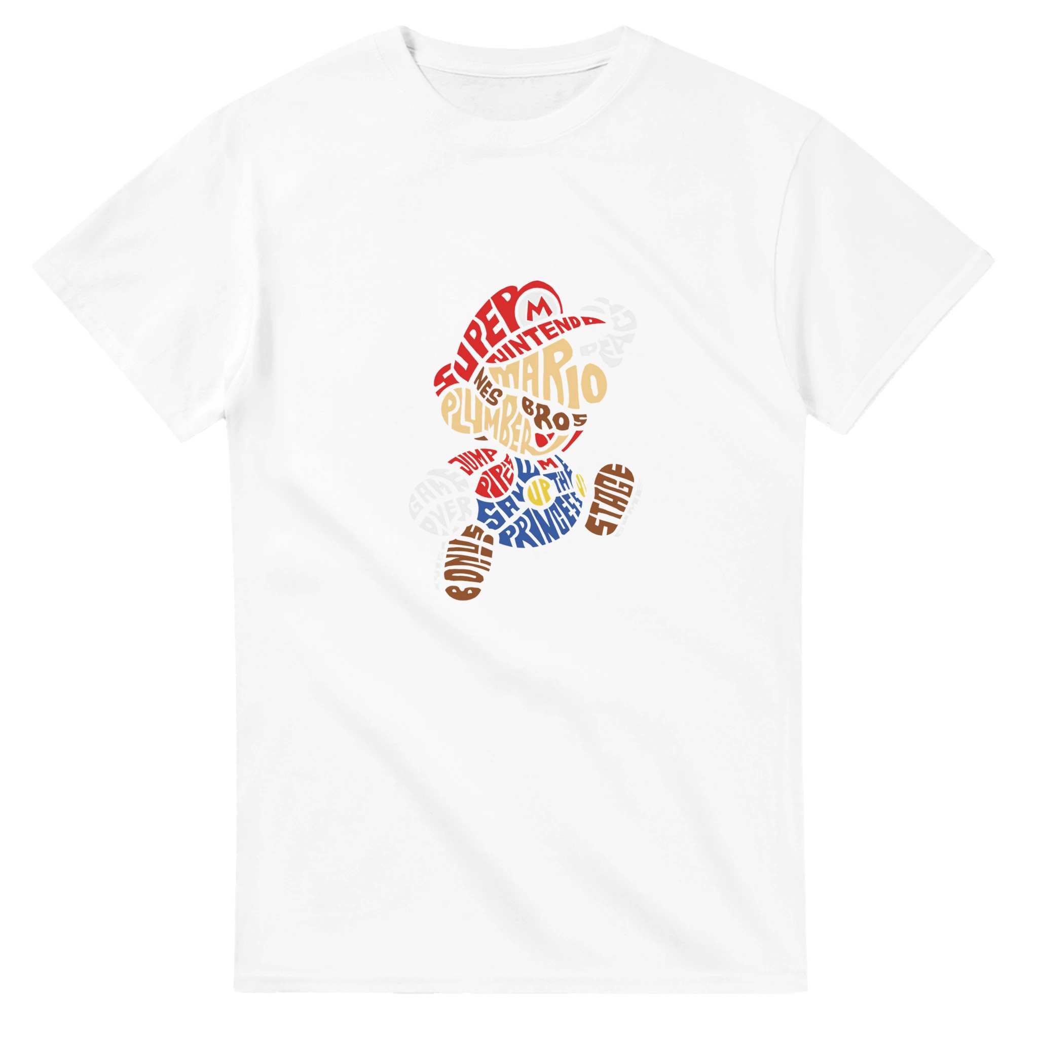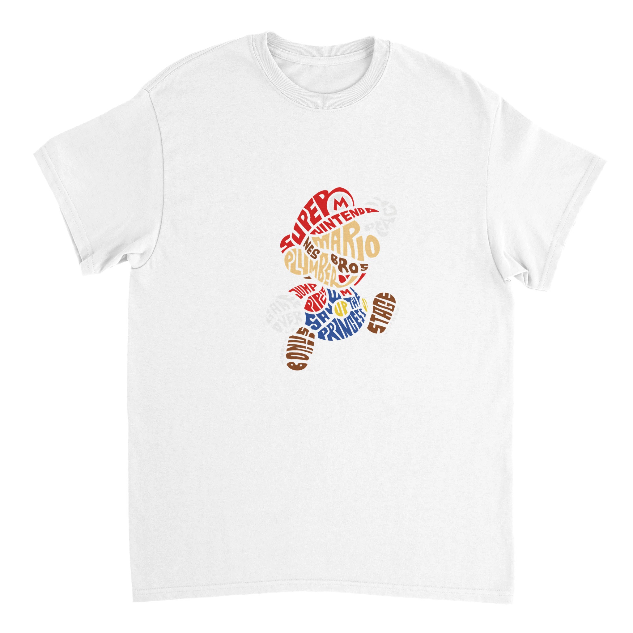 Super Mario Bros. Word Art T-shirt – Klassisk, Tålig & Unisex för Spelentusiasten