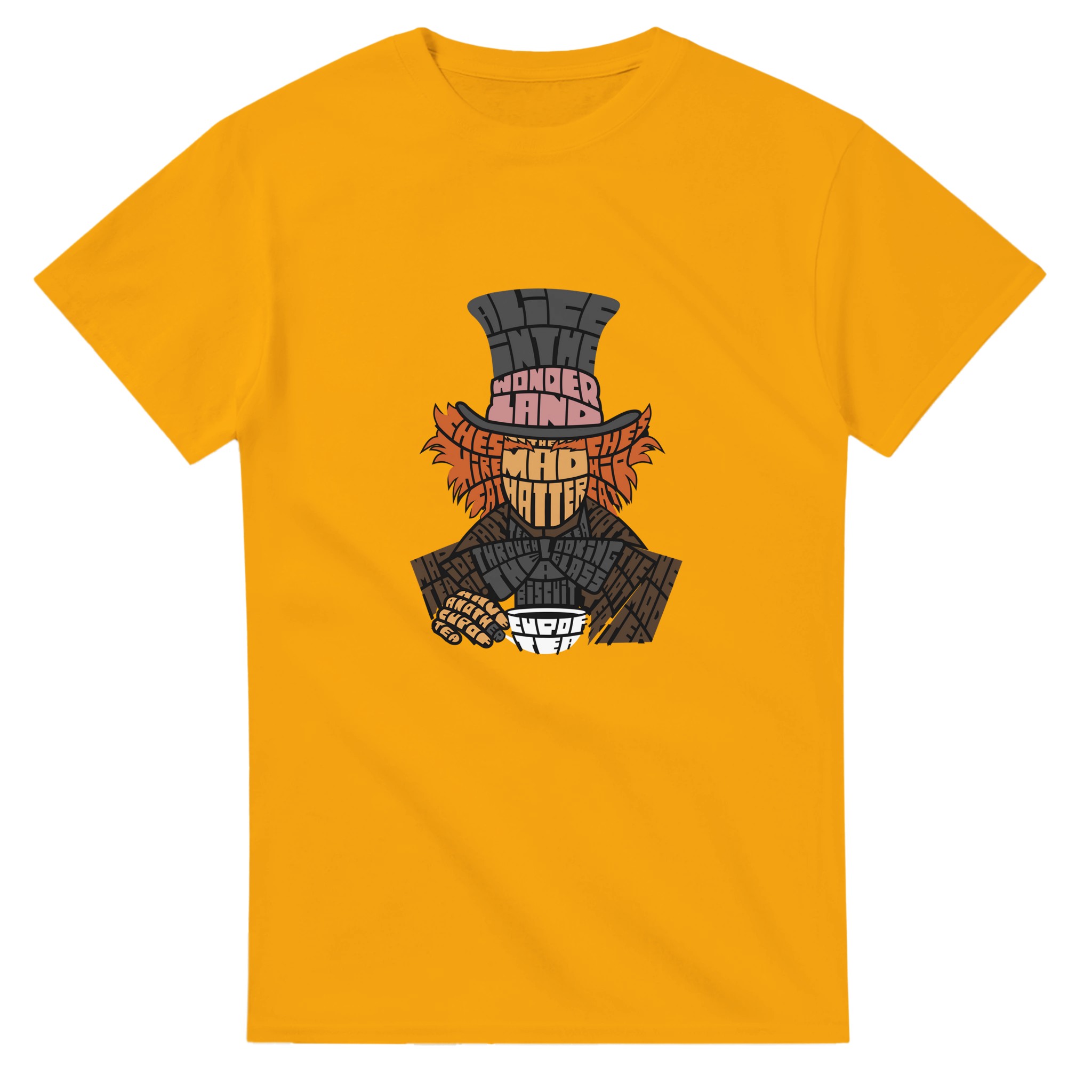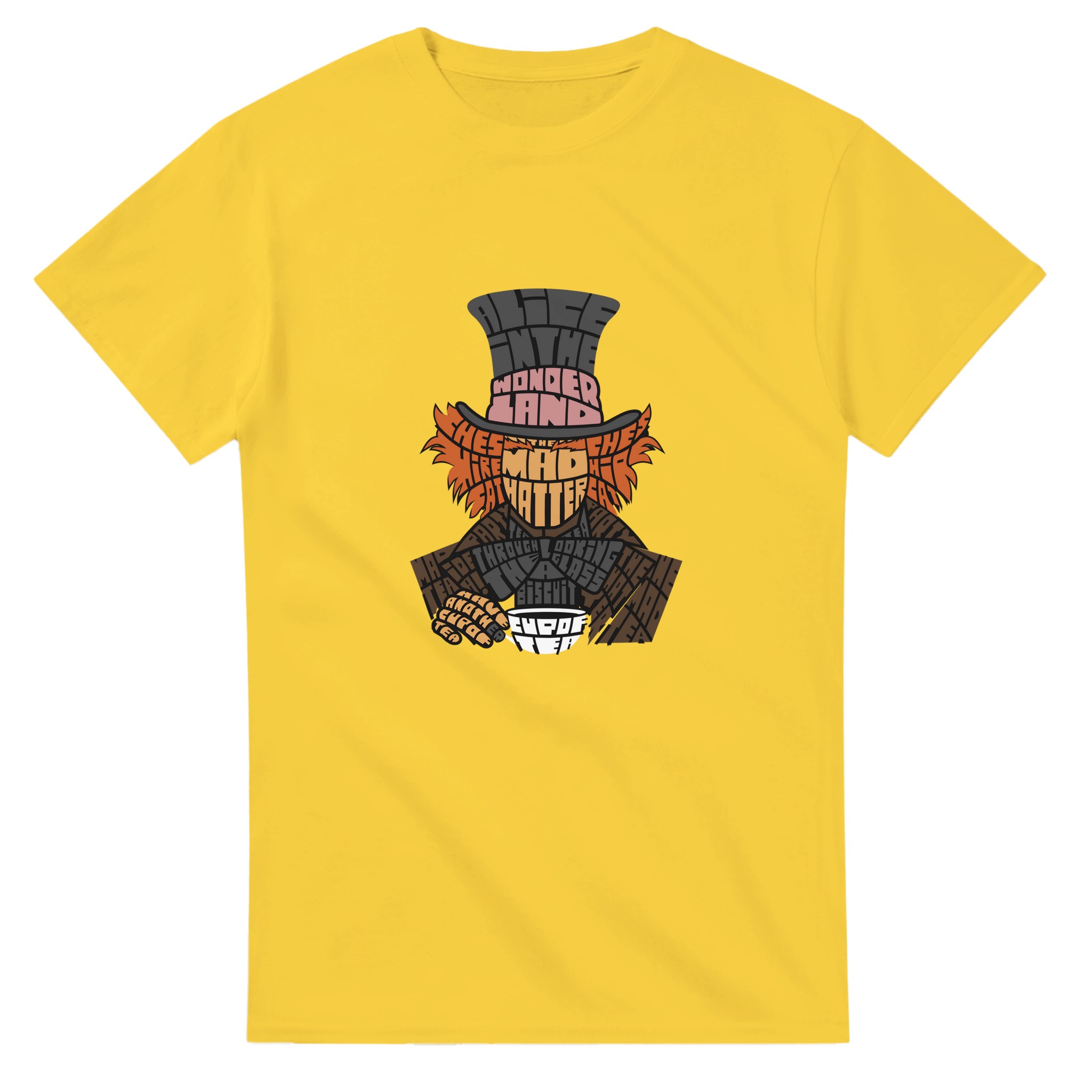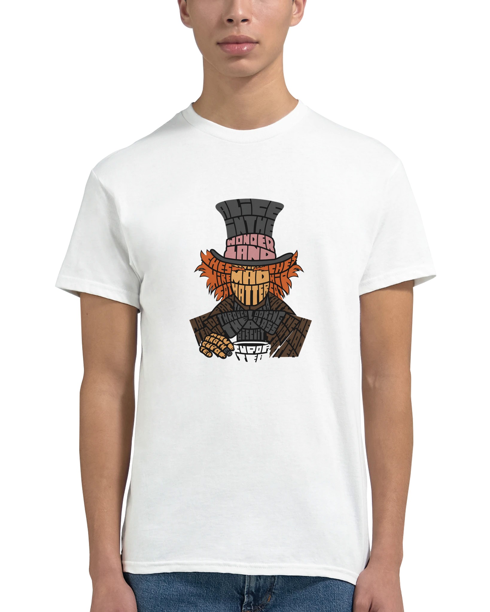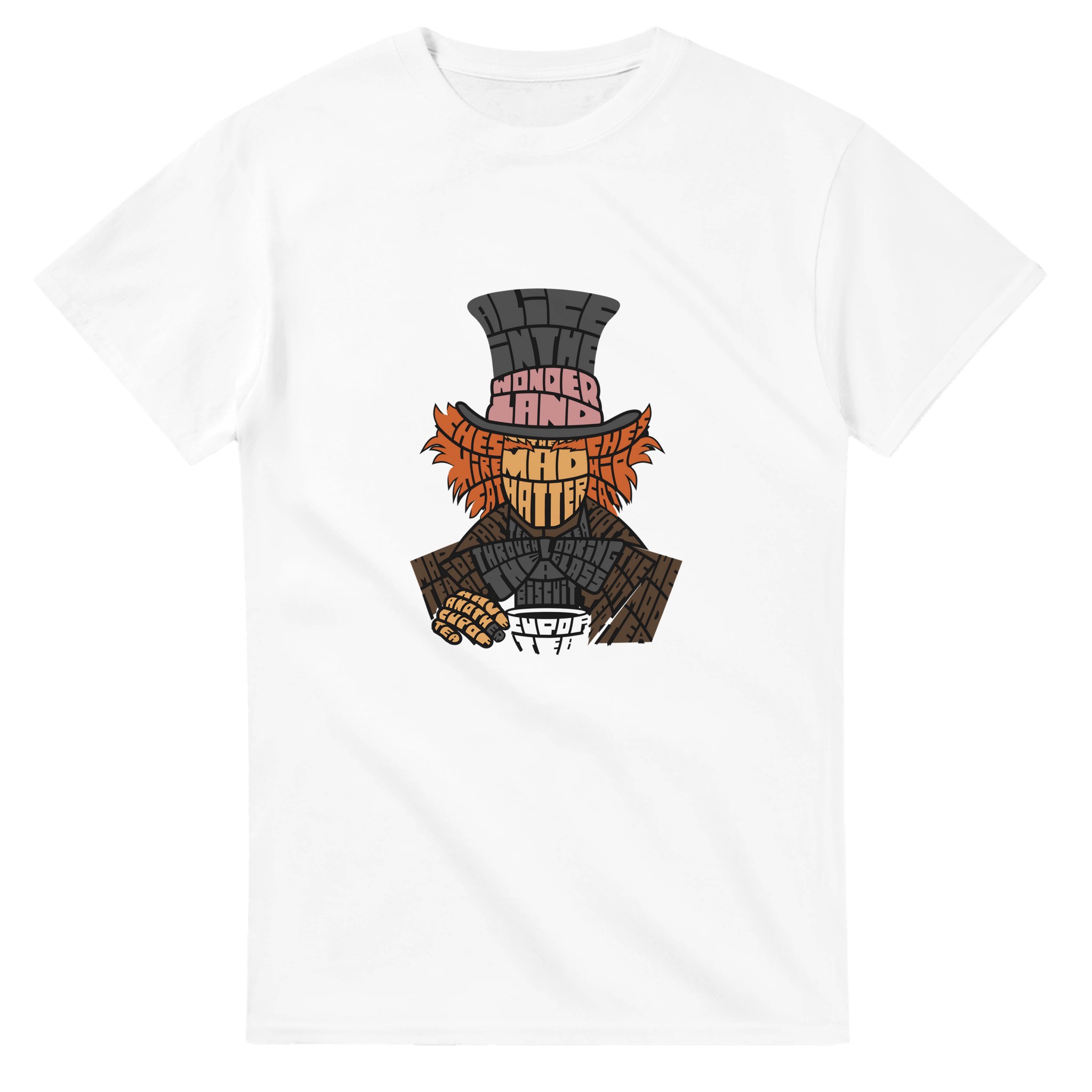 Mad Hatter Typografi T-shirt – Klassisk Bomull, Unisex Design för Alice i Underlandet-fans