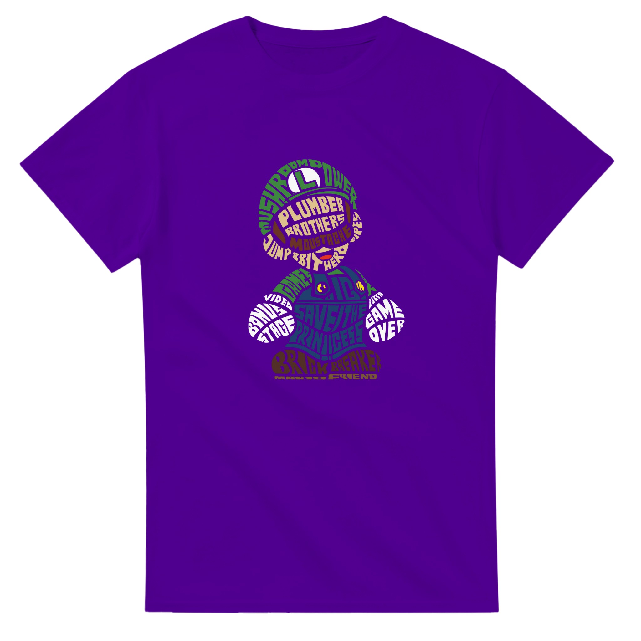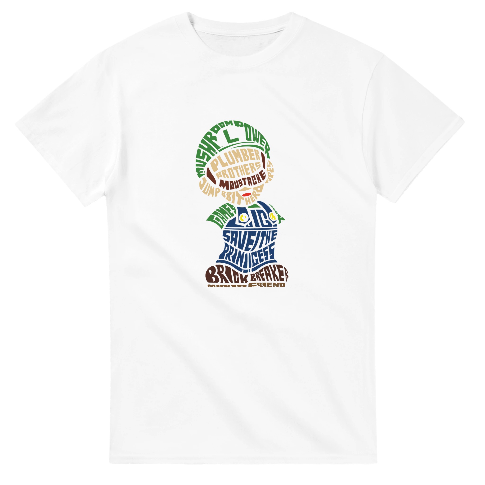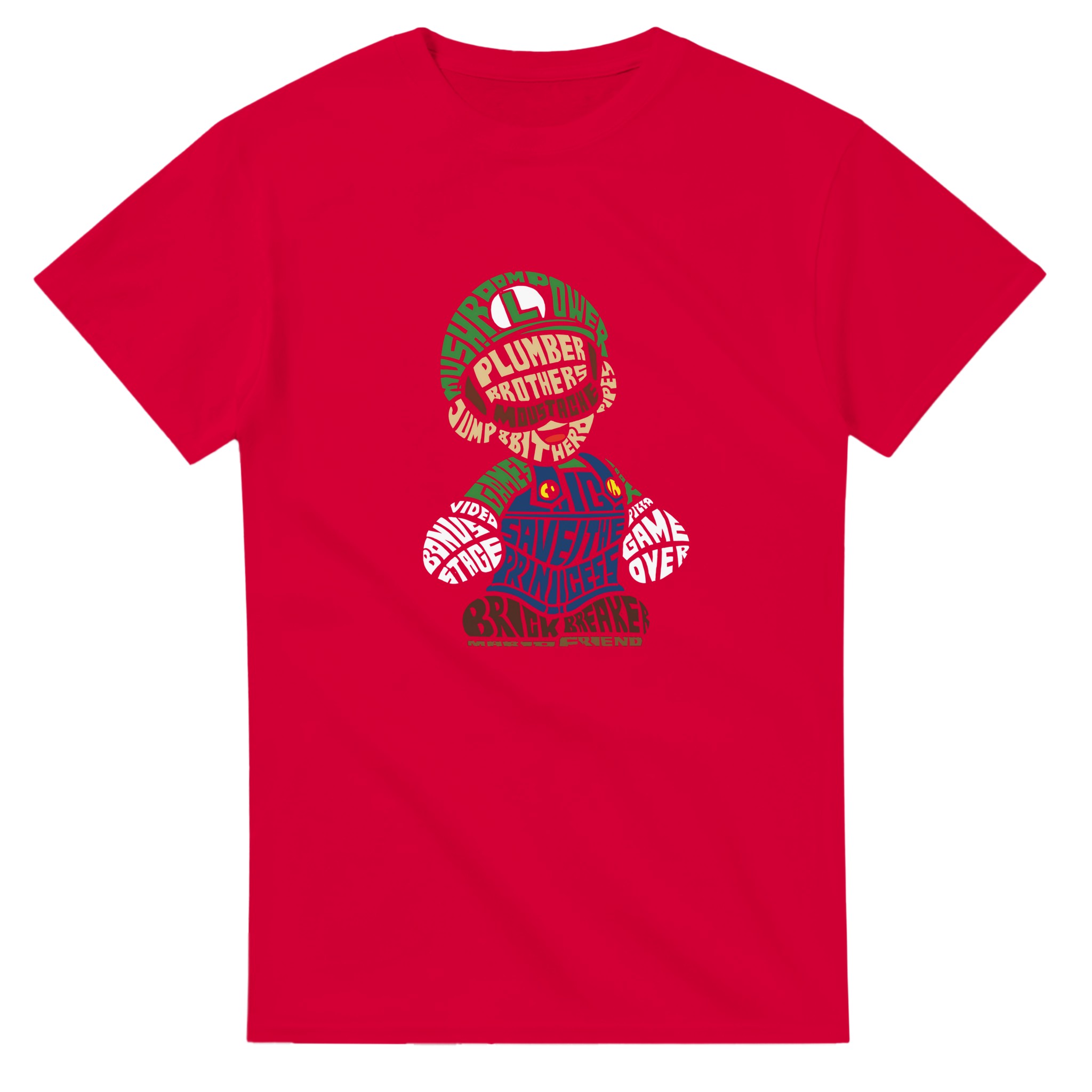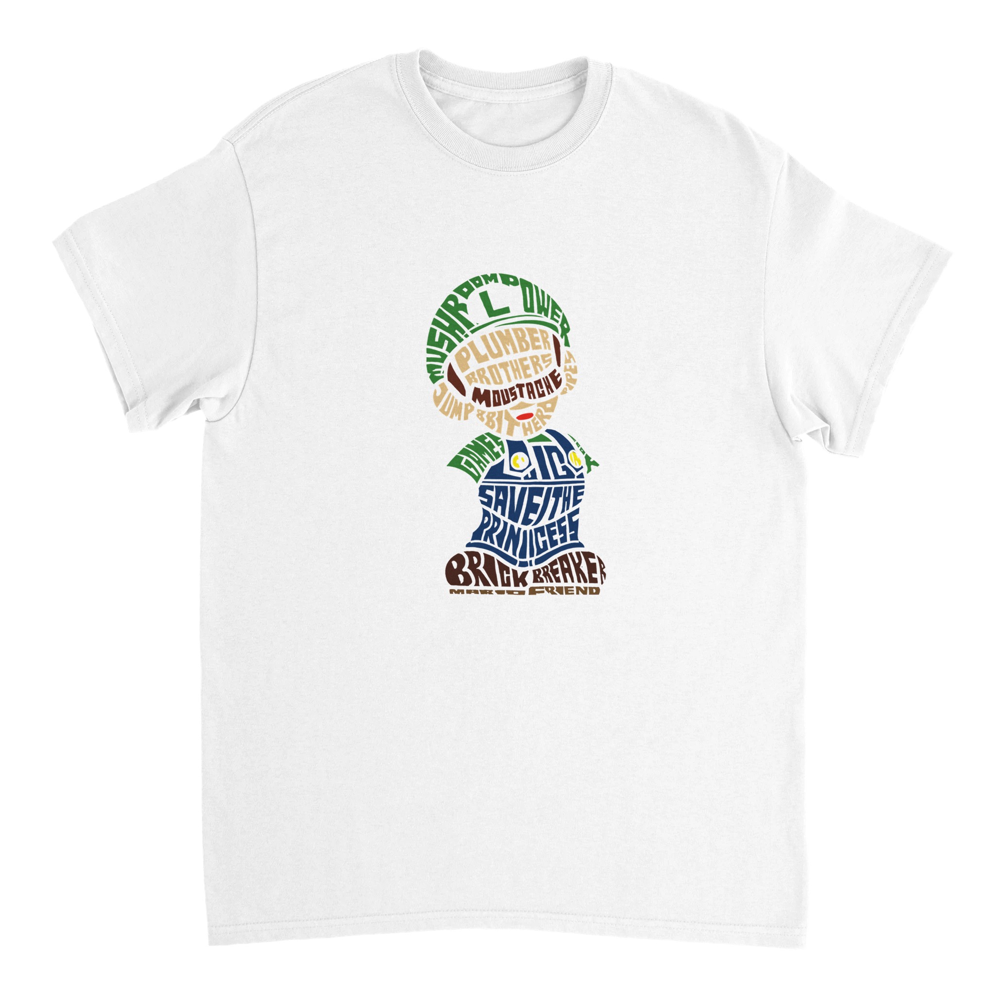 Retro Gaming Mario Bros. Word Art T-shirt – Klassisk, Unisex & Slitstark Design för Spelfantaster