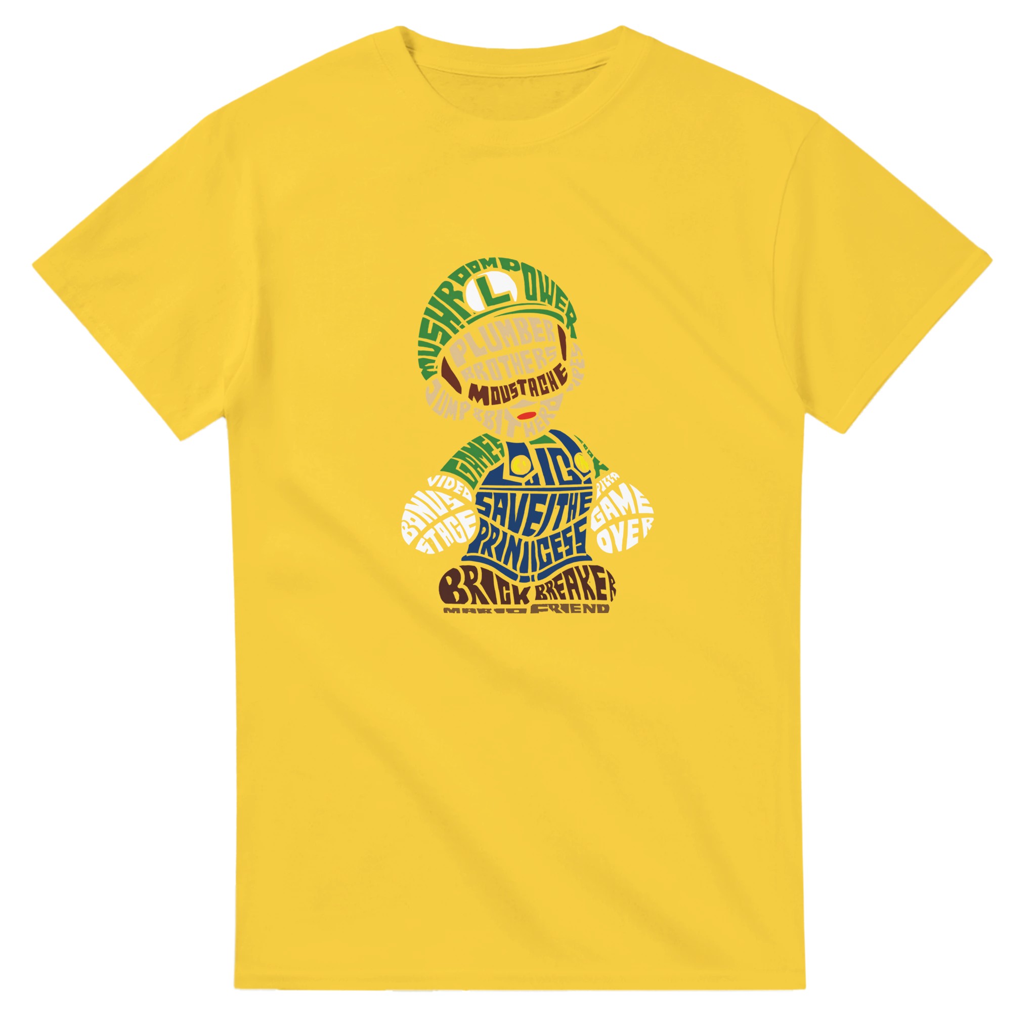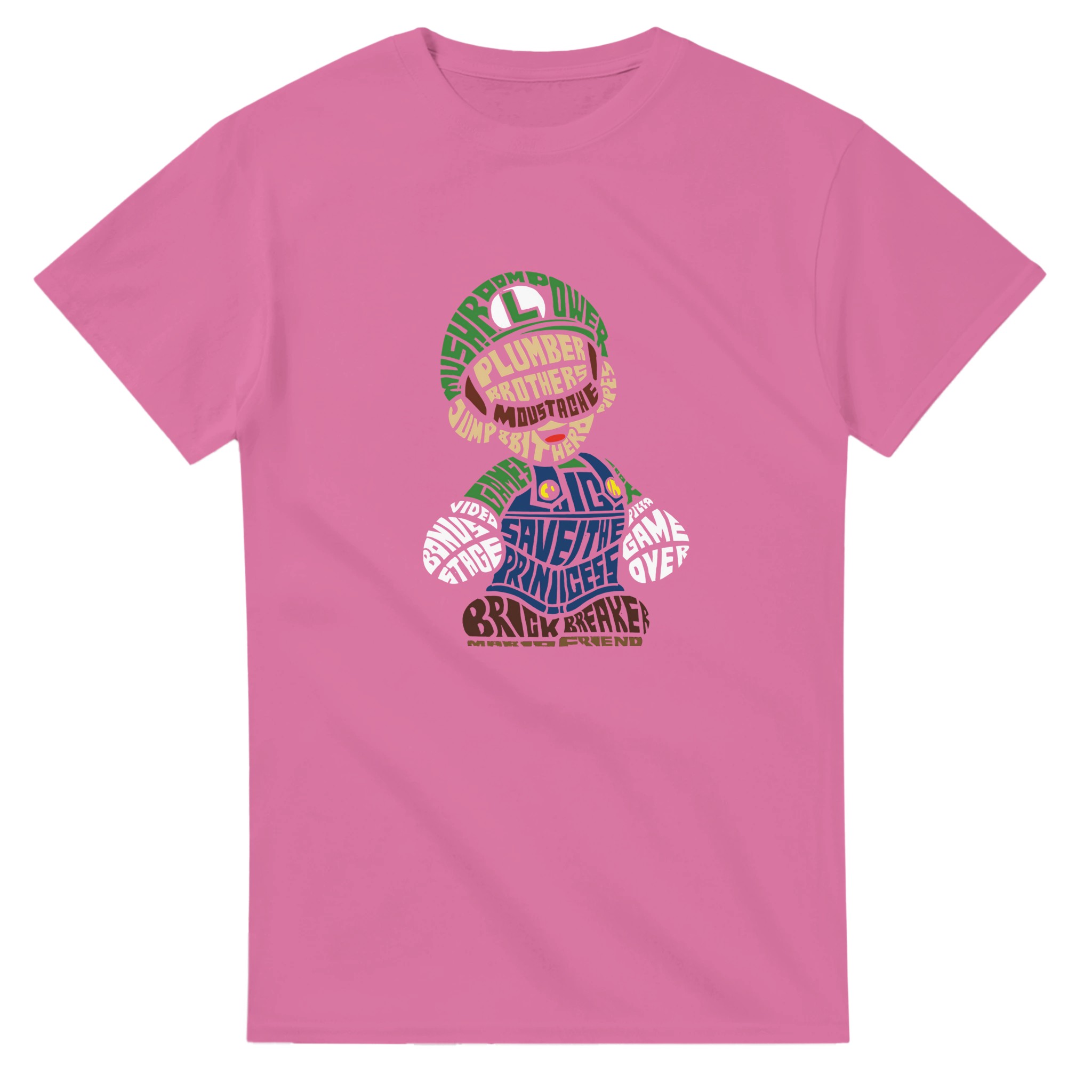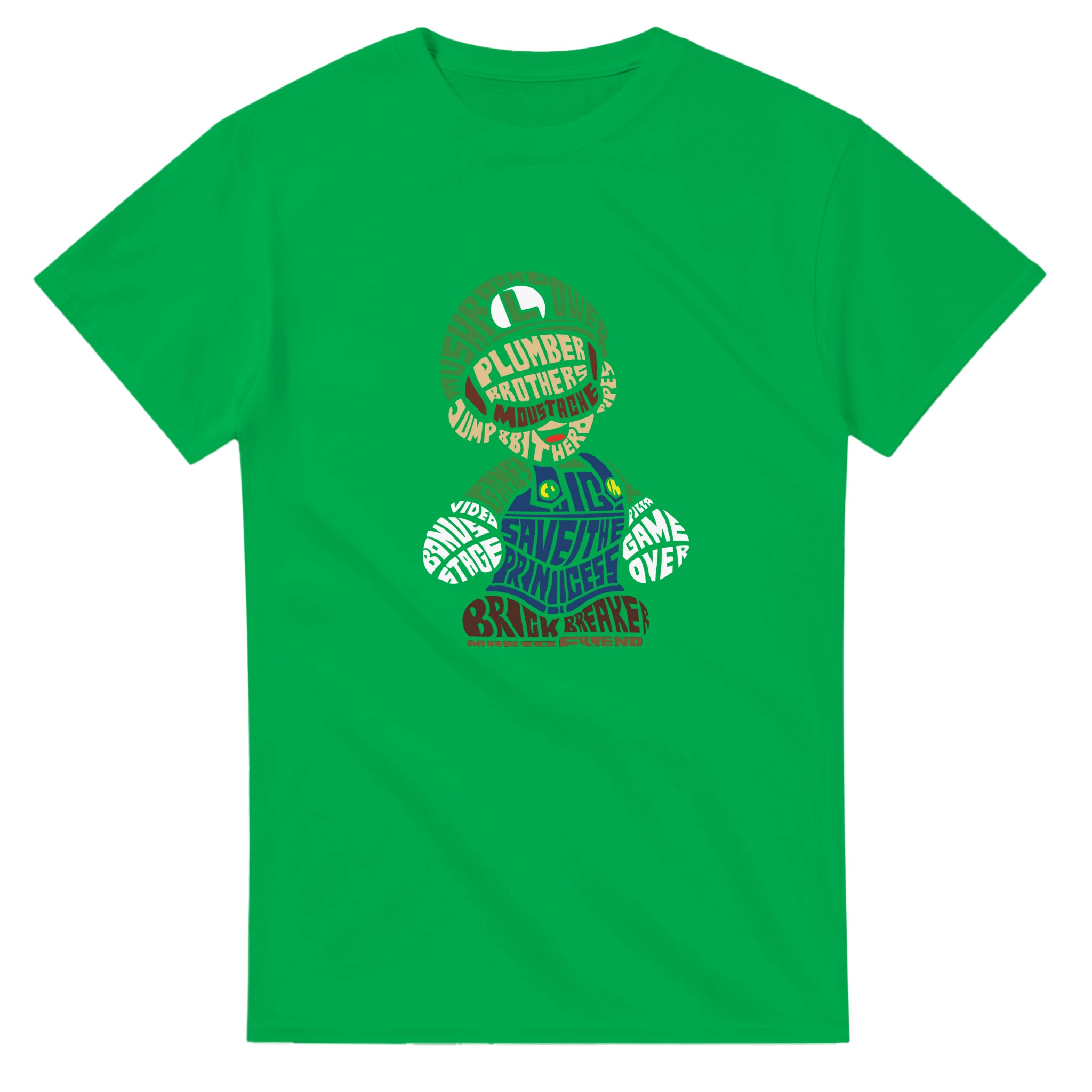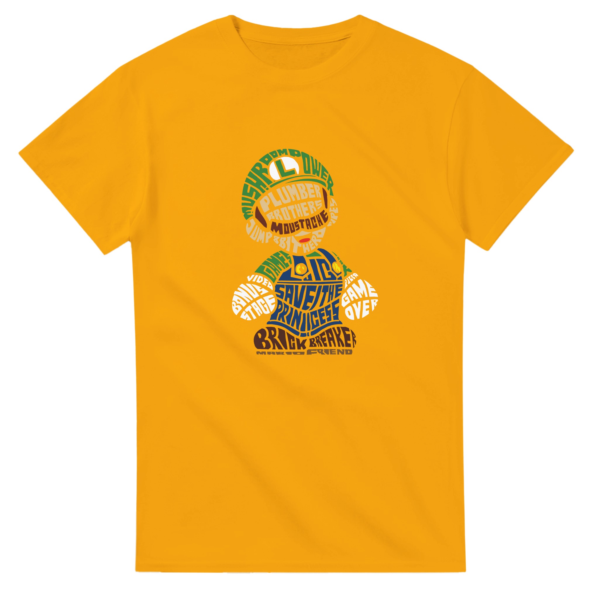 Retro Gaming Mario Bros. Word Art T-shirt – Klassisk, Unisex & Slitstark Design för Spelfantaster