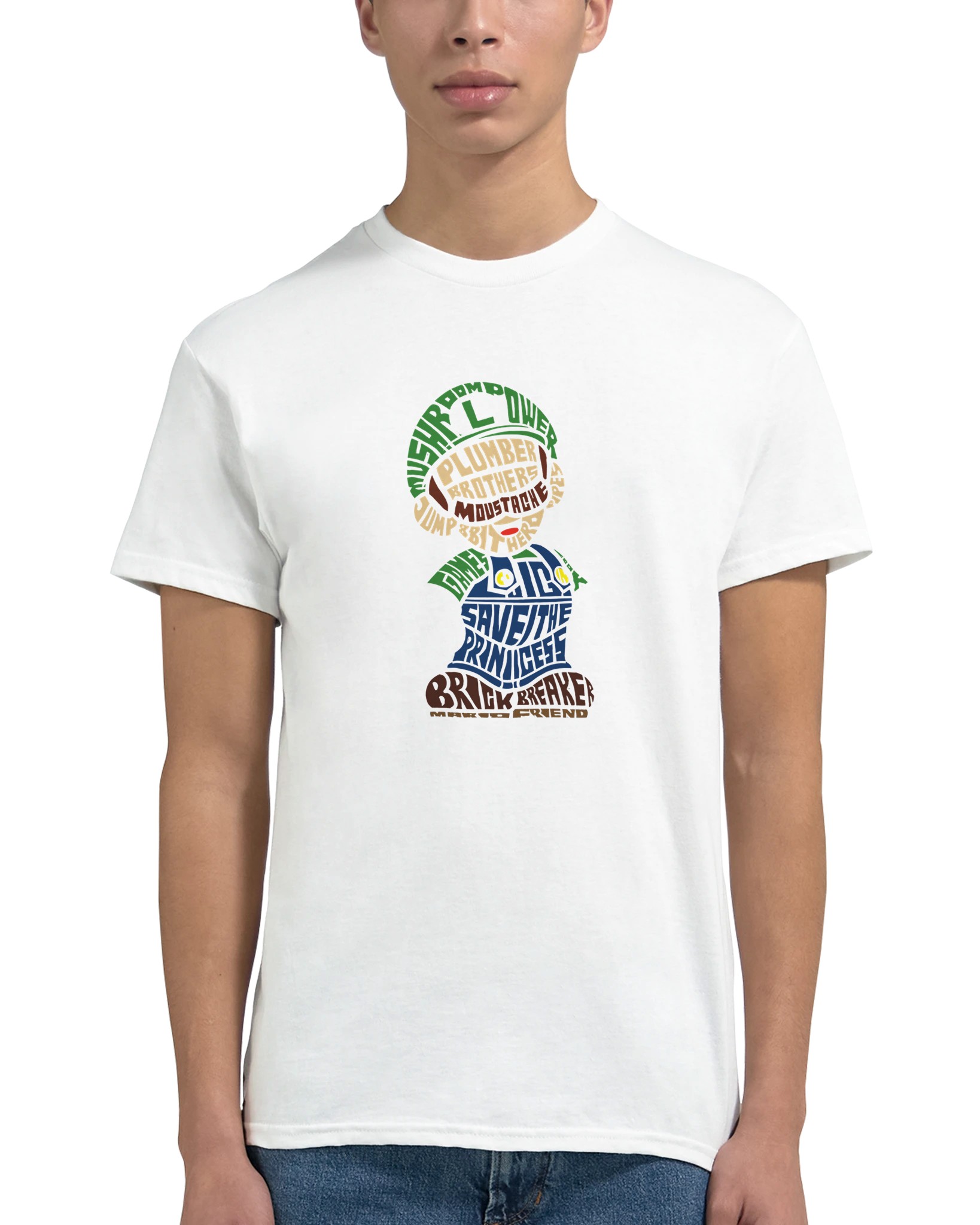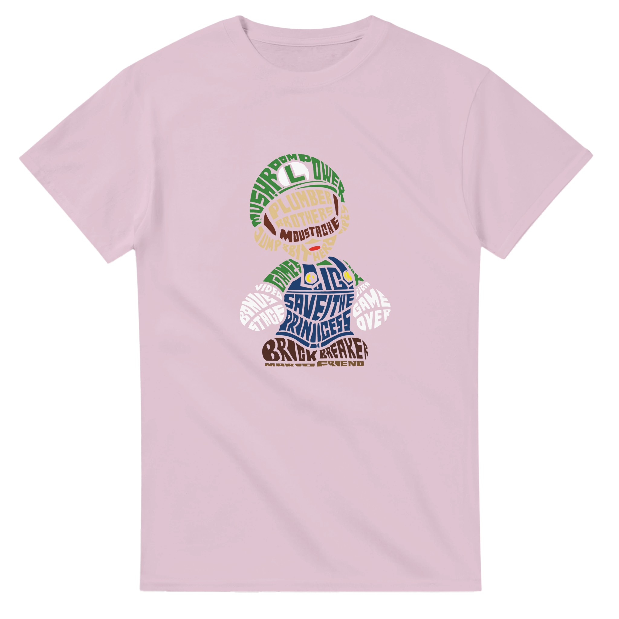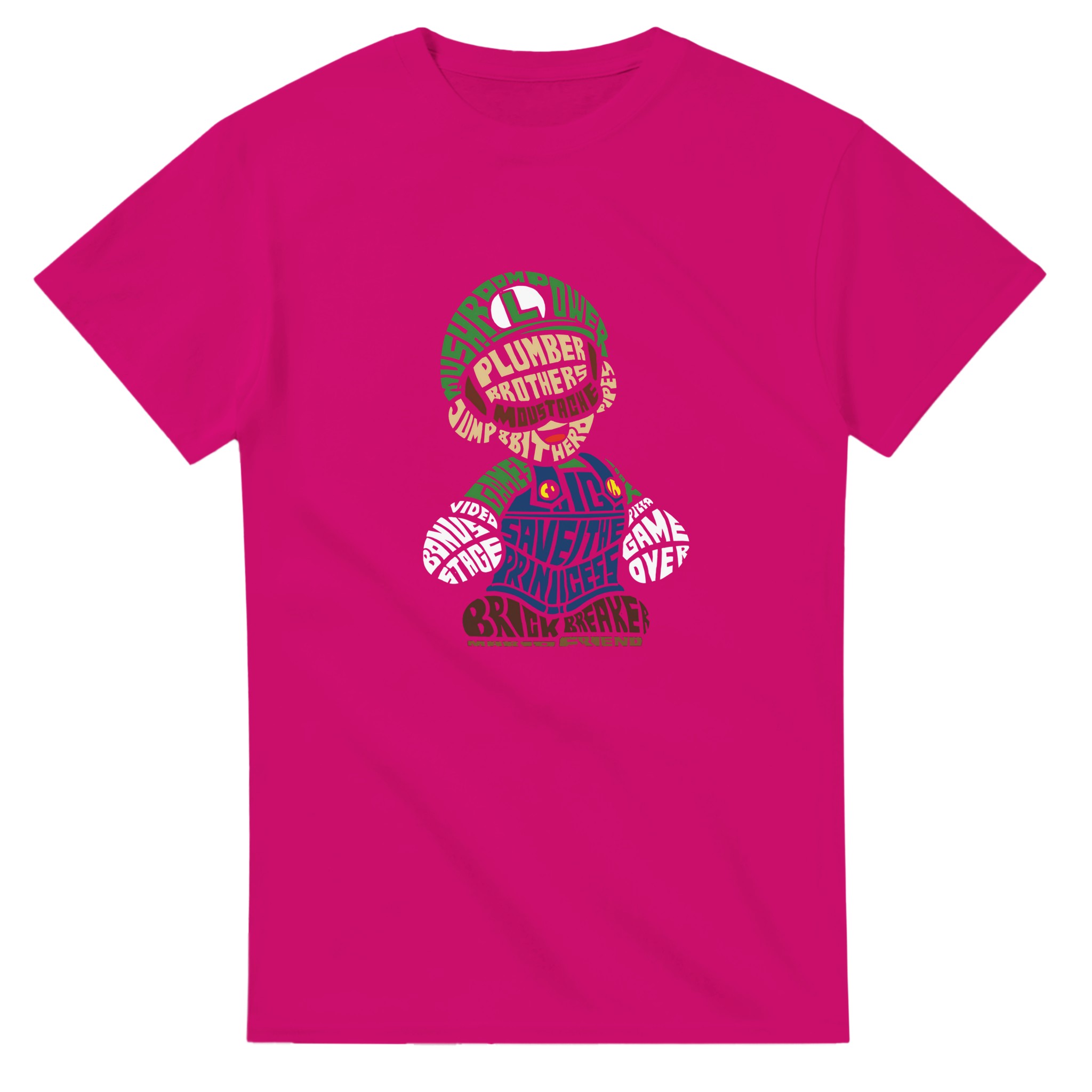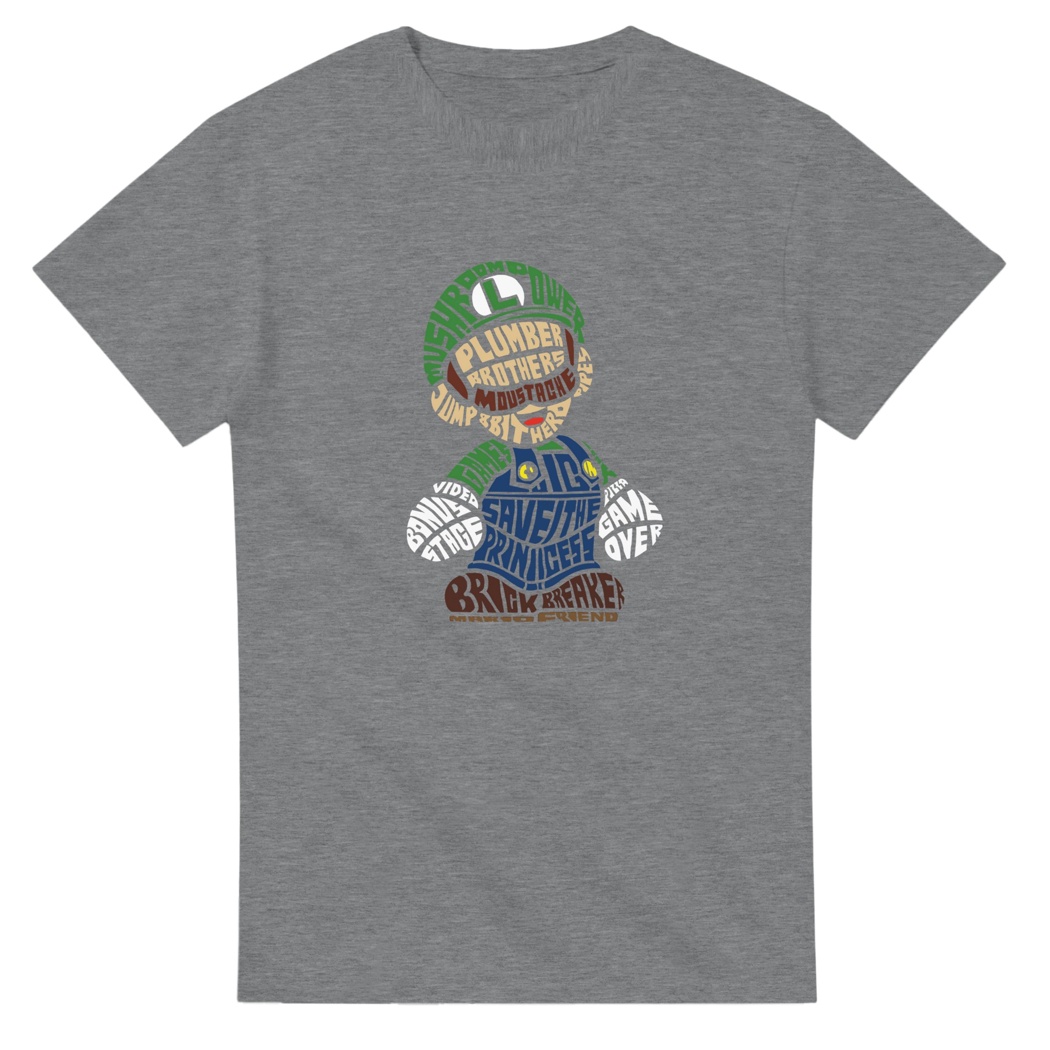 Retro Gaming Mario Bros. Word Art T-shirt – Klassisk, Unisex & Slitstark Design för Spelfantaster