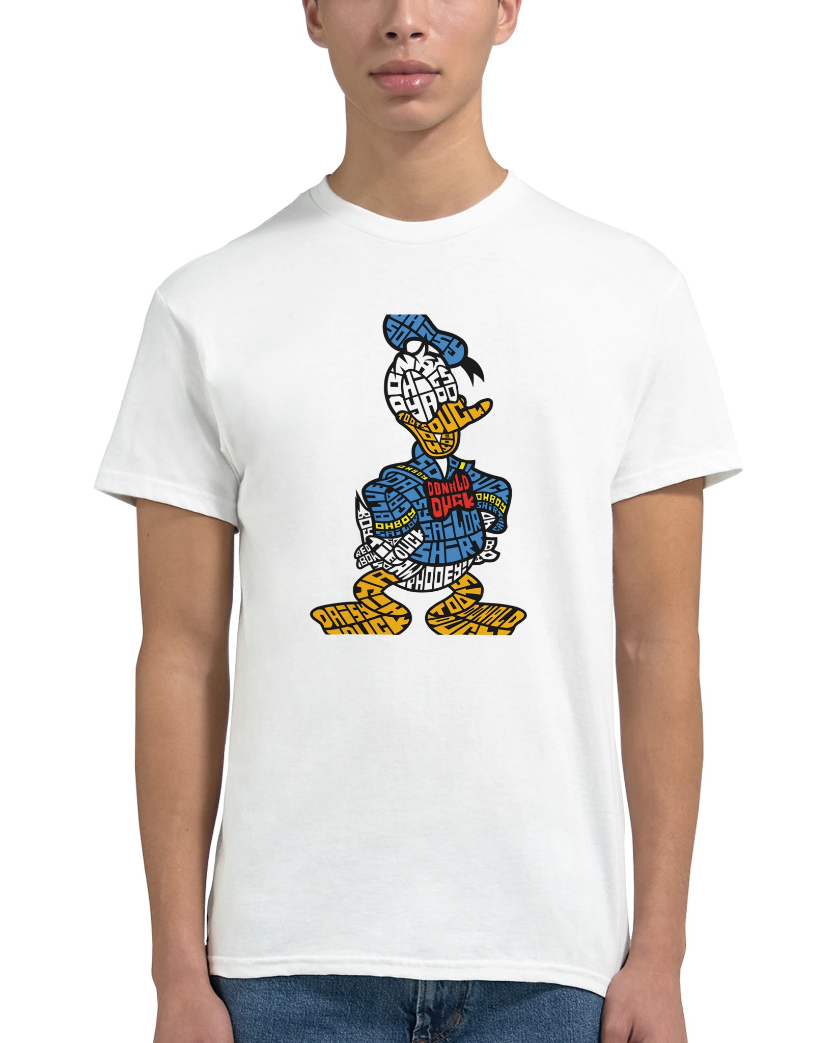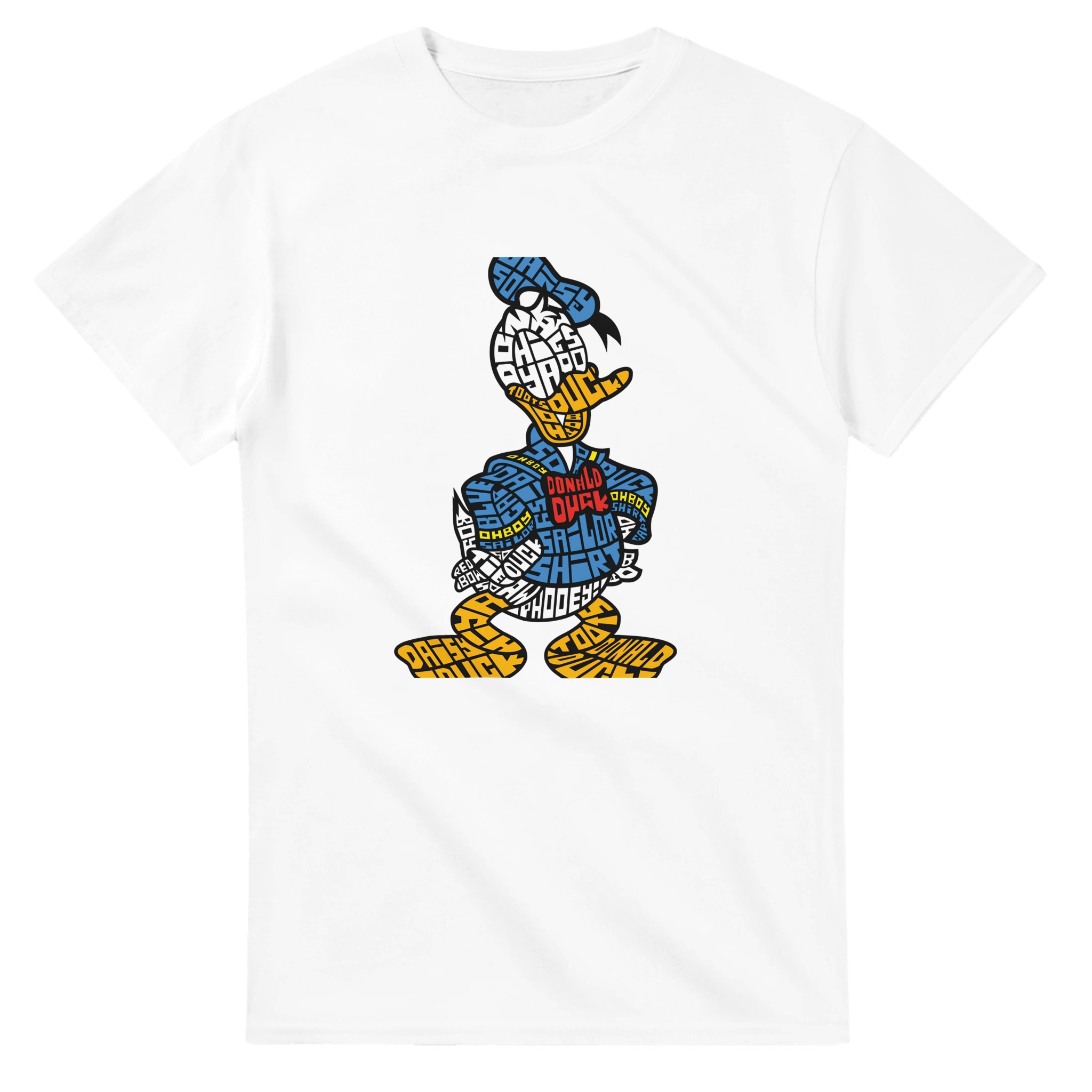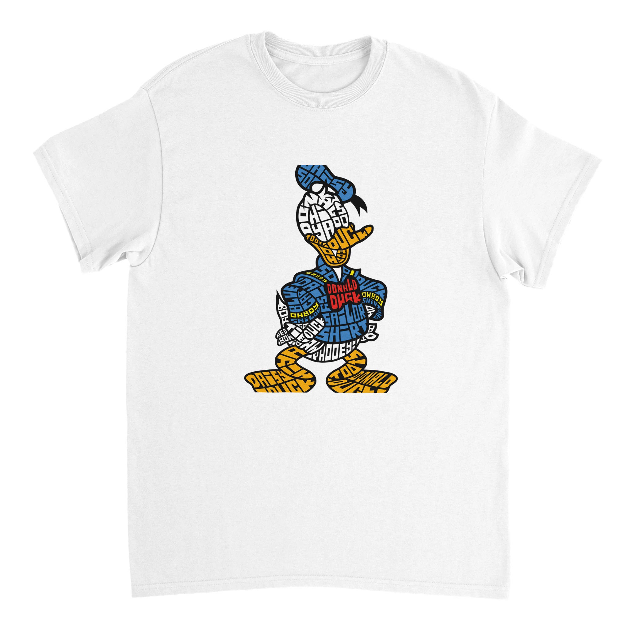 Donald Duck Typografisk T-shirt – Klassisk Bomull, Unisex Design för Fans av Ikoniska Karaktärer