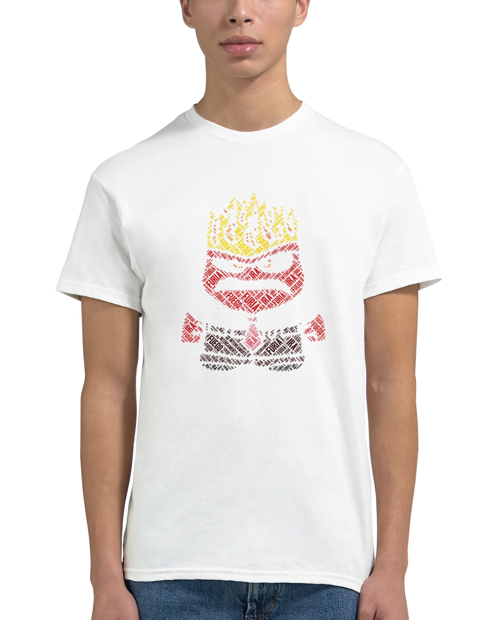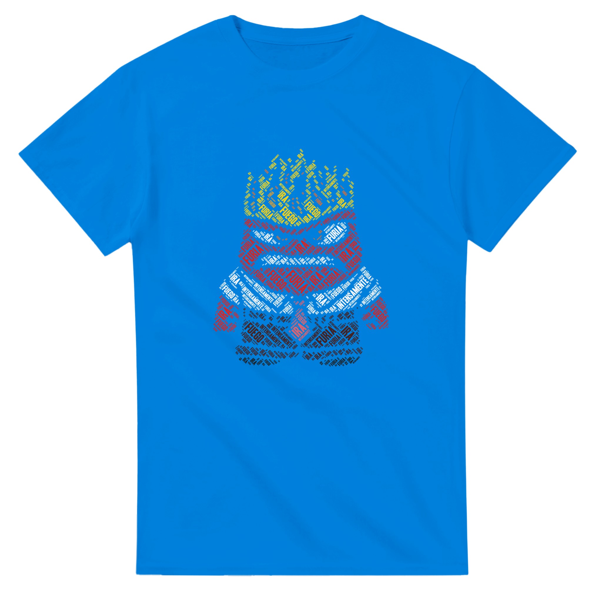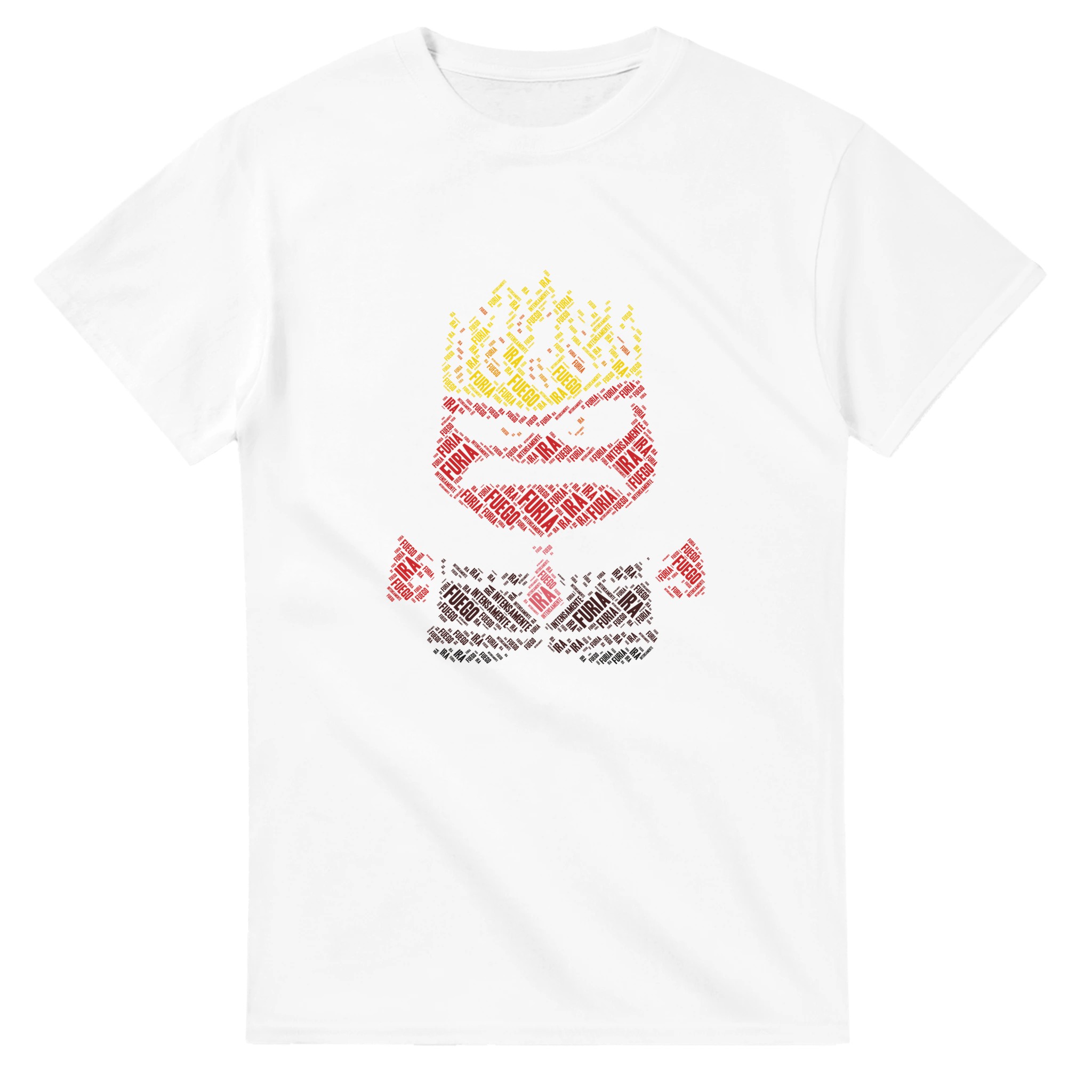 Intensiv Furia T-shirt – Eldig Textdesign, Unisex Komfort för Ett Uttrycksfullt Modeval